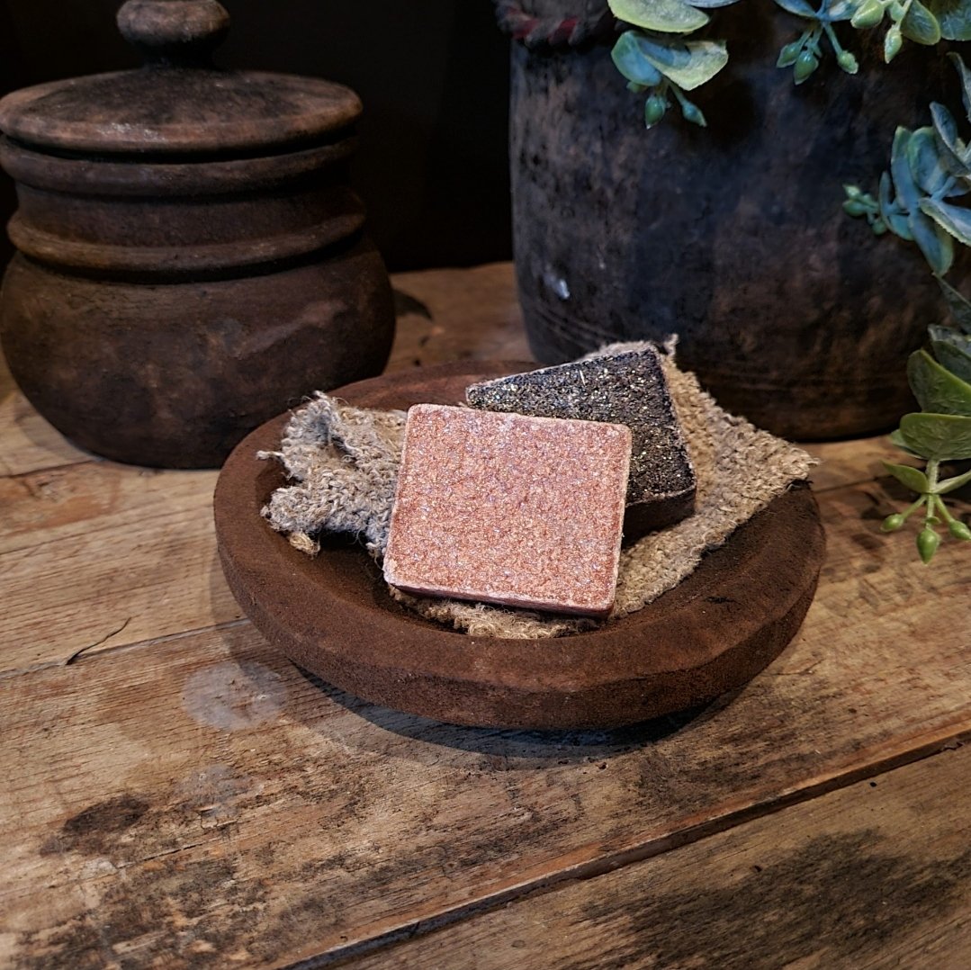 Dit schaaltje is erg mooi met een een kleine shabby chippy doek met daarop 1 of 2 geurblokjes.