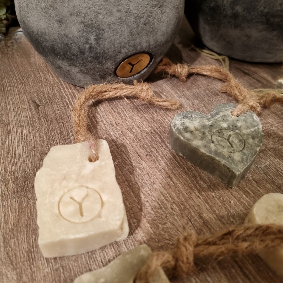 Iedere verse zeep heeft een handige touwtje zodat je ze overal op kan hangen.