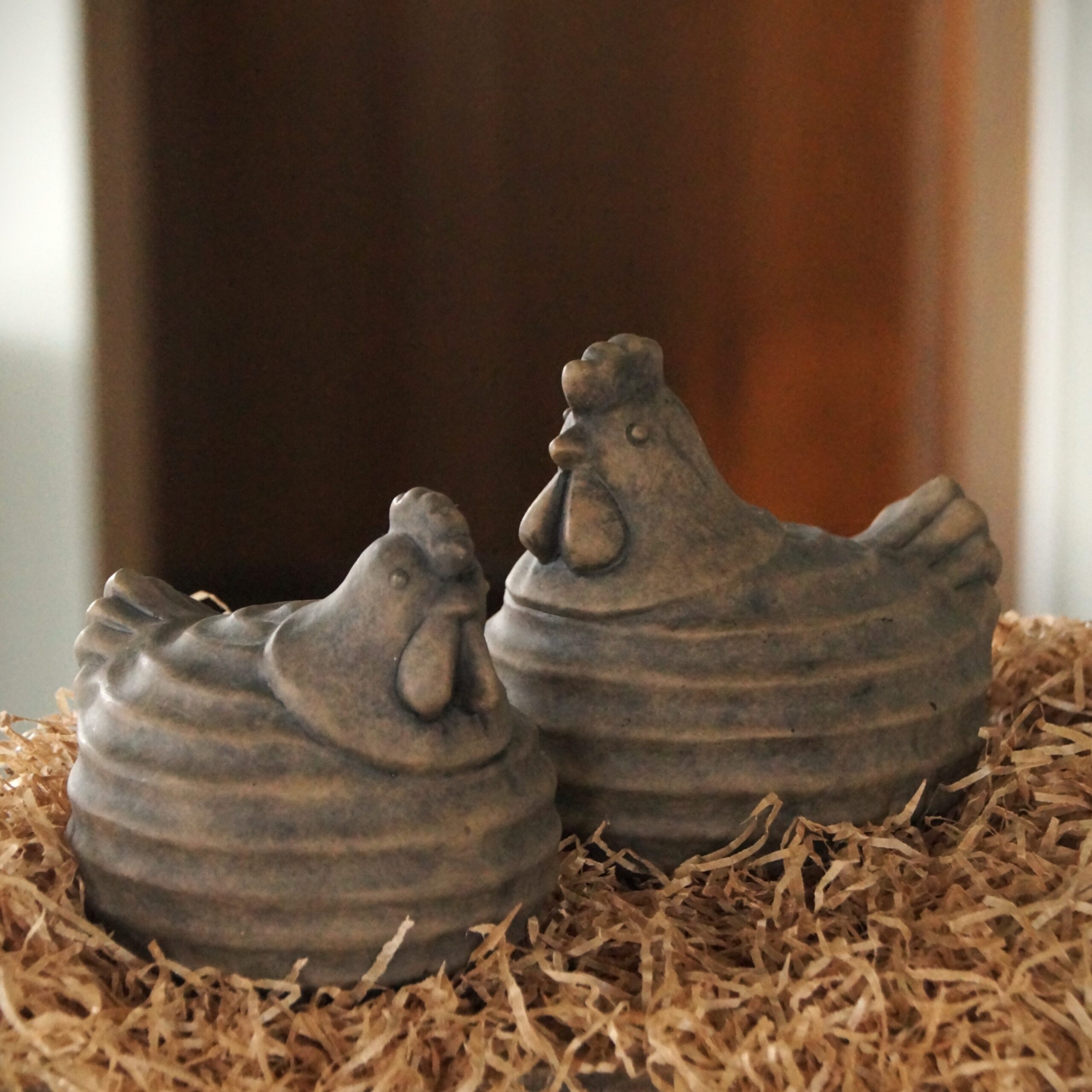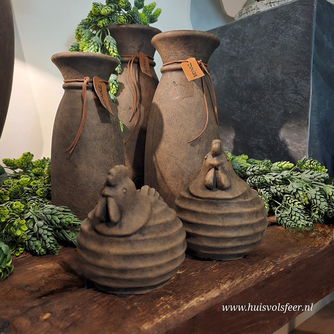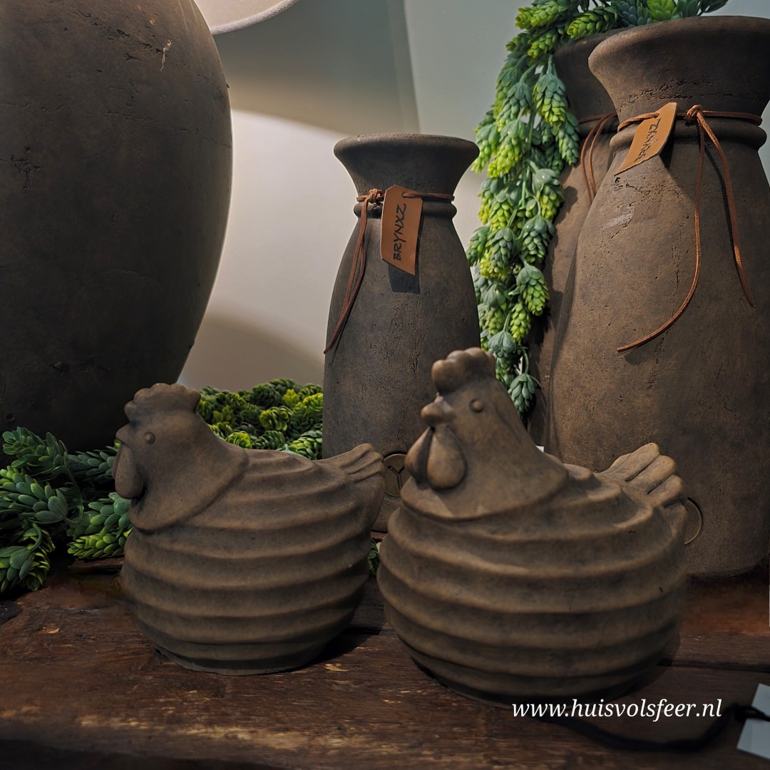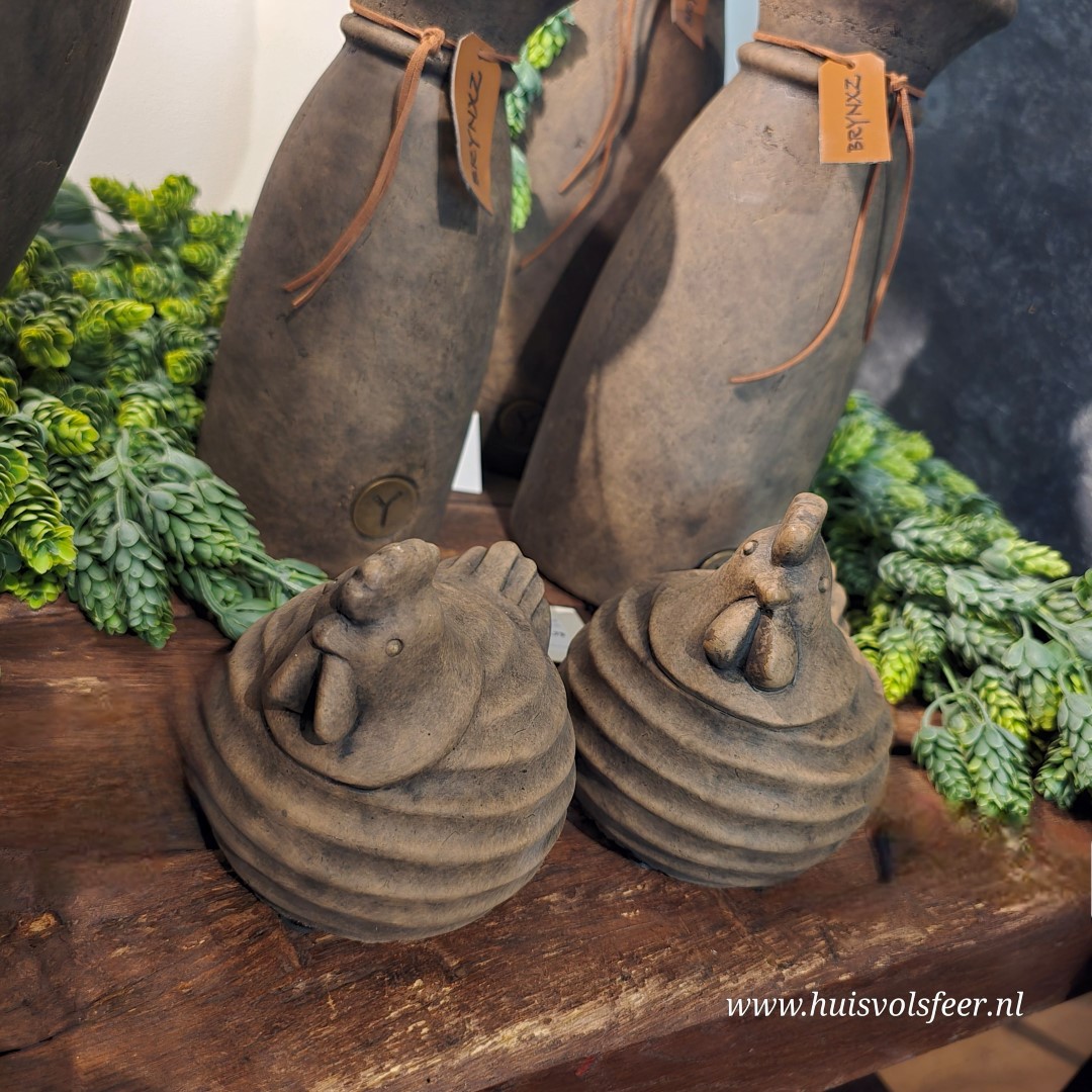 Dit charmante kipje brengt meteen een vleugje landelijke sfeer in huis. De ronde vorm en het subtiele lijnenspel geven het beeldje een stoere, maar warme uitstraling die perfect past bij een sfeervol voorjaars- of paasinterieur.