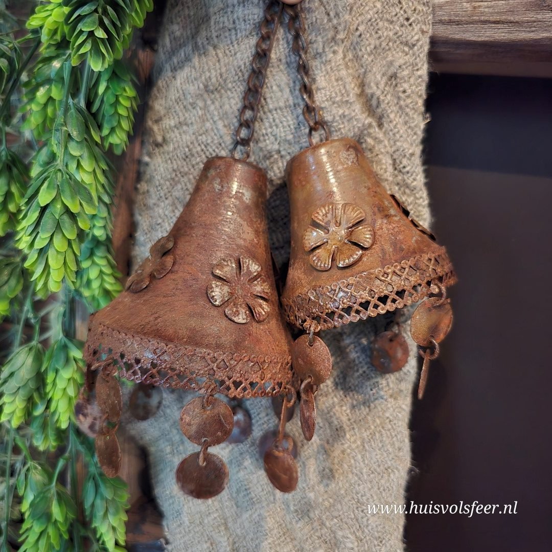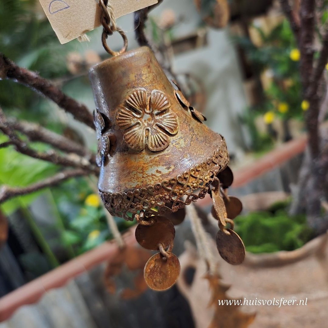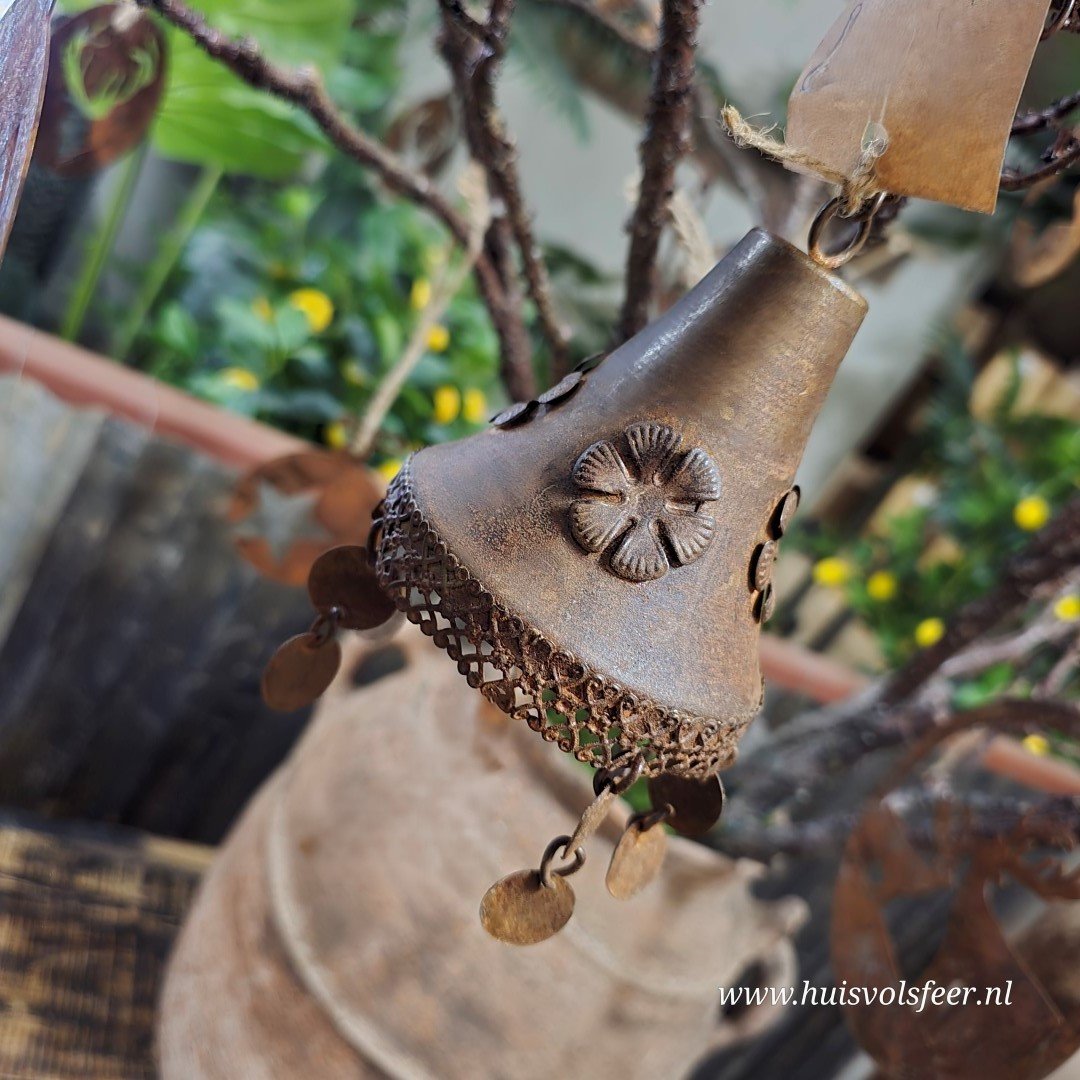 *Bijzonderheden: handgemaakt – iedere bel is uniek. Kleine oneffenheden, variaties in roestkleur en afwerking horen bij het ambachtelijke karakter en geven dit decoratieve item extra charme.