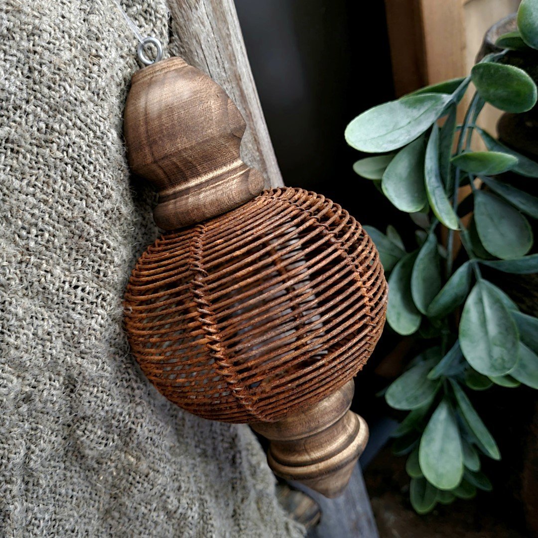 Stoere decoratieve hanger. Hout gecombineerd met metaal.