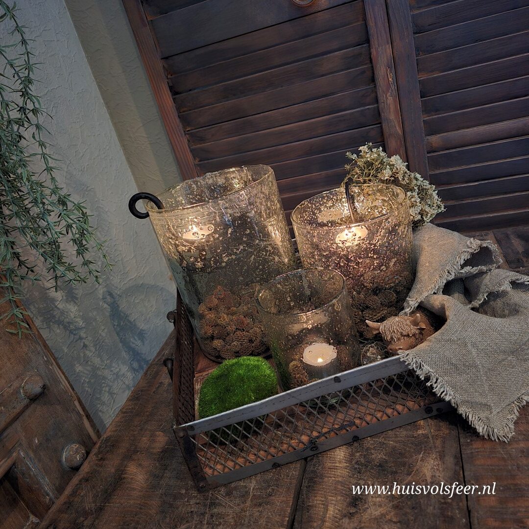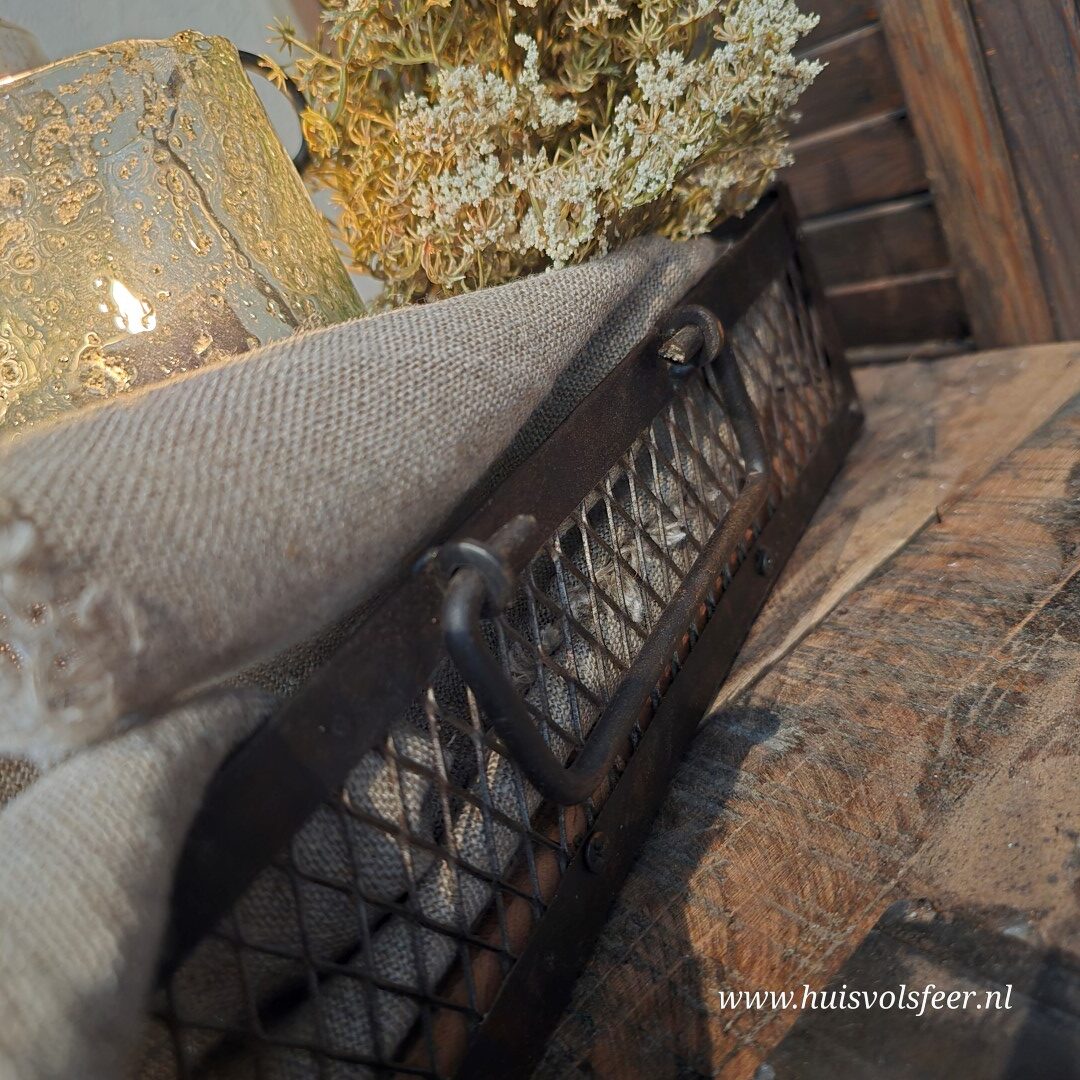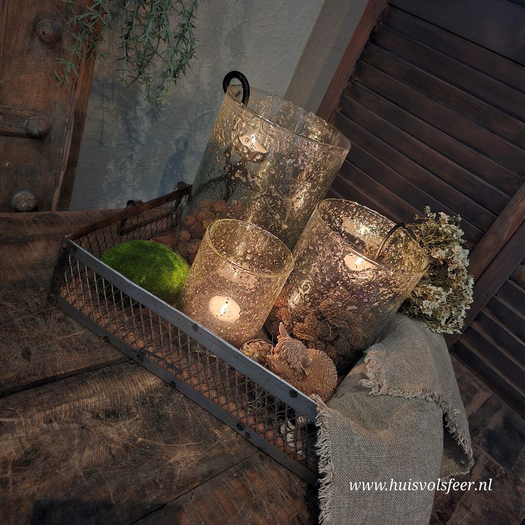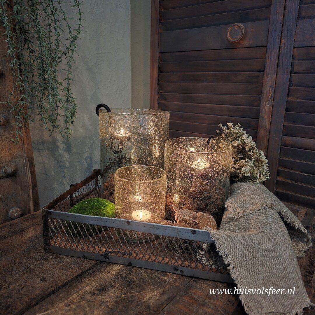 Voorzien van handvaten aan beide zijden, waardoor het niet alleen decoratief is maar ook praktisch in gebruik. Perfect om een mooie sfeerhoek te creëren met kaarsen, windlichten of accessoires.