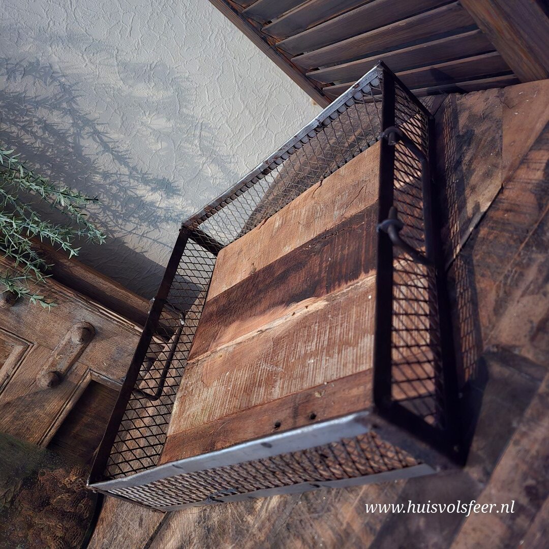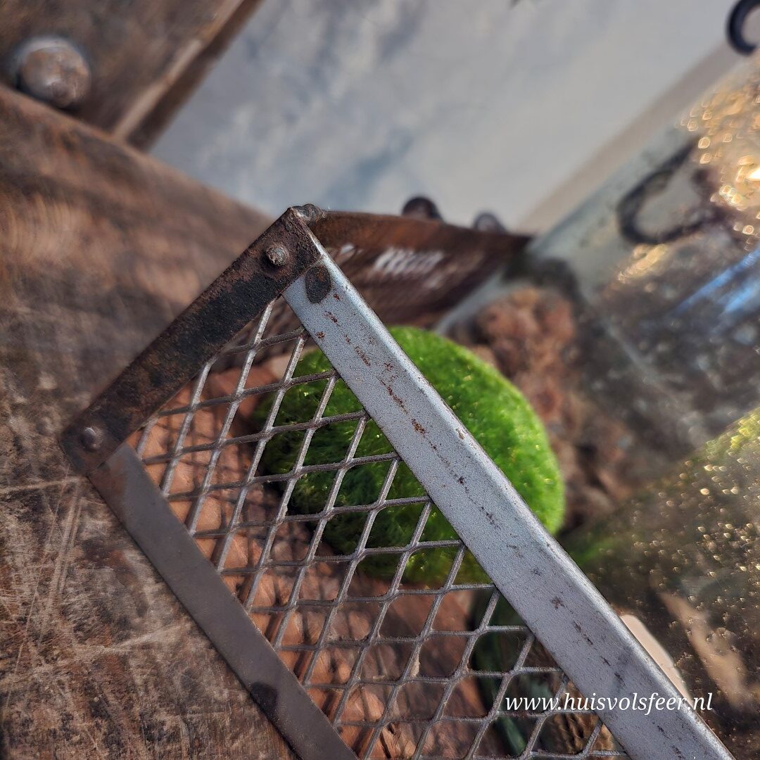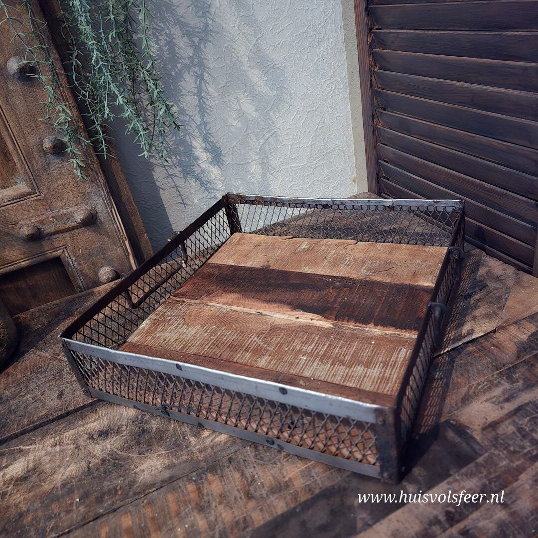 Stoer en robuust dienblad met metalen gaasrand en een houten ondergrond. De combinatie van hout en metaal geeft dit dienblad een krachtige, landelijke uitstraling.