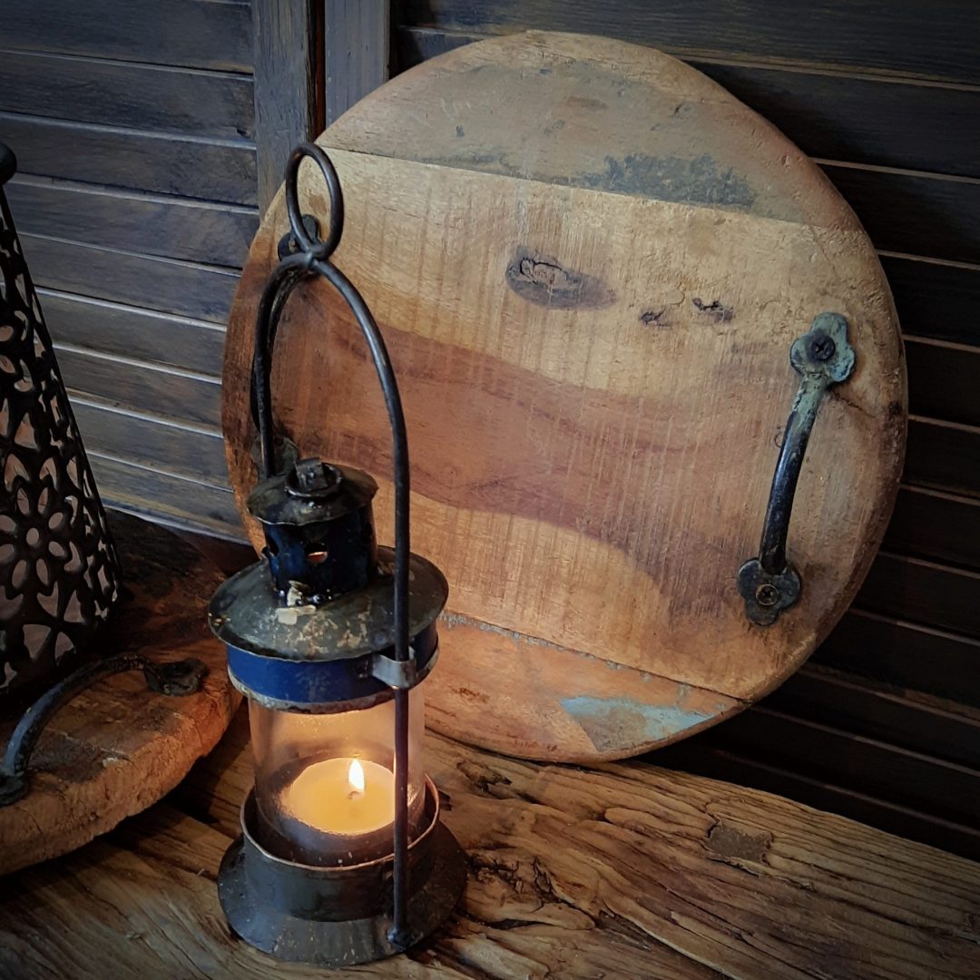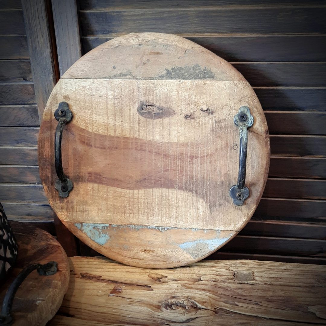 Mooi oud houten dienblad uit India. Door de handvaten krijgt deze serveerplank een stoer uiterlijk.