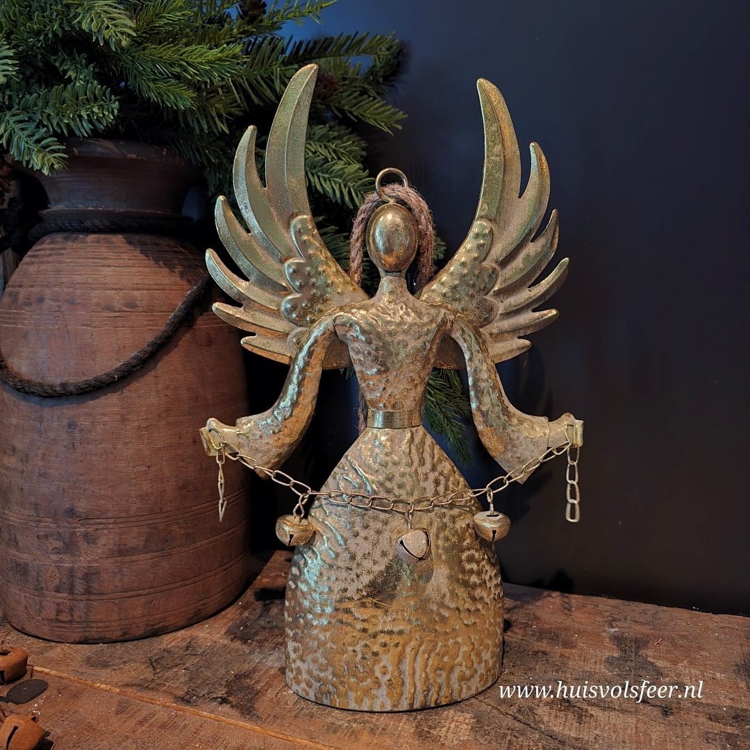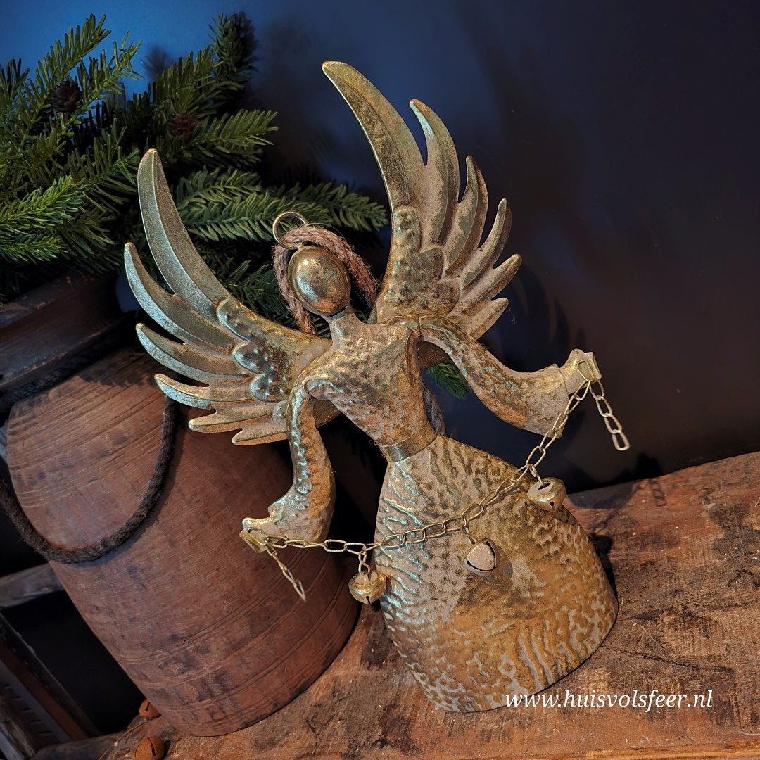 Breng warmte en karakter in huis met deze prachtige Engel Rustique. Dit bijzondere woonaccessoire is volledig uitgevoerd in metaal met een stoere rustieke afwerking en subtiel gouden gloed. Dankzij de grove ketting met belletjes en het dikke jute touw straalt de engel niet alleen kracht, maar ook verfijning uit.