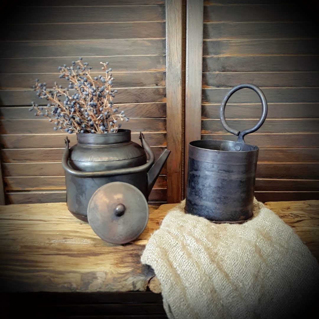 Stoere metalen flessenhouder/ plantenbakje in een zwart- bruine kleur.