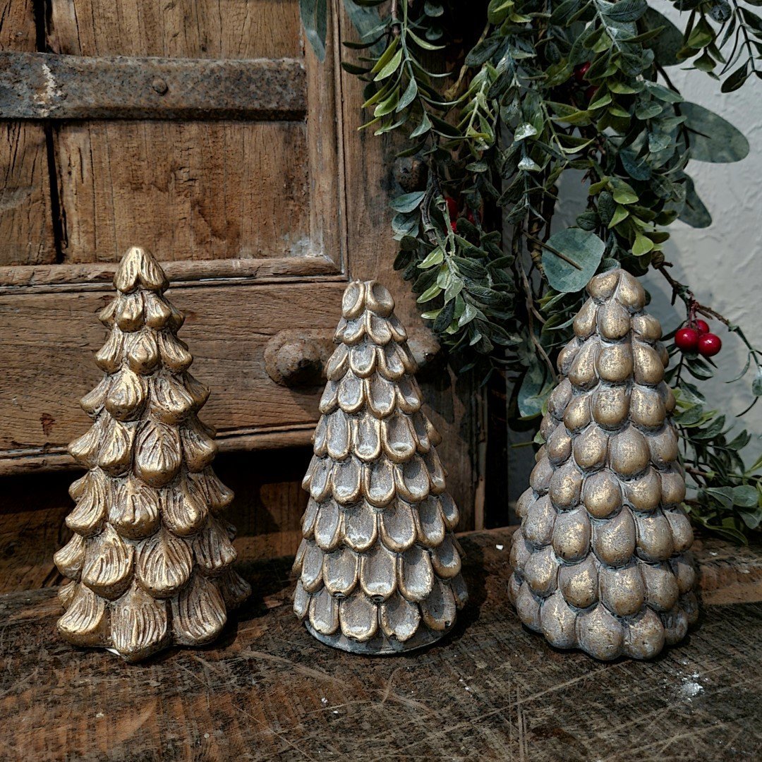 Sfeervolle decoratieve stenen dennenboom/ kerstboom. Zacht gouden kleur.