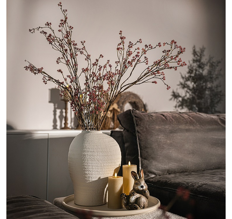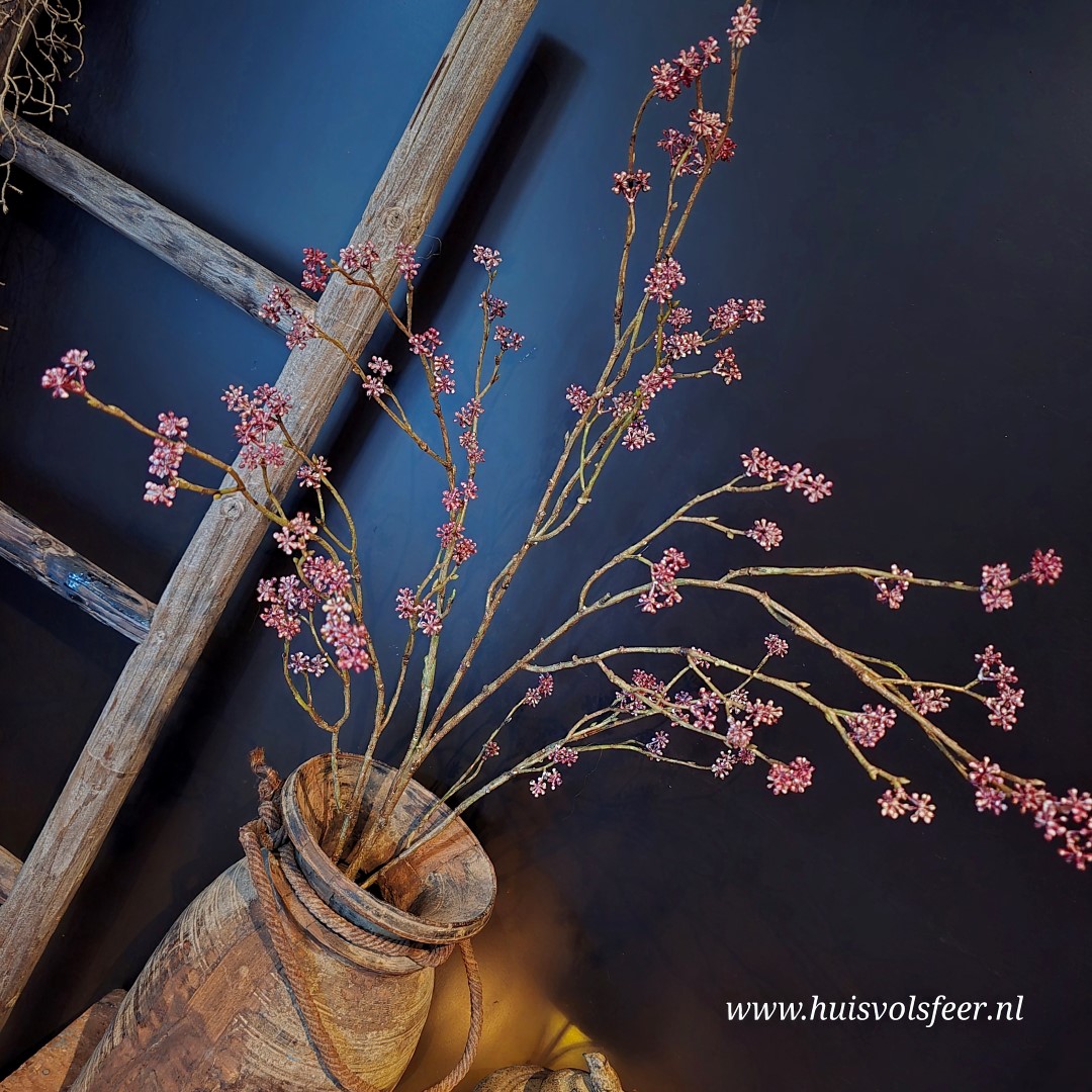 Callicarpa staat van oorsprong bekend als de schoonvrucht, een plant die geliefd is vanwege zijn sierlijke takken en decoratieve bes- of bloemstructuur. In deze zijden variant blijft de tak het hele jaar door mooi en behoudt hij zijn vorm en kleur zonder onderhoud.