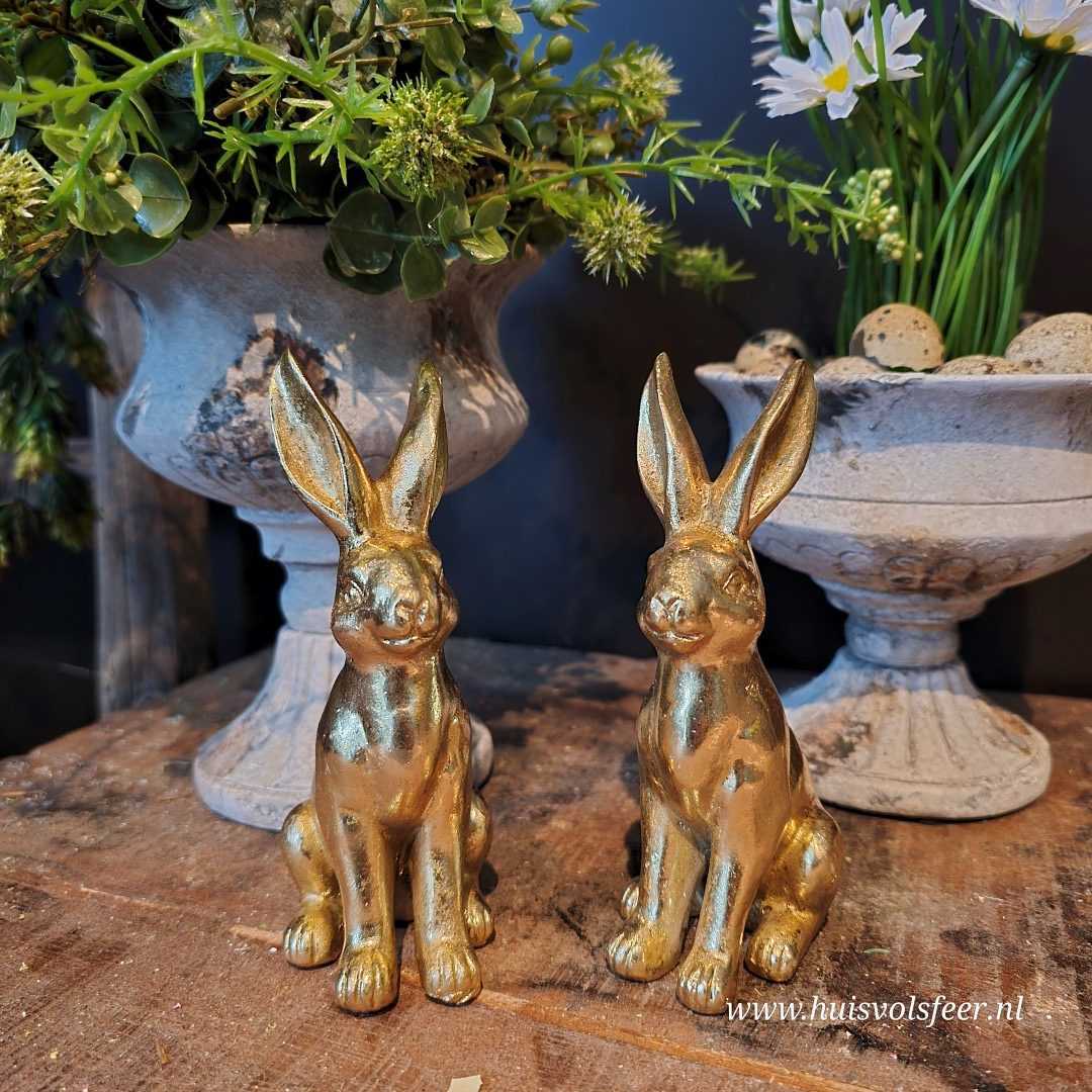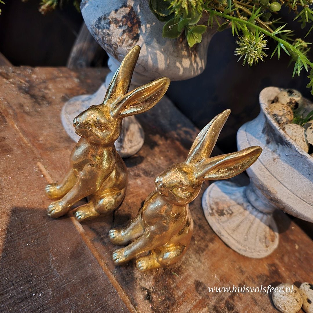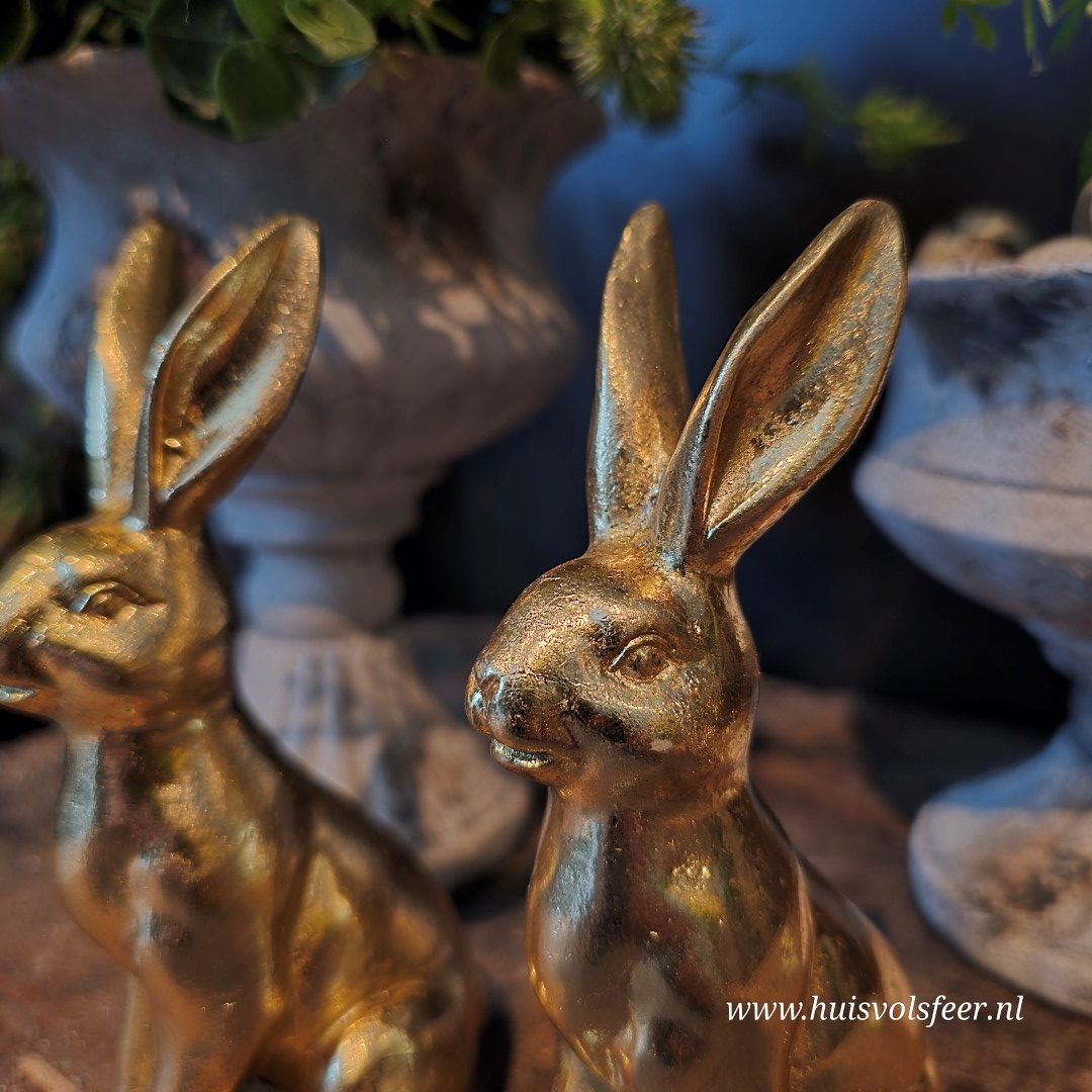 Mooi om te combineren met andere paasdecoraties of meerdere gouden haasjes voor een warm en stijlvol geheel.