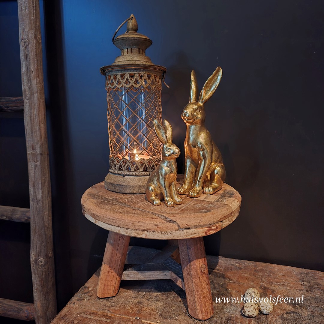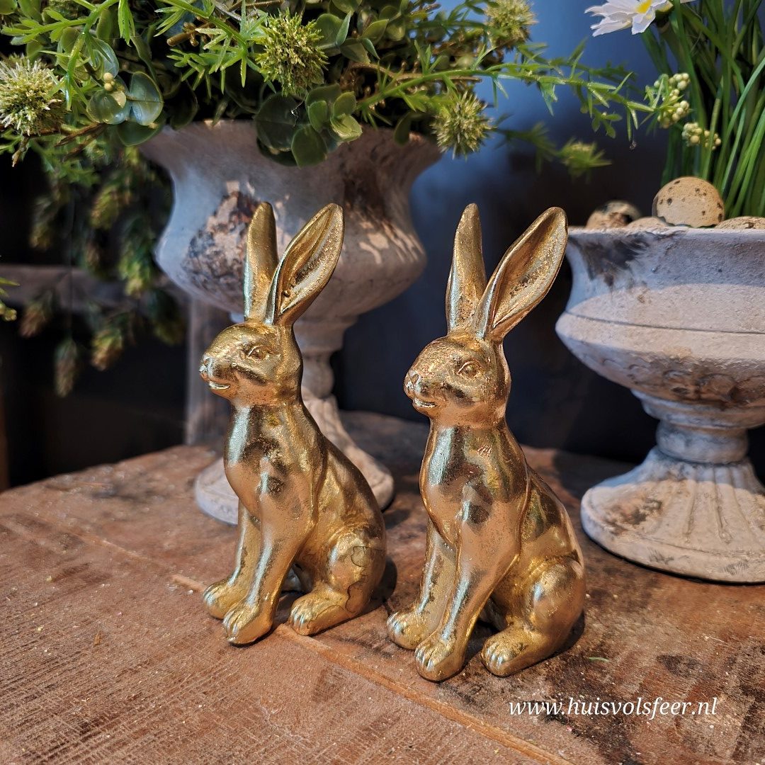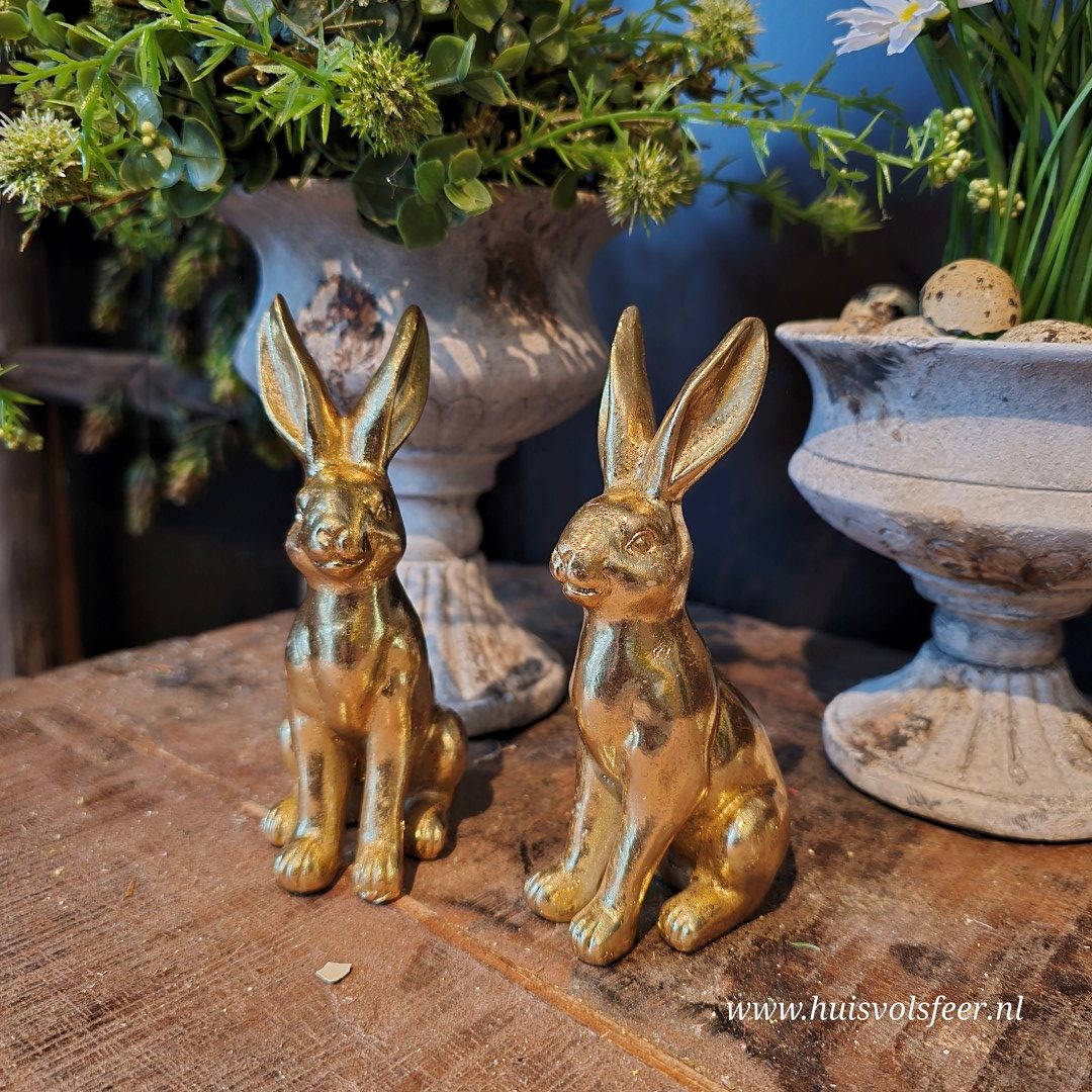 Mooi om te combineren met andere paasdecoraties of meerdere gouden haasjes voor een warm en stijlvol geheel.
