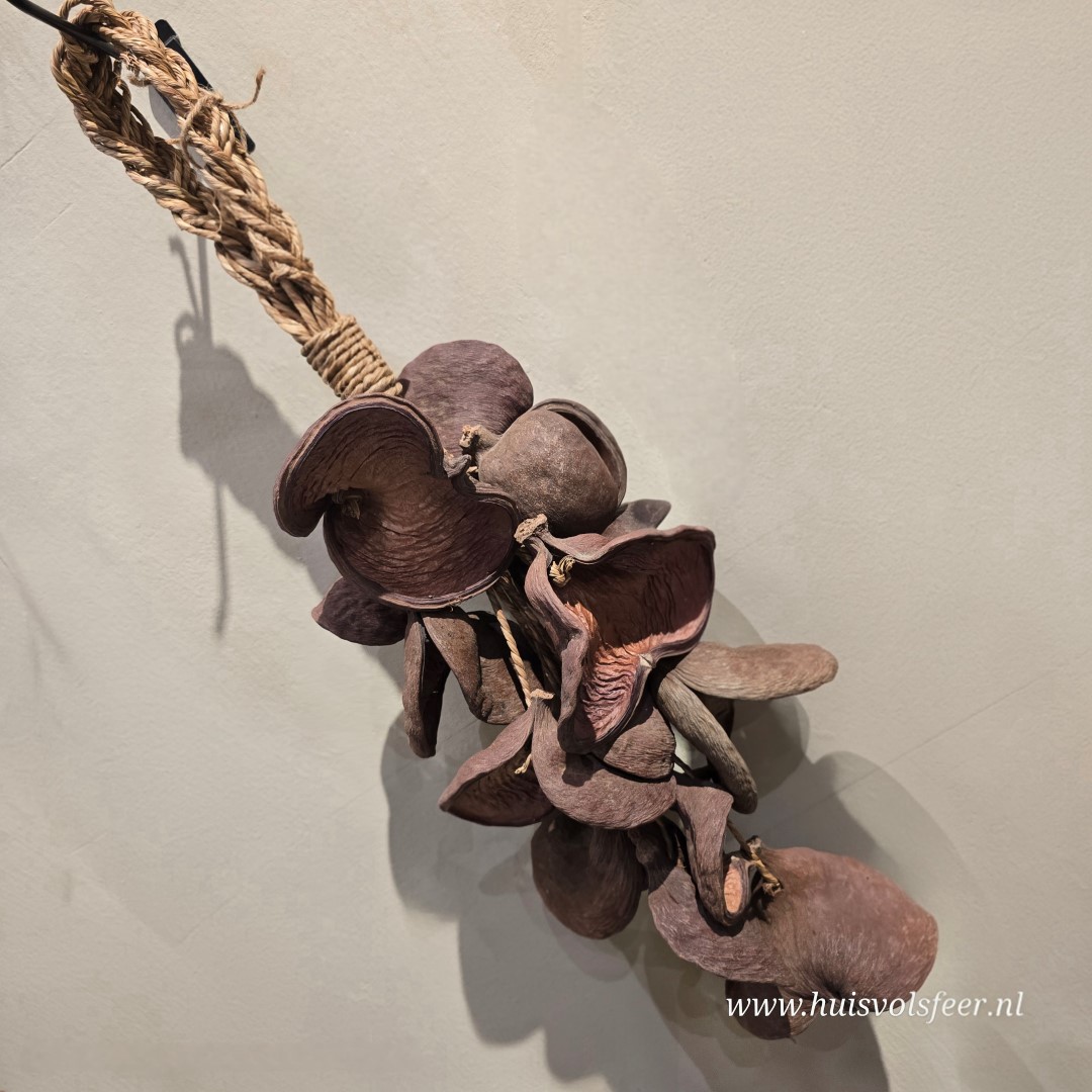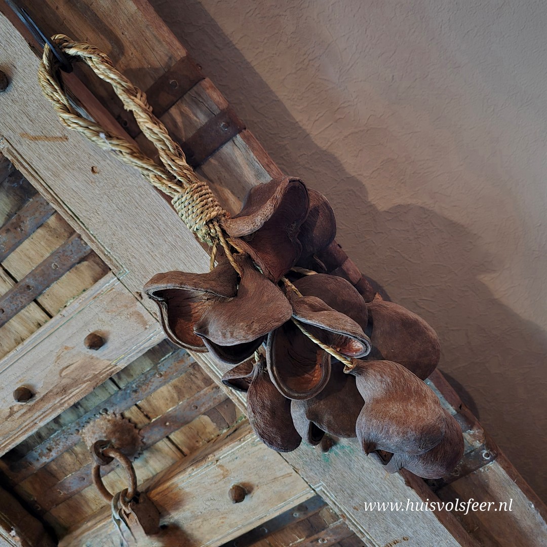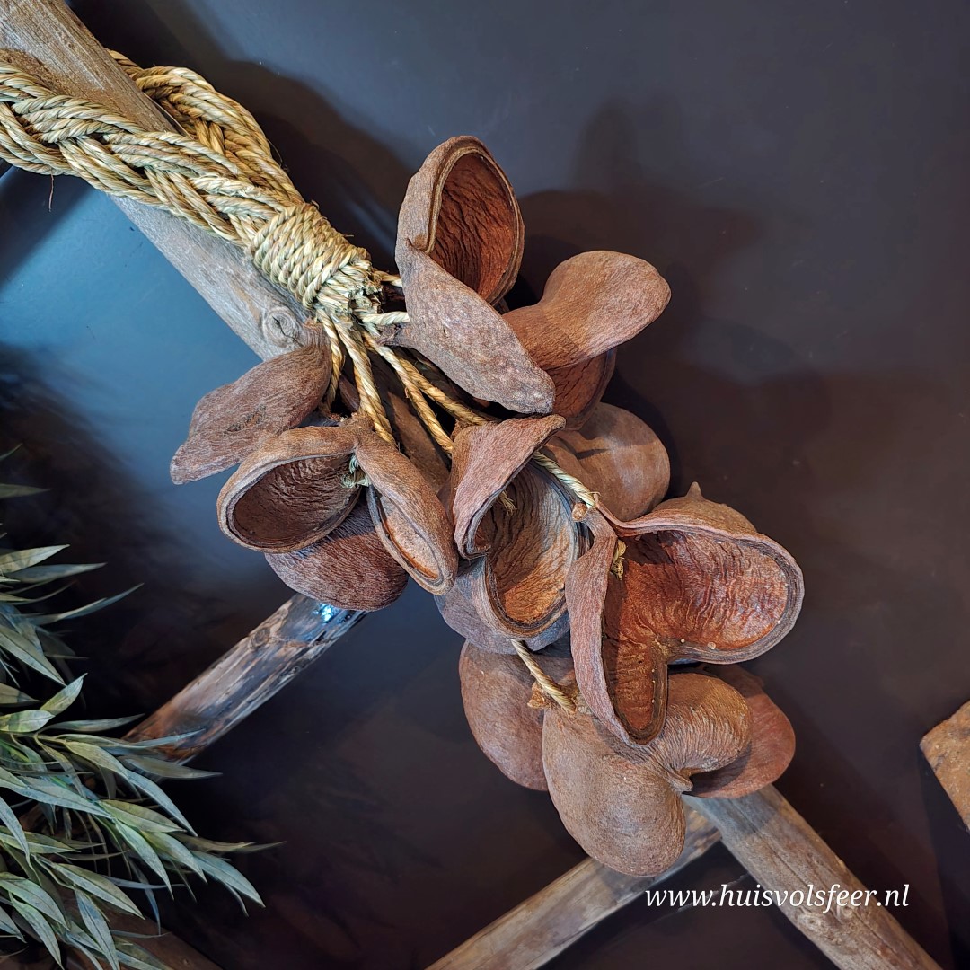 Deze prachtige Badam hanger is een unieke en sfeervolle decoratie met een pure, natuurlijke uitstraling. De bundel bestaat uit gedroogde badam peulen, samengebonden met een stevig touw, wat zorgt voor een stoere en landelijke look.