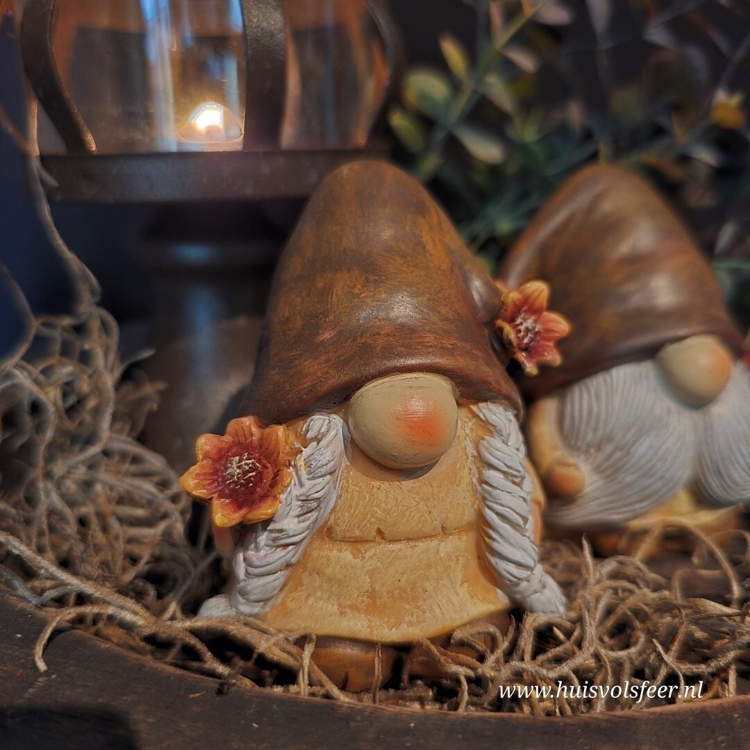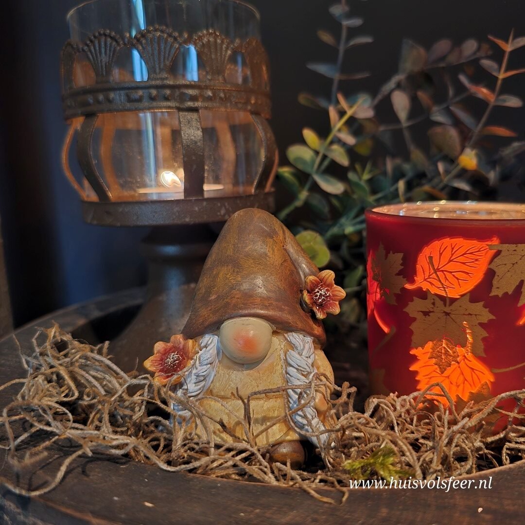 Herfst gnoom met bloem of paddenstoel.