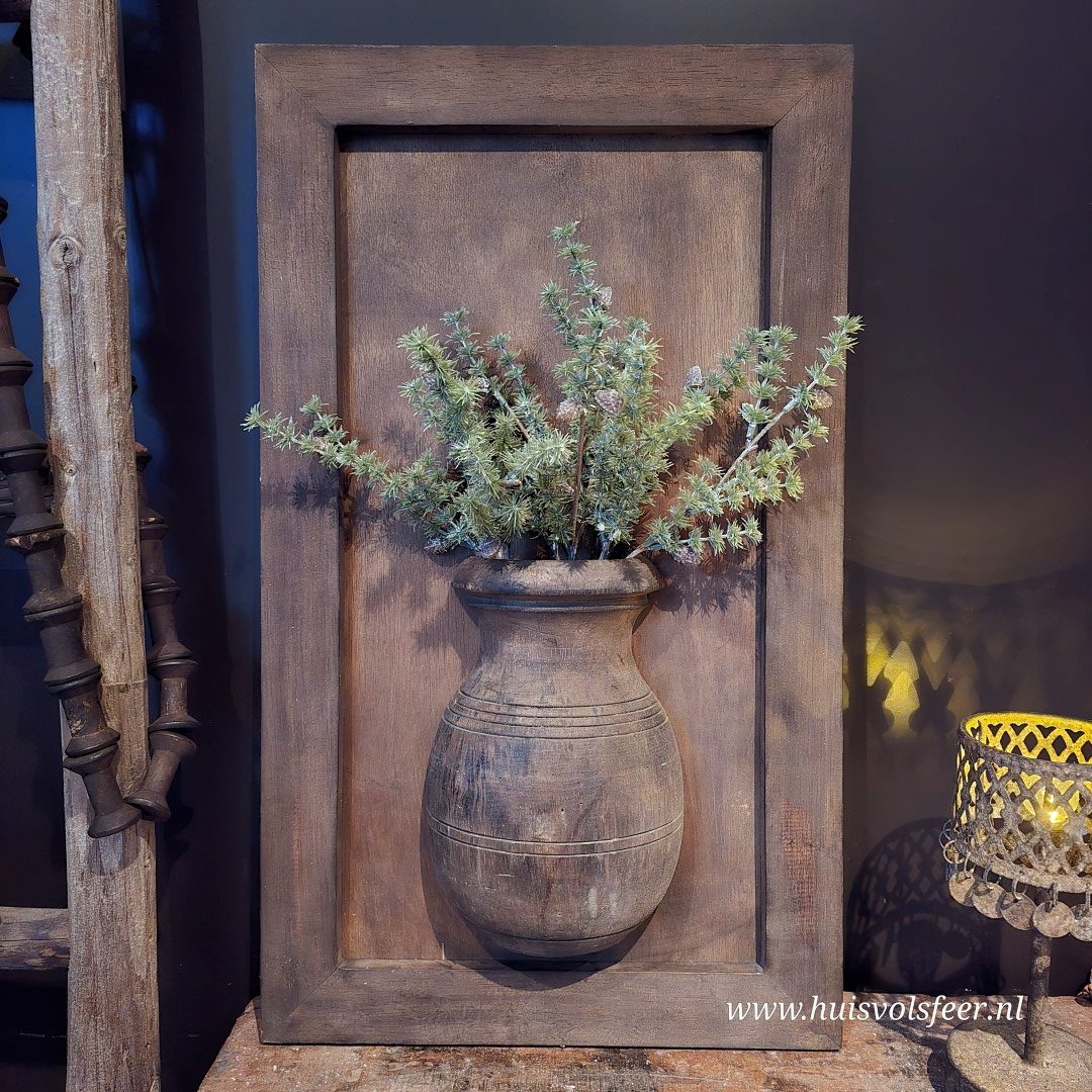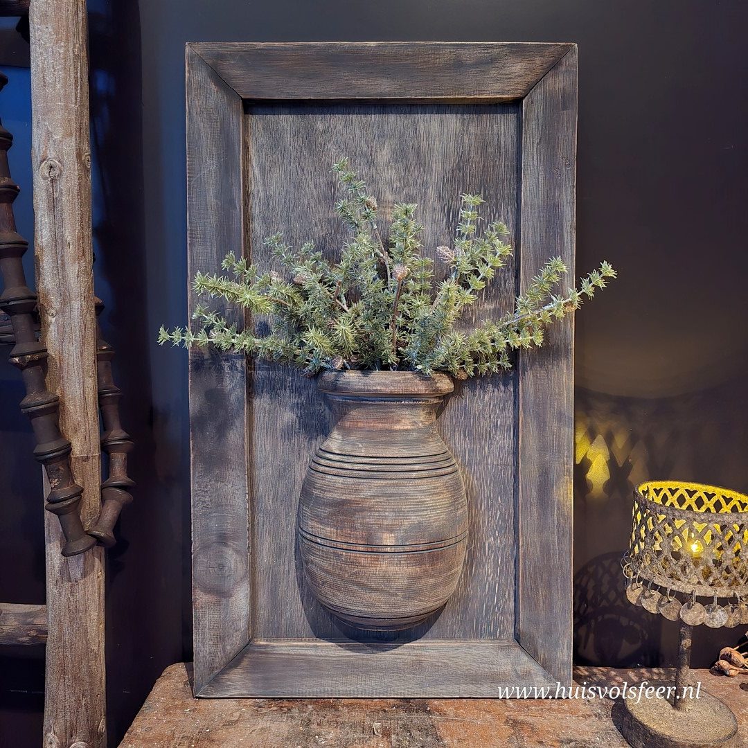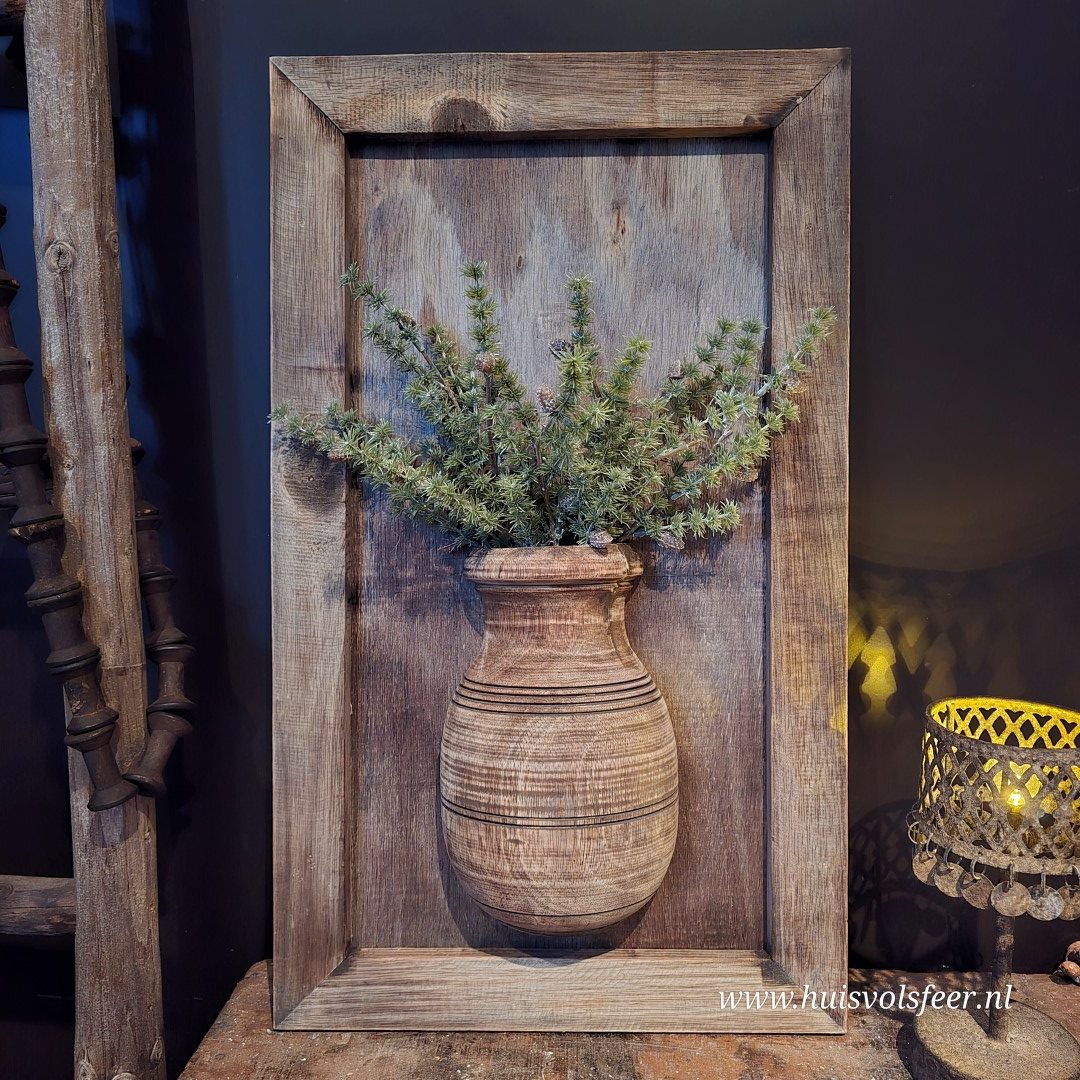 Ieder wandbord is handgemaakt en uniek. Variaties in houtkleur, structuur, vorm van de pot en afwerking zijn normaal en onderdeel van de authentieke, robuuste uitstraling. Wandborden worden willekeurig geleverd. Bekijk alle foto’s voor een goed beeld van de mogelijke variaties.
