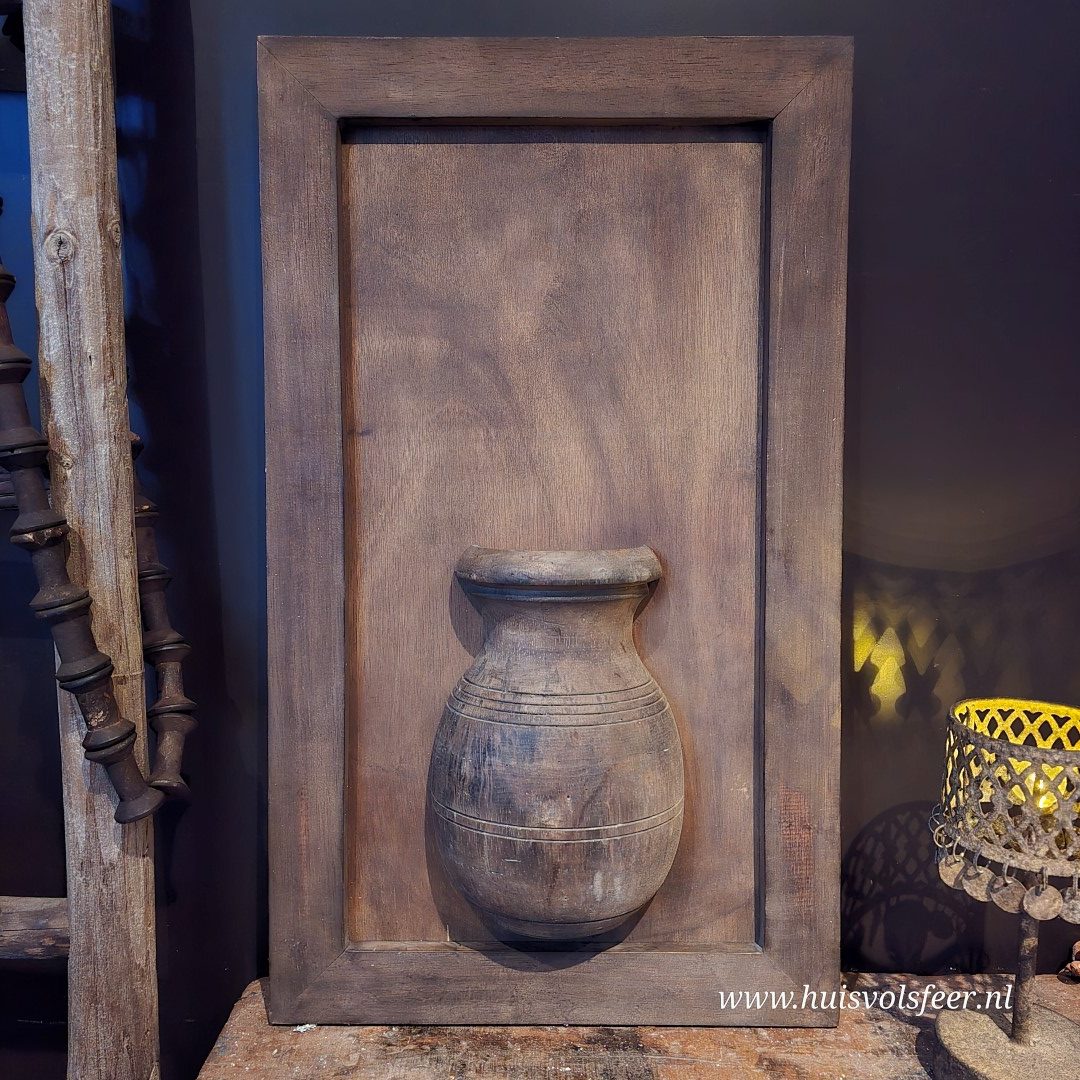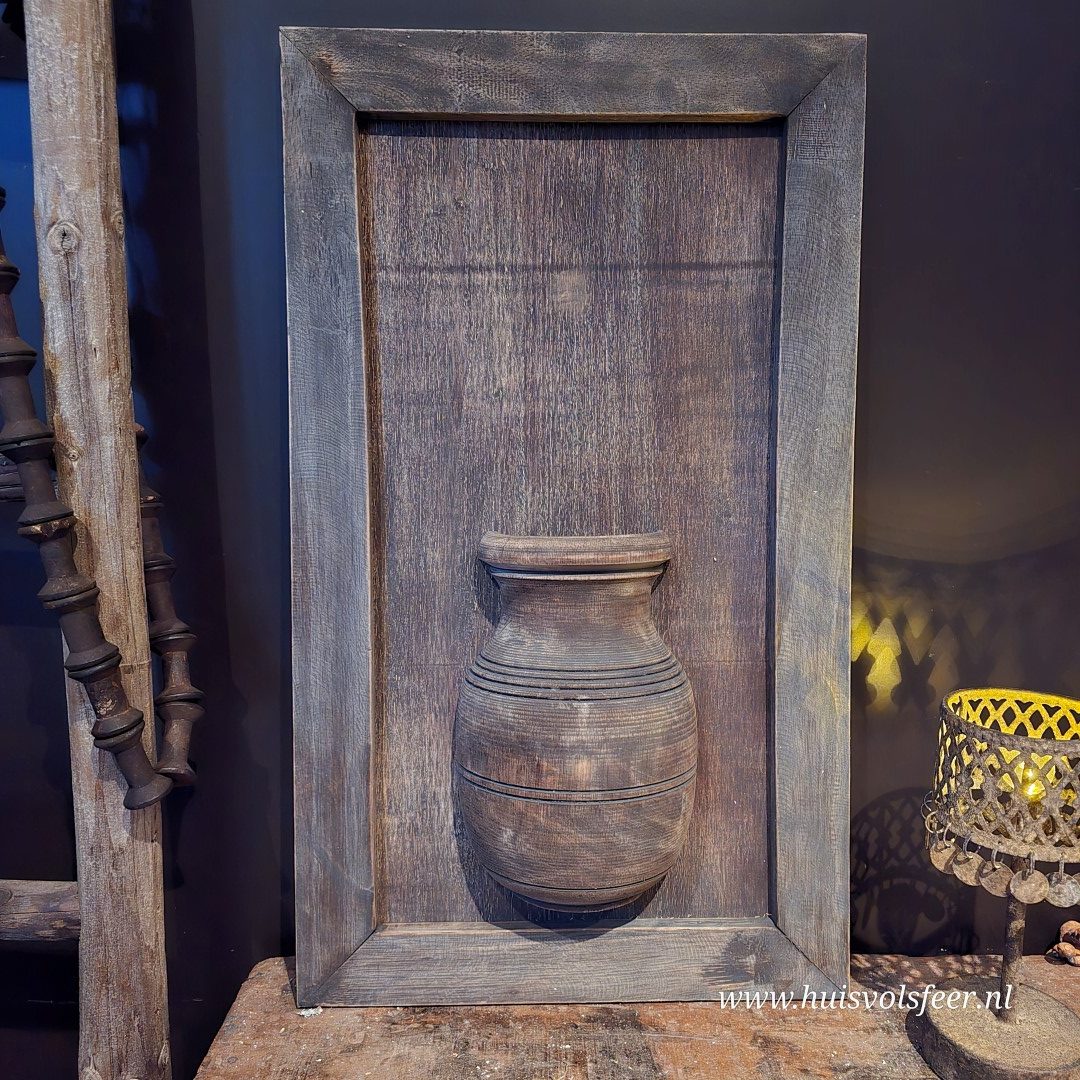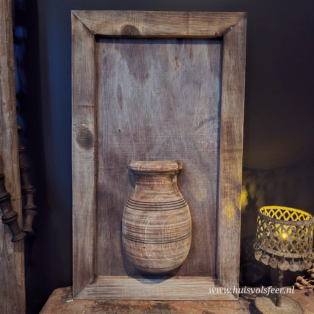 Ieder wandbord is handgemaakt en uniek. Variaties in houtkleur, structuur, vorm van de pot en afwerking zijn normaal en onderdeel van de authentieke, robuuste uitstraling. Wandborden worden willekeurig geleverd. Bekijk alle foto’s voor een goed beeld van de mogelijke variaties.