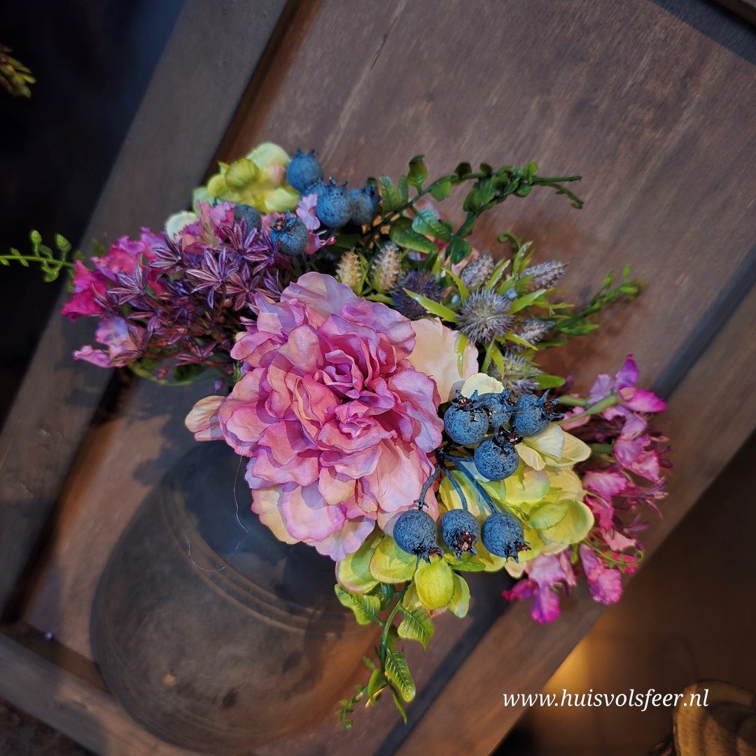 De bloemen worden kant-en-klaar geleverd, maar dienen nog naar wens gevormd te worden. Door de zijden takjes te buigen en eventueel iets in te korten, breng je het boeket tot leven en creëer je een natuurlijk resultaat.
