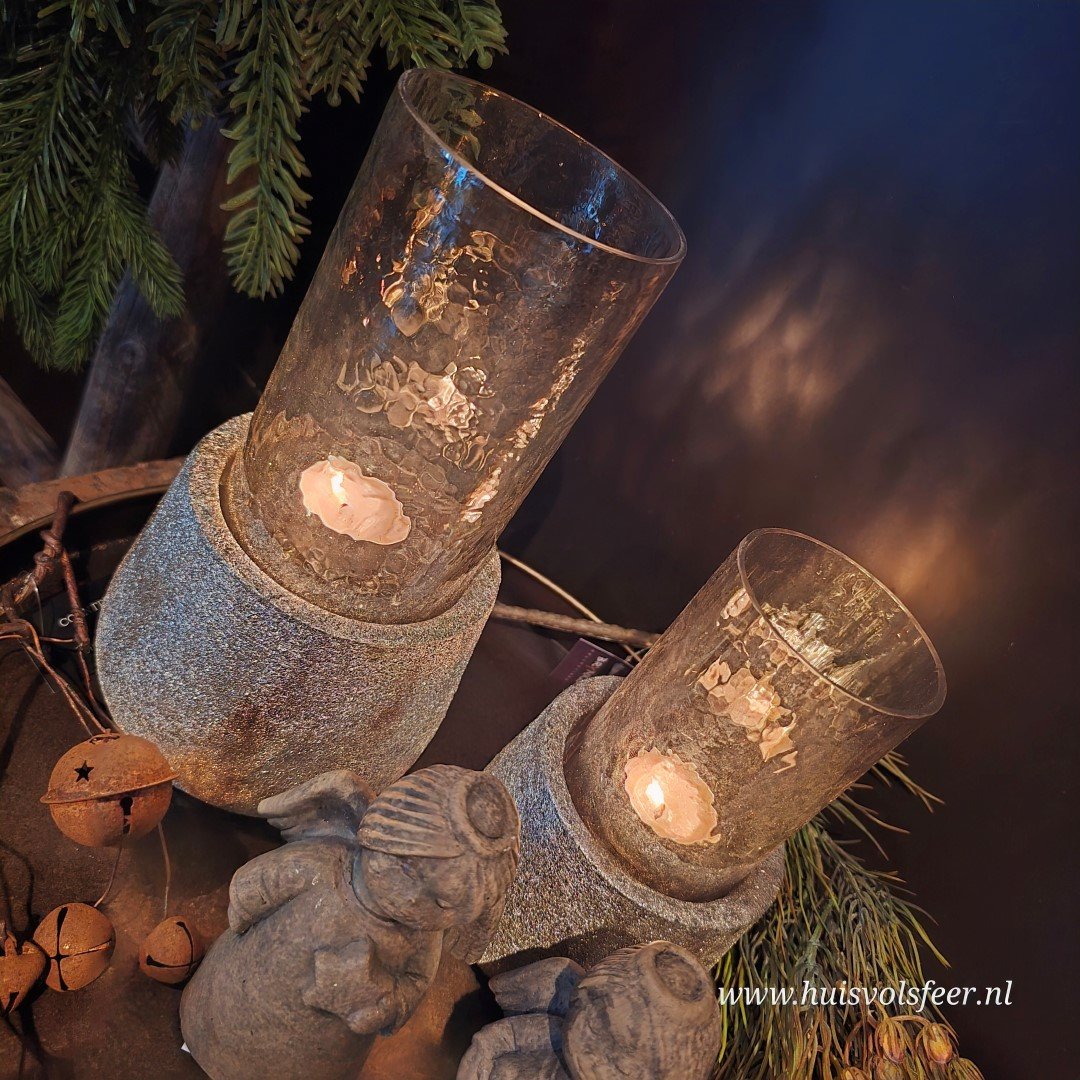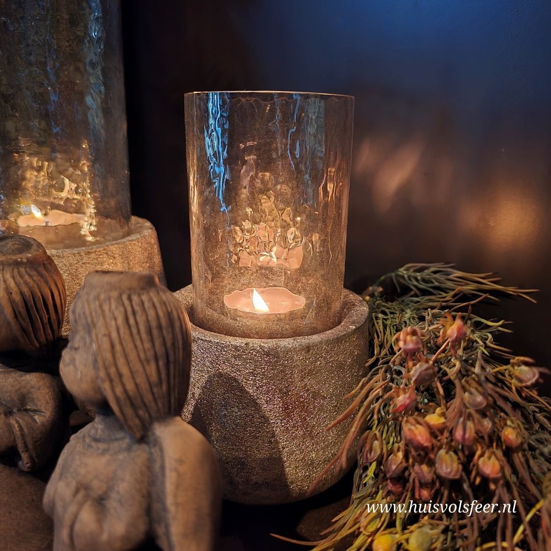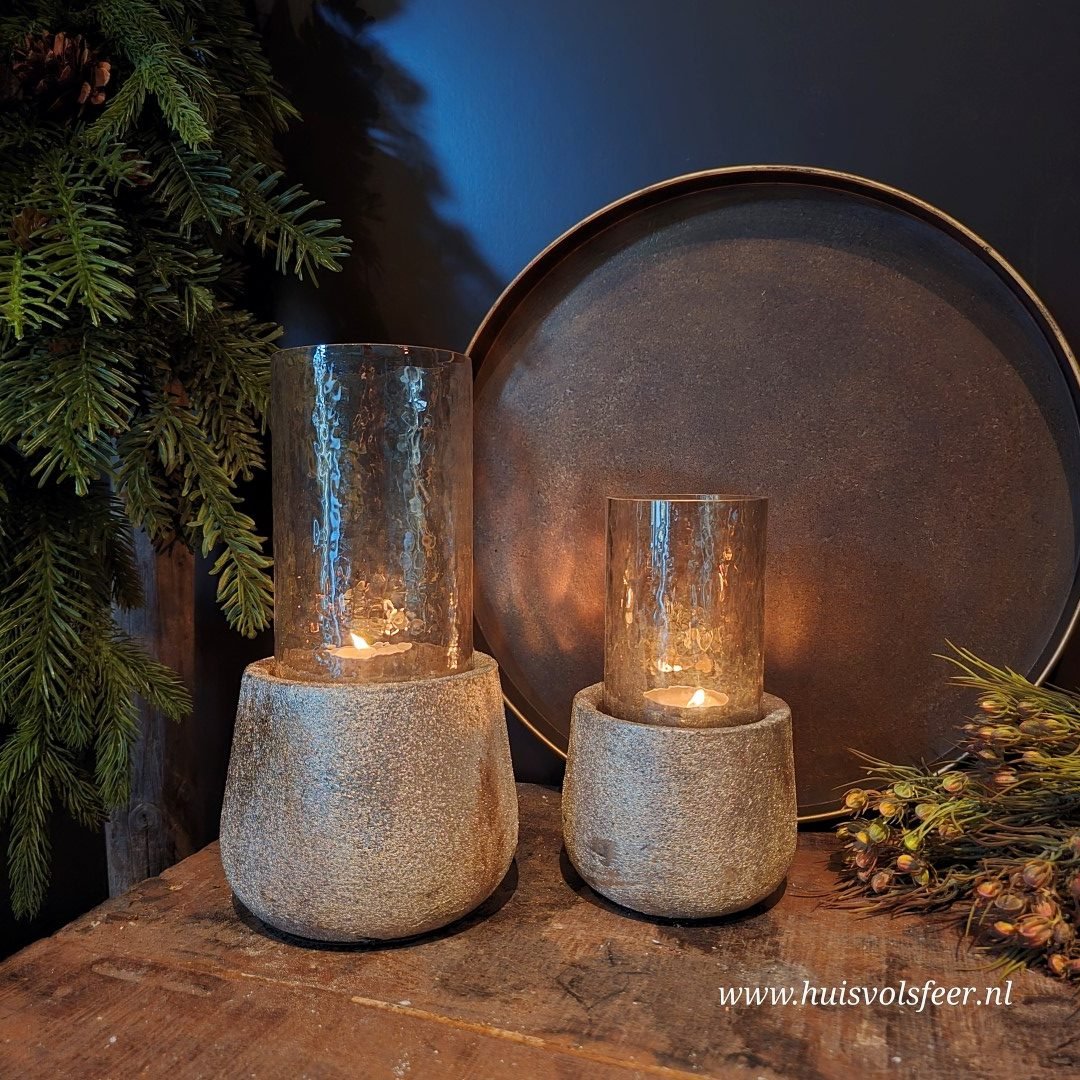 De kleinste variant van de Kandelaar Miley is subtiel maar sfeervol. De goud- en zilverkleurige gemêleerde voet geeft een stoere, robuuste uitstraling, terwijl het glas bovenop een warme glow verspreidt zodra er een kaarsje in brandt. Perfect voor op een dienblad, kastje of in de vensterbank.