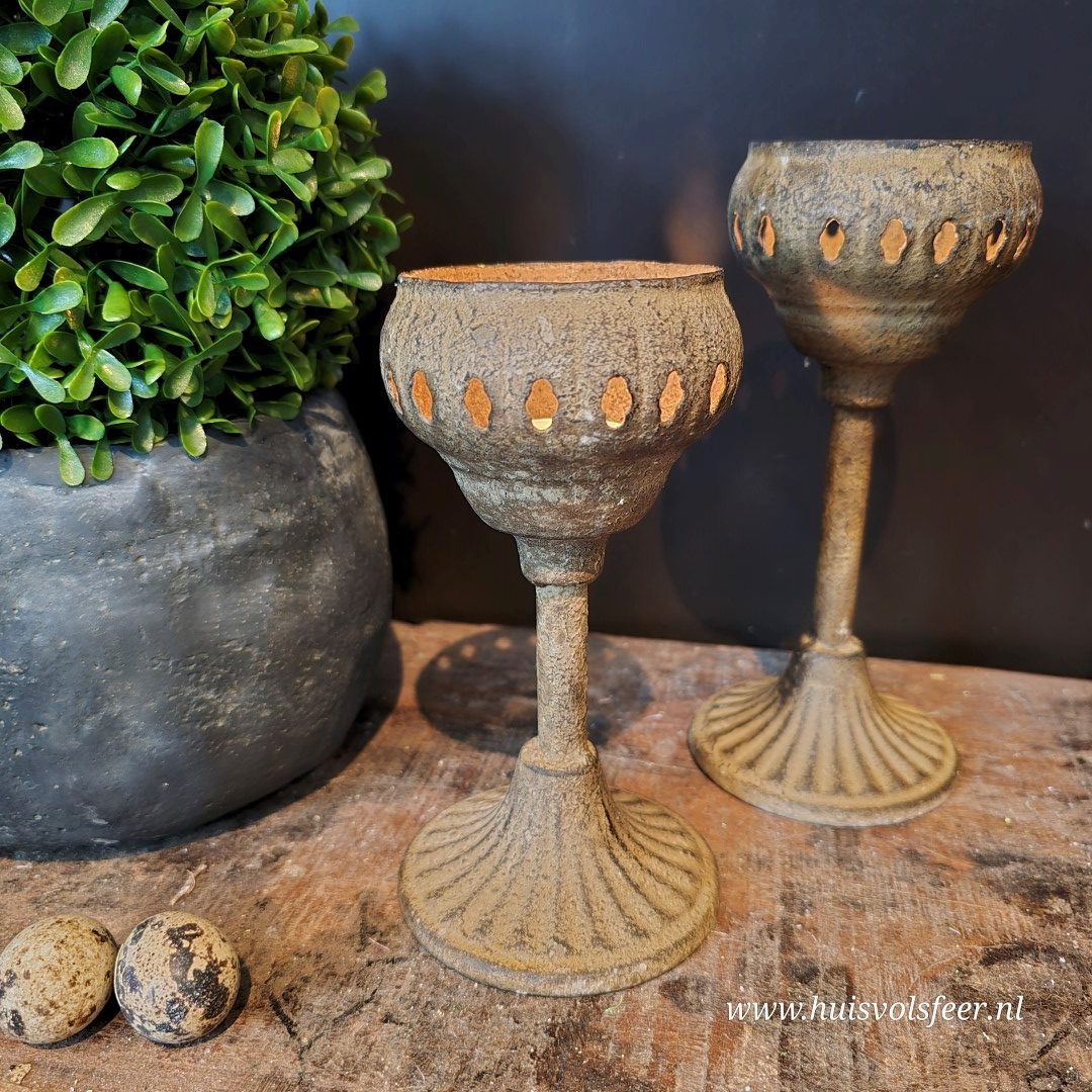 Deze kandelaar op voet roest Humpy is een sfeervol en landelijk woonaccessoire met een stoere, doorleefde uitstraling. Het warme roestkleurige metaal en de opengewerkte rand zorgen voor een mooi lichtspel wanneer er een (led) waxinelichtje in brandt. Perfect voor op een dressoir, tafel of in een open kast voor extra sfeer in huis.