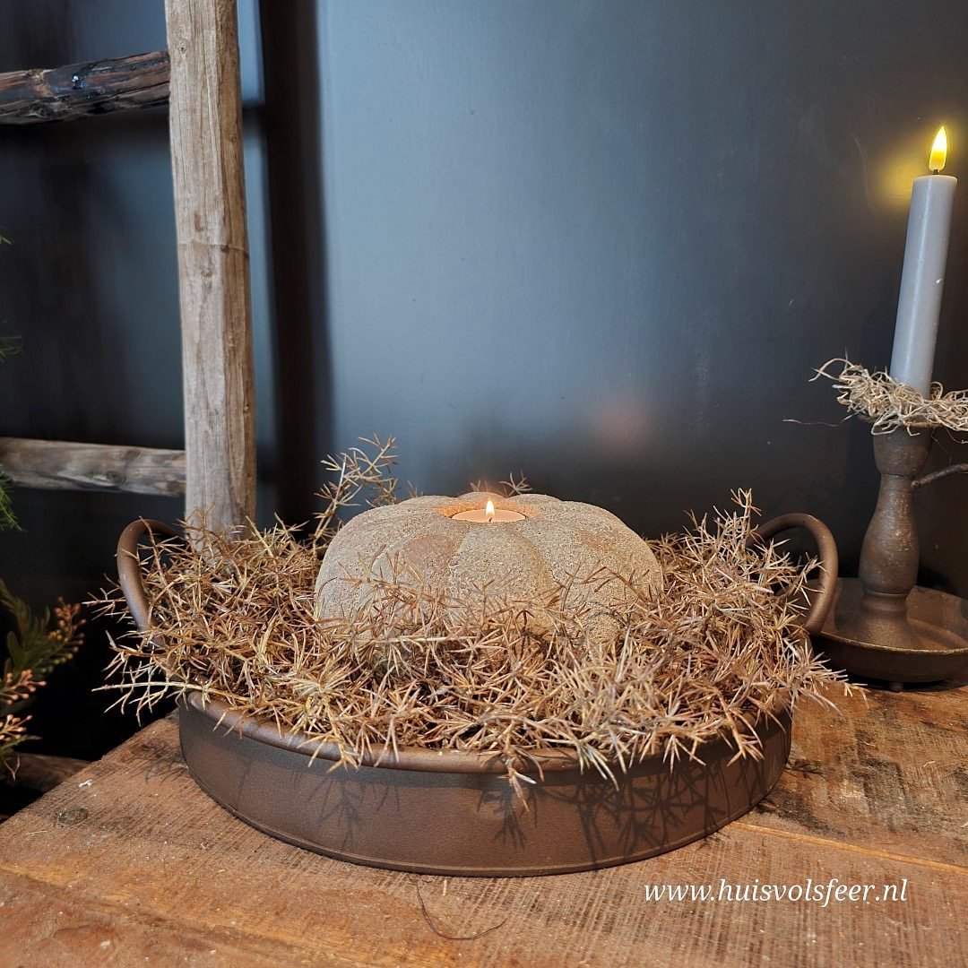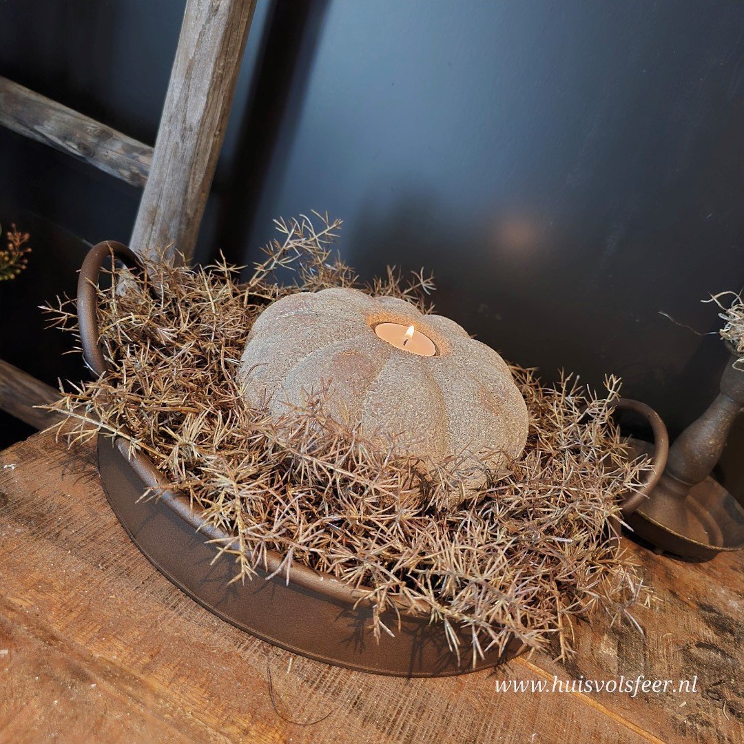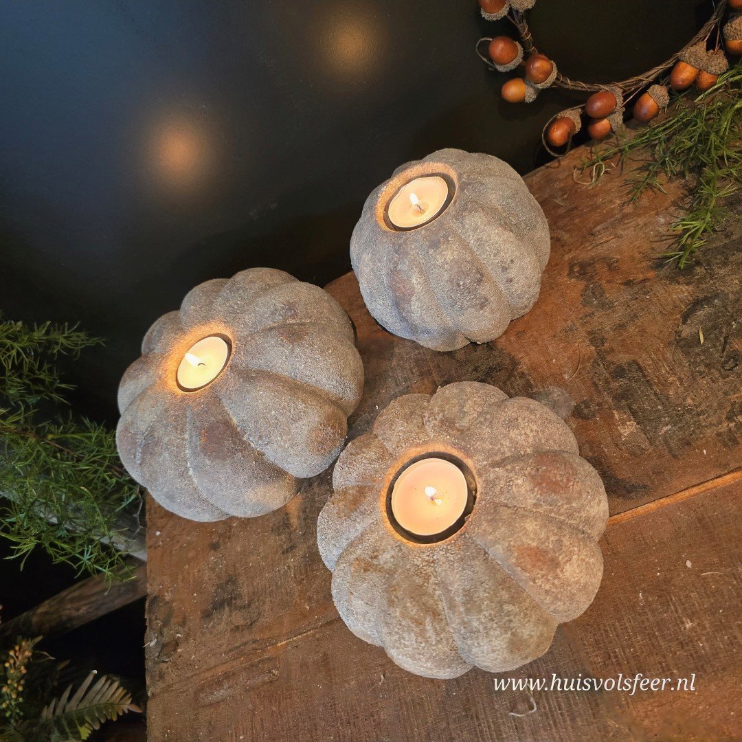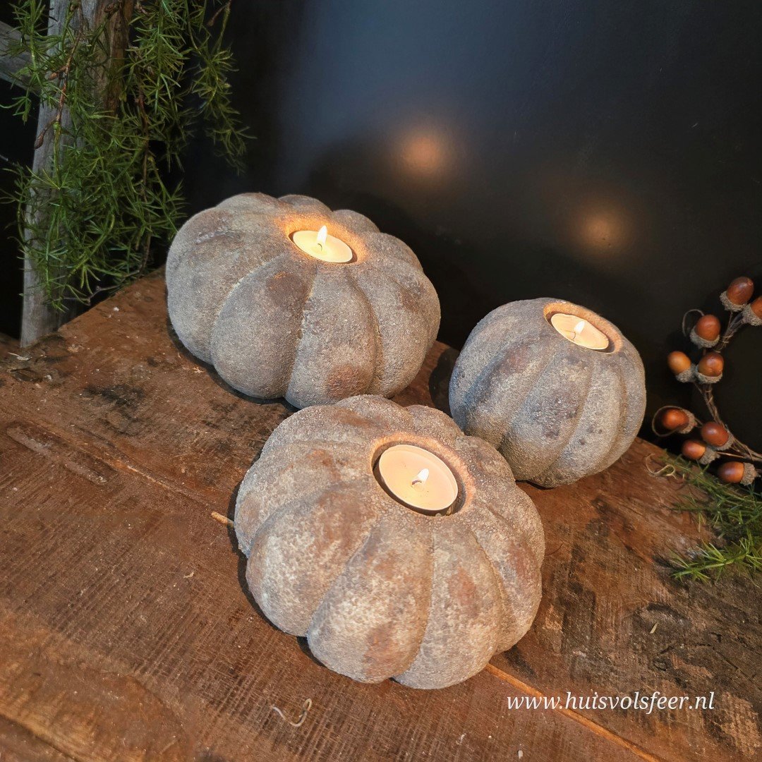 De grootste uit de Pumpkin-serie is een echte sfeermaker. Deze stoere kandelaar van zwaar, verweerd steen is perfect als basisstuk in een sfeervolle setting. Combineer hem met de andere Pumpkin-formaten voor een speels gestapeld effect of zet hem solitair neer als blikvanger. Geschikt voor waxinelichtjes of een dinerkaars. Ook prachtig met een beetje Tillandsia of decoratief mos.