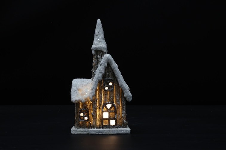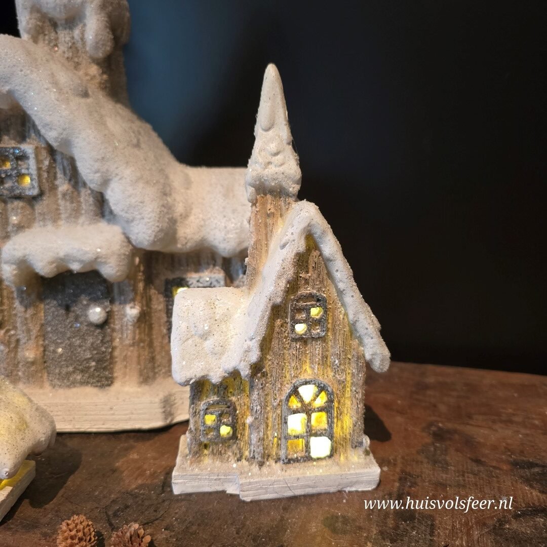 Breng de winterse sfeer in huis met deze prachtige IJsbruine Kerk met LED-verlichting!