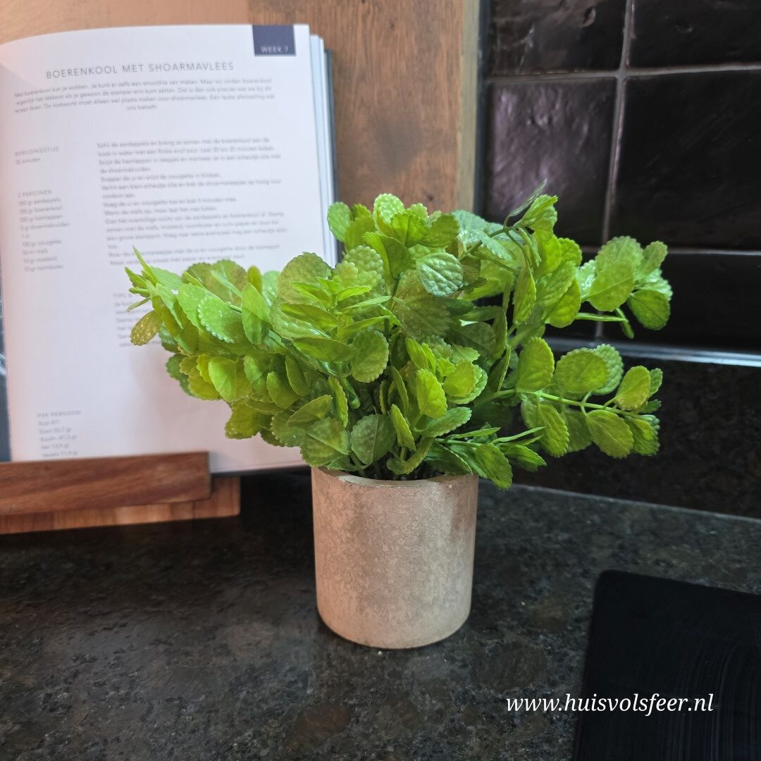 Een decoratief kunstplantje dat altijd mooi groen blijft.