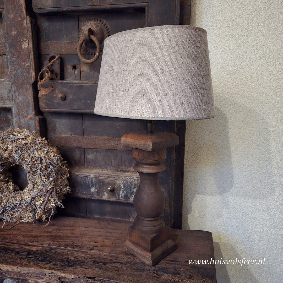 Deze baluster lamp is een echte sfeermaker in elk interieur. De robuuste houten voet heeft een stoere, landelijke uitstraling en vormt een prachtig contrast met de zandkleurige ovale kap. Samen zorgen ze voor een tijdloze en warme look die perfect past in een landelijk of sober interieur.