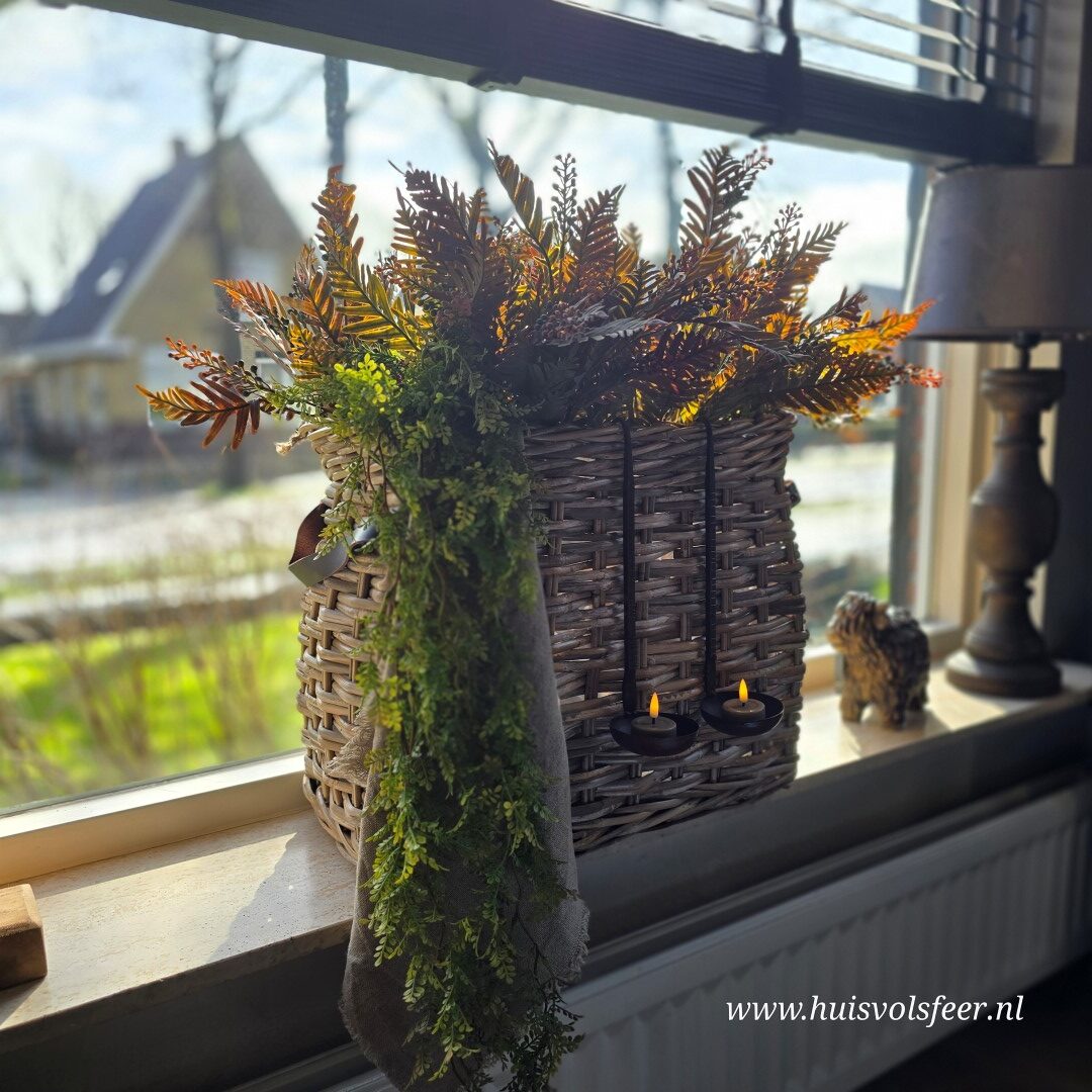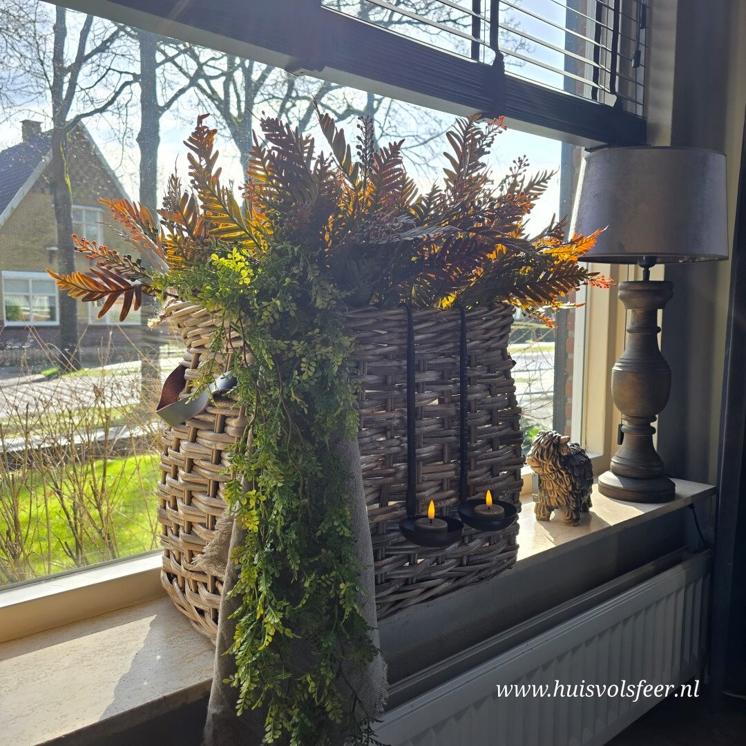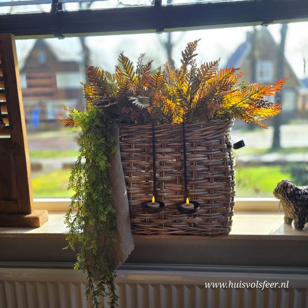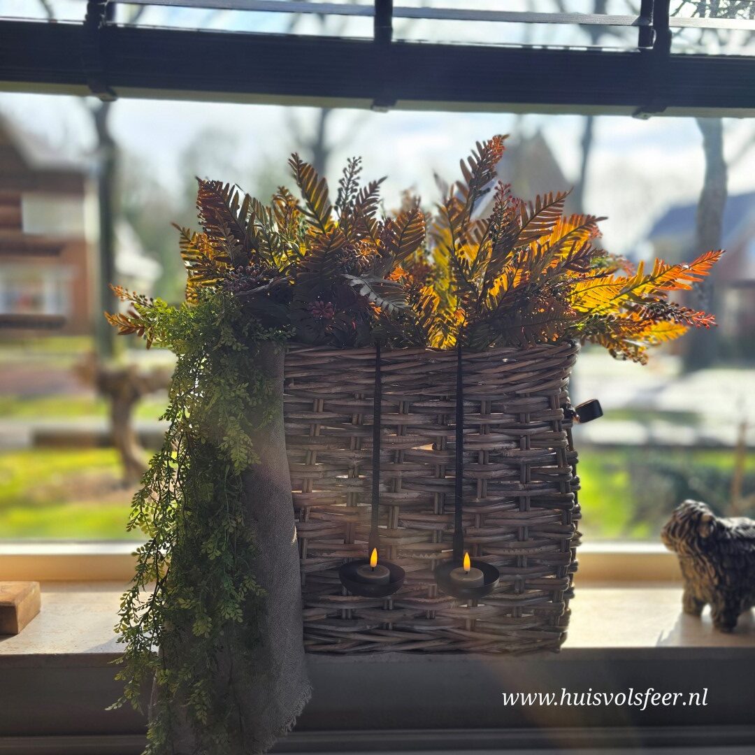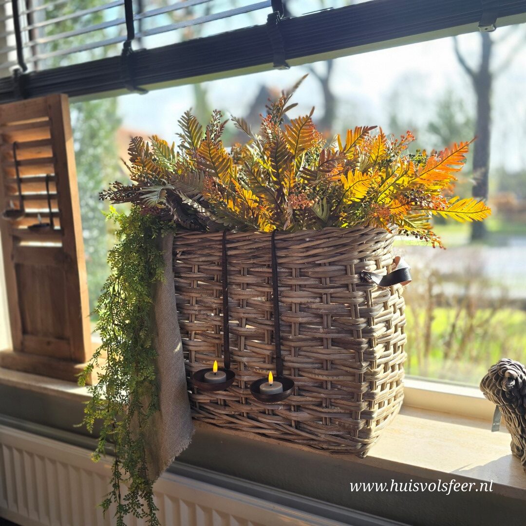 *Deze mand laat zich prachtig combineren met onze Myrica Bush takken en de Lipstick hanger. Voor een volle en sfeervolle look adviseren we ongeveer 6 bossen van de Myrica Bush in combinatie met de hanger.