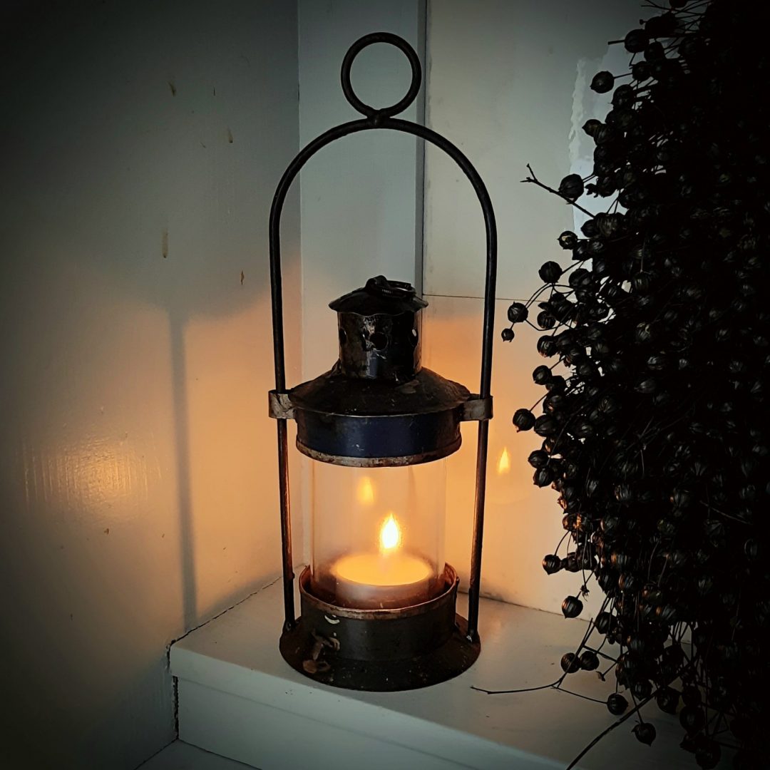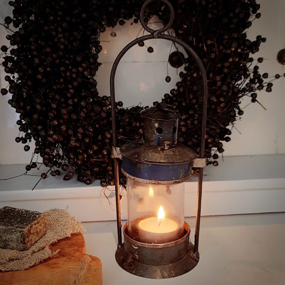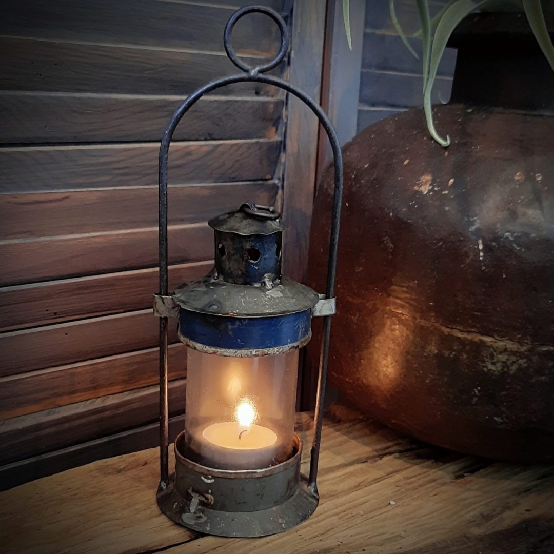 Mooi vintage lantaarntje/ stormlantaarn om een waxinelichtje in te branden.