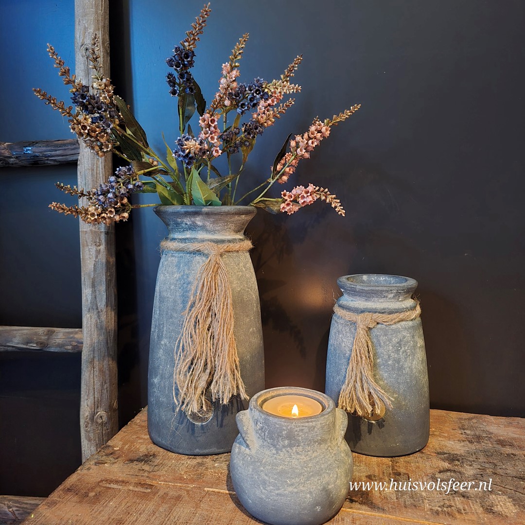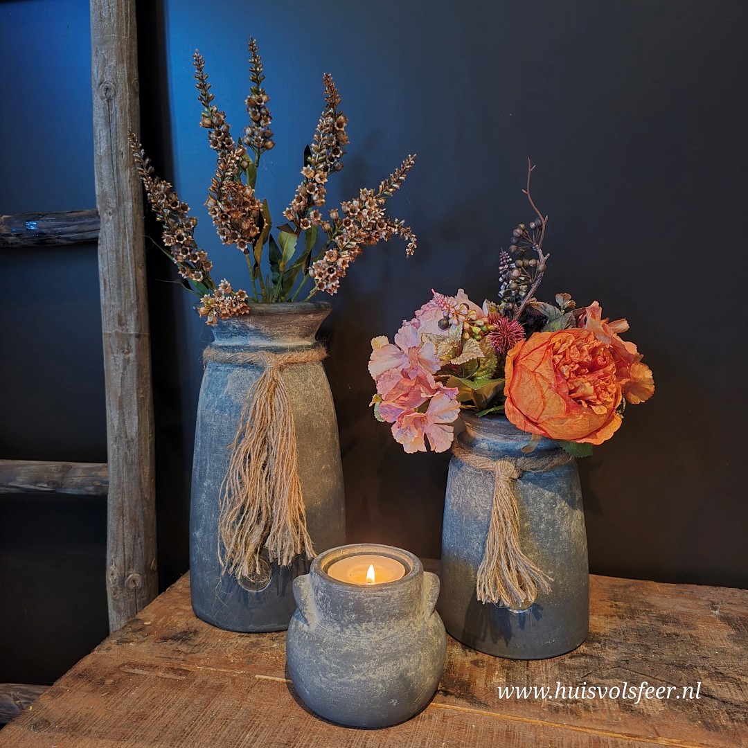 Op de eerste foto zijn alle drie de kleuren samen gestyled in één vaas.