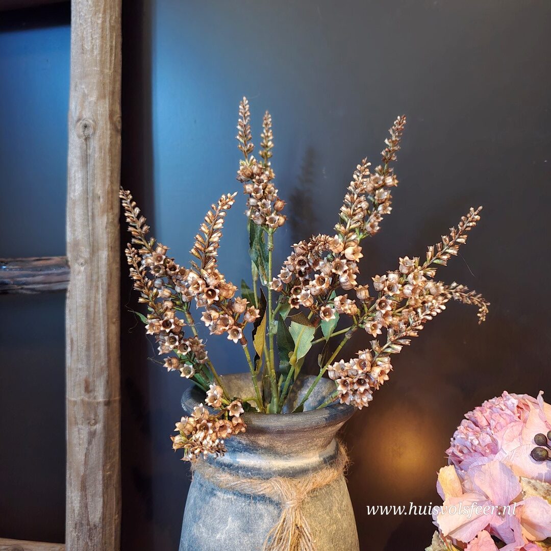 Deze verfijnde zijdetak heeft kleine bloemetjes en slanke vertakkingen, wat zorgt voor een luchtige en natuurlijke uitstraling. Perfect om volume en hoogte toe te voegen aan een boeket of mooi als losse tak in een kruik of vaas.