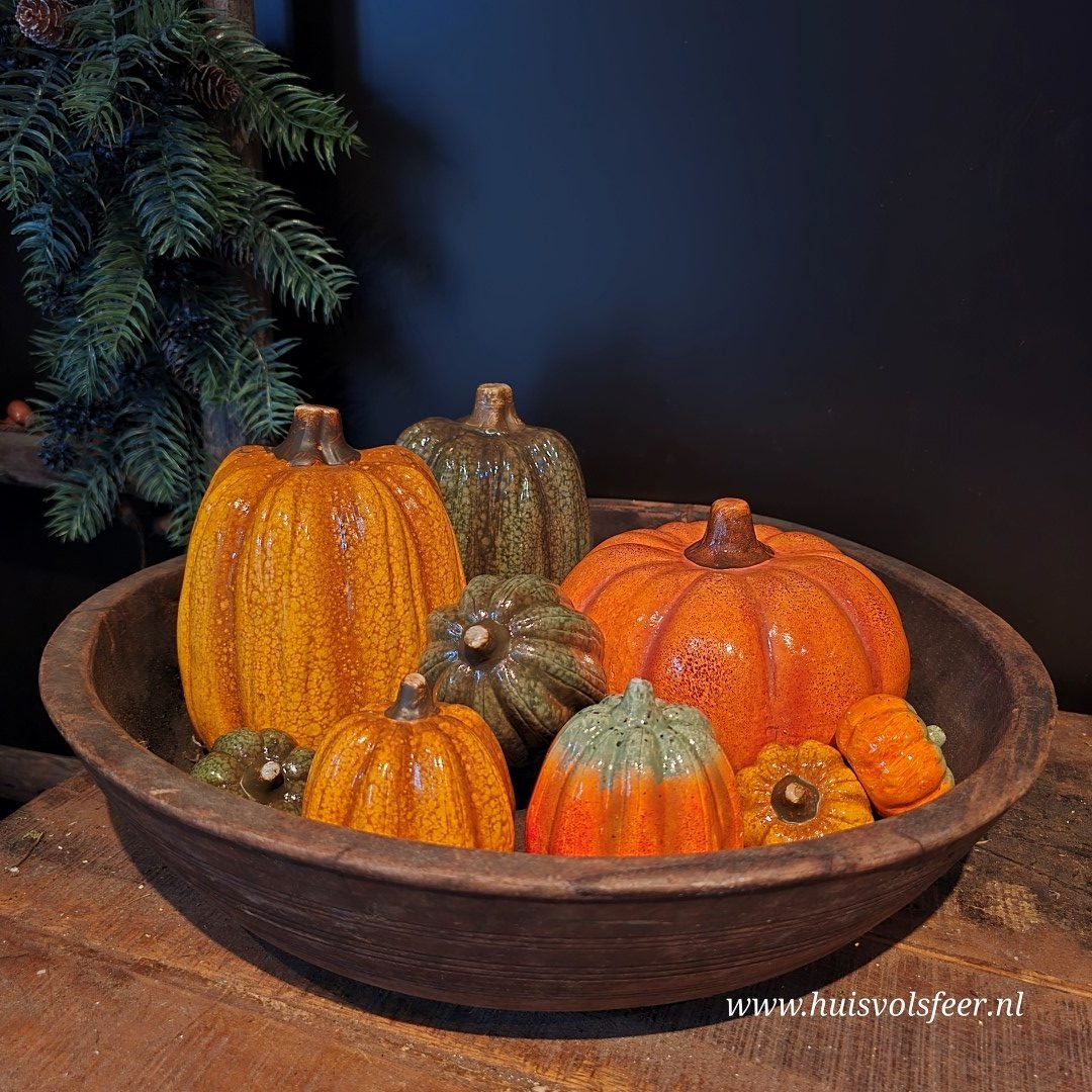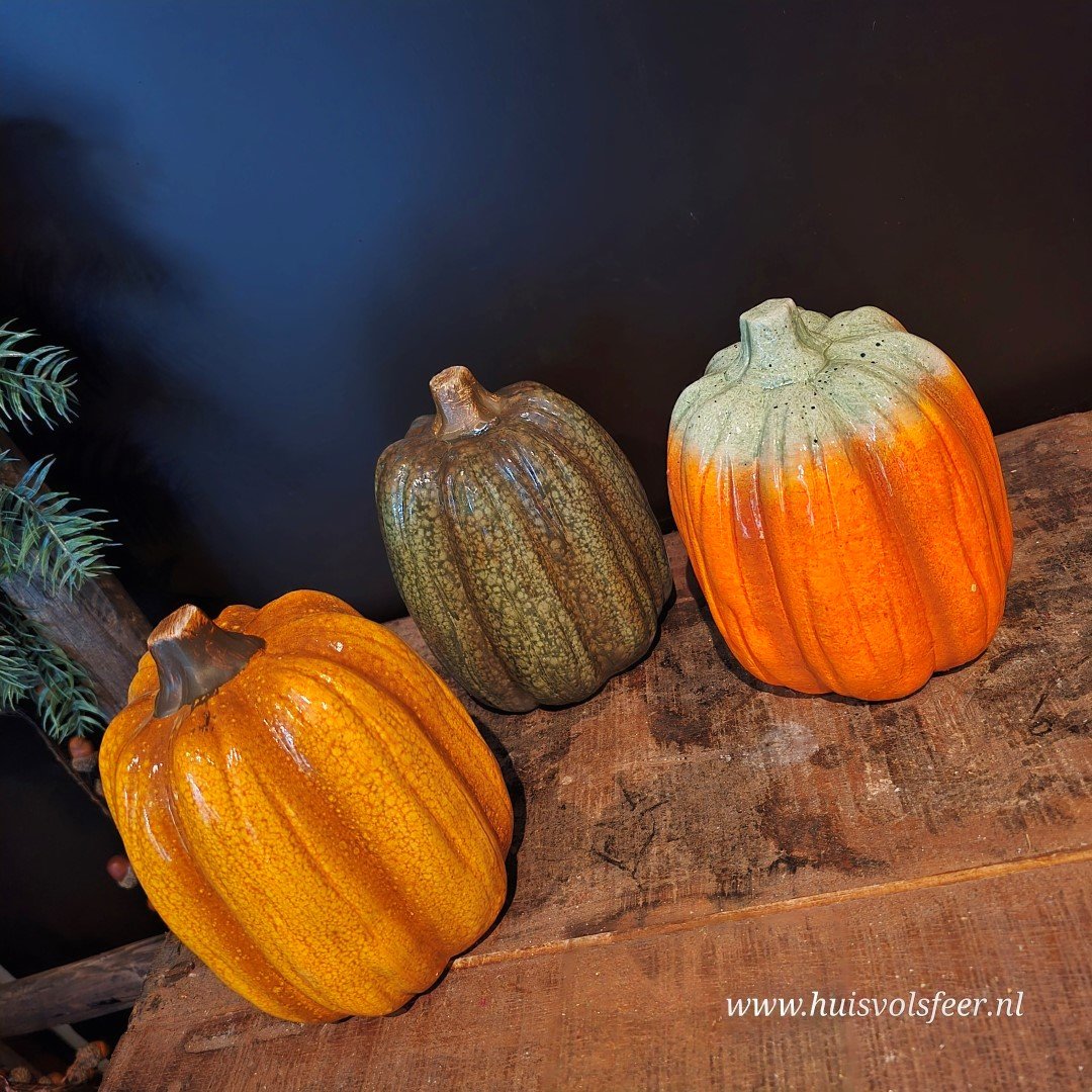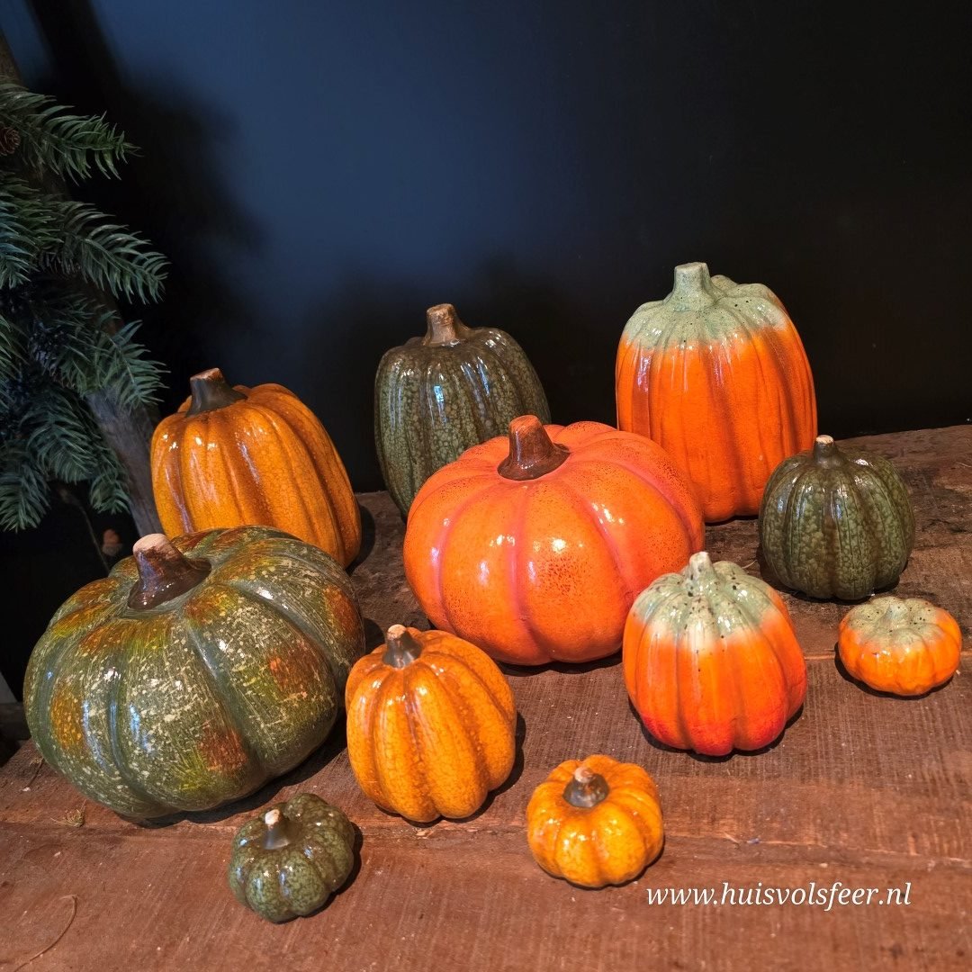 Breng direct herfstsfeer in huis met deze prachtige keramieken pompoen in een warme, diepe oranje tint. De geglazuurde afwerking geeft een subtiele glans, waardoor hij perfect combineert met hout, zink of een stoer shabby doek.
