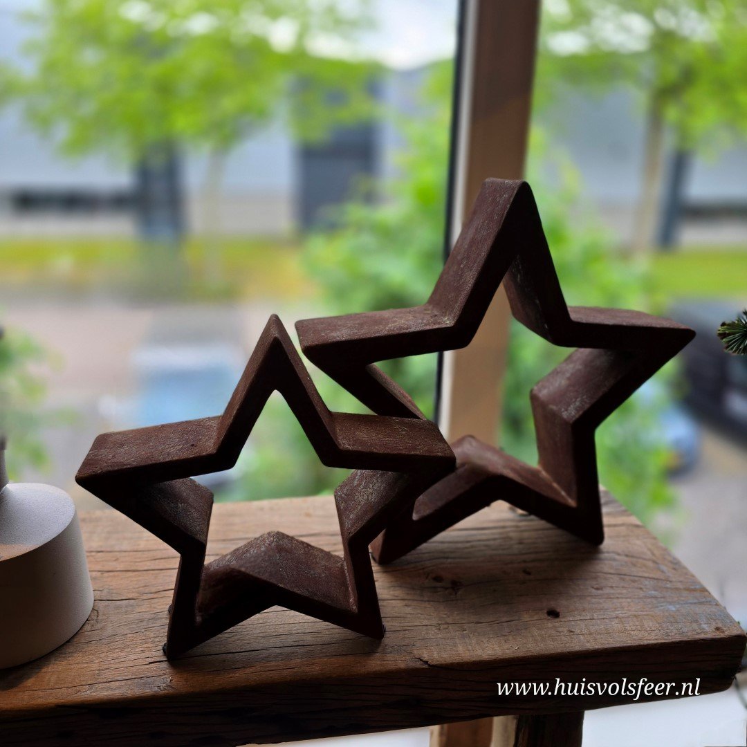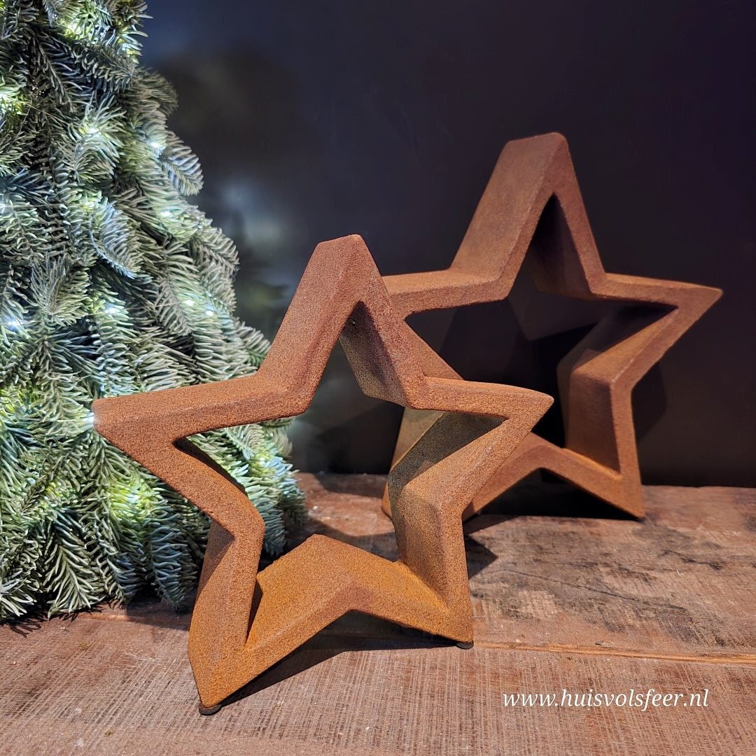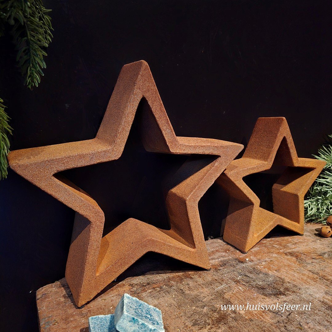 Breng sfeer in huis met deze Pors Ster van aardewerk in een stoere roestkleur. De matte afwerking en robuuste vorm geven dit woonaccessoire een unieke, industriële look met een vleugje landelijke charme.
