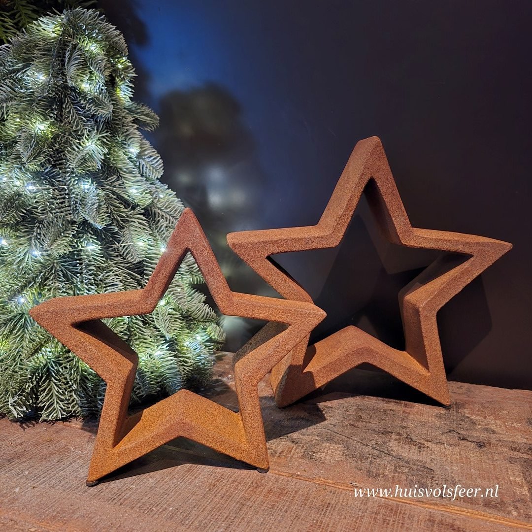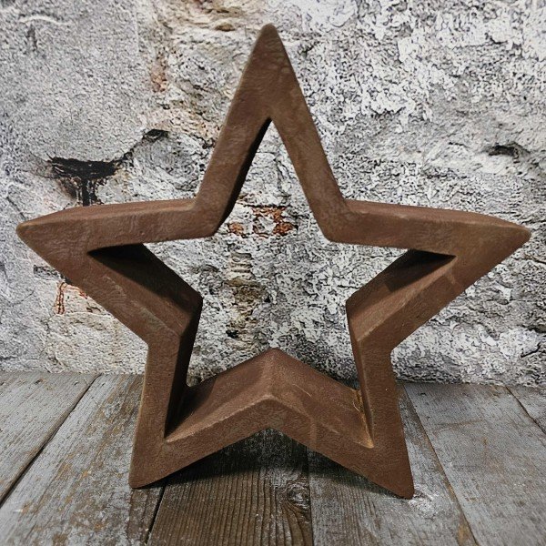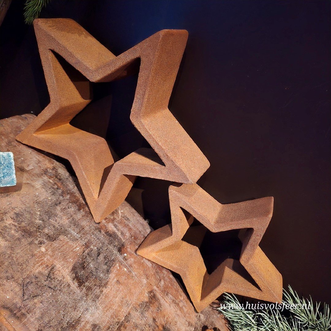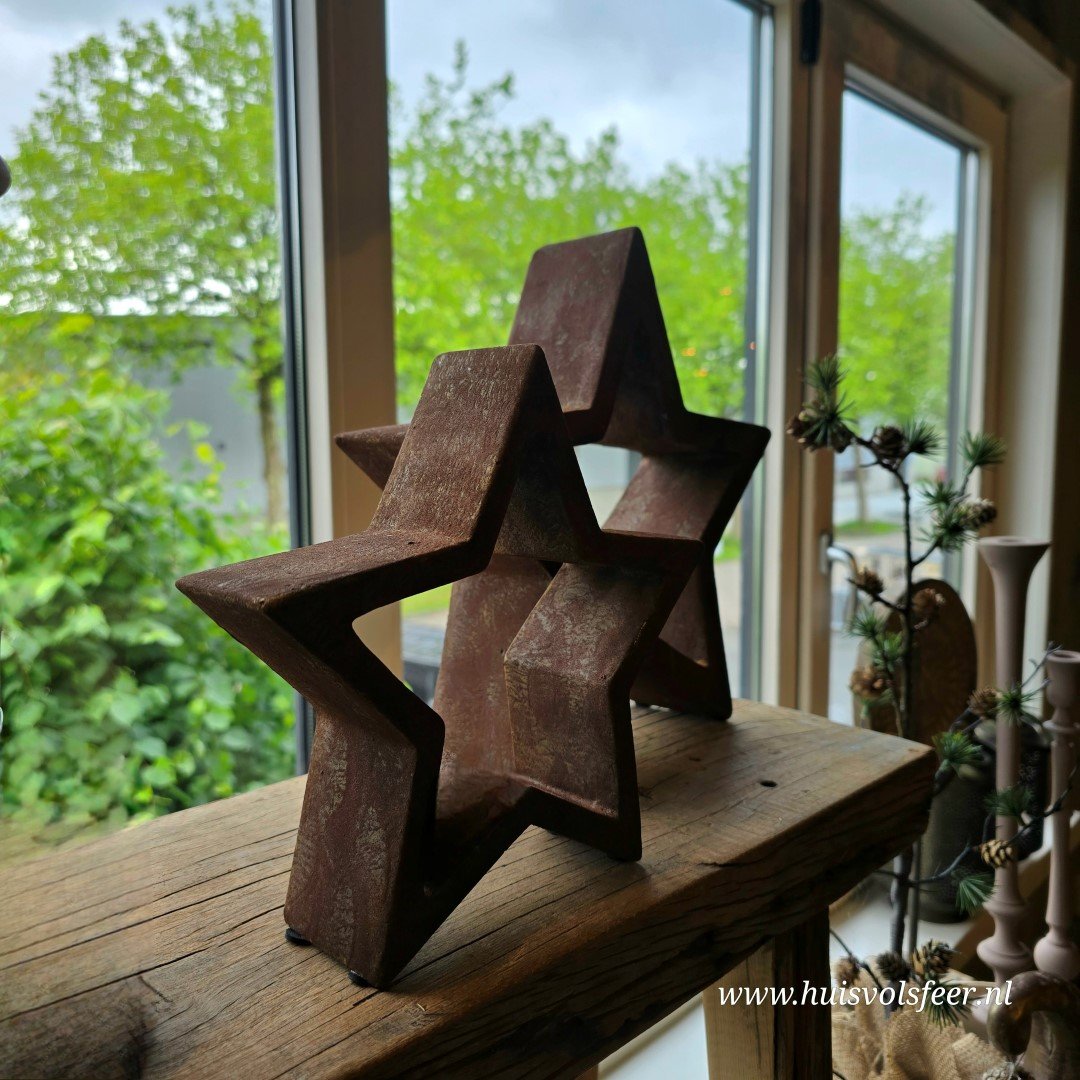 Breng sfeer in huis met deze Pors Ster van aardewerk in een stoere roestkleur. De matte afwerking en robuuste vorm geven dit woonaccessoire een unieke, industriële look met een vleugje landelijke charme.
