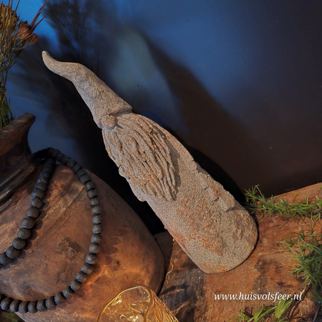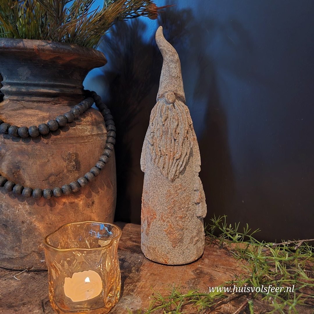 De Rustique Kerstman Wobbel in klein formaat is een sfeervol decoratiebeeldje met een authentieke, landelijke uitstraling. Het beeldje heeft een puntmuts, lange baard en een klein kerstboompje in de hand. Door de verweerde steenlook lijkt deze gnoom een doorleefd object, alsof hij al jaren een vaste plek heeft in je interieur.