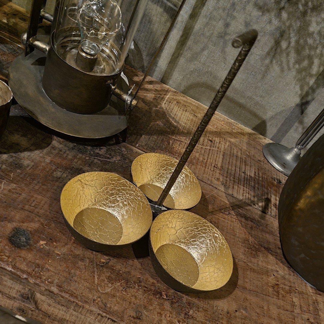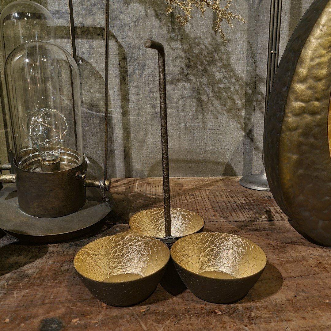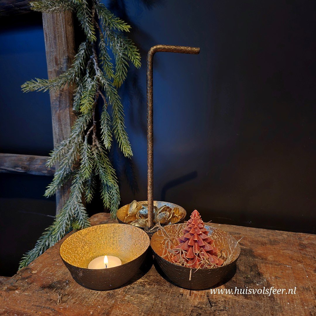 Mooi goud/ brons kleurige schaal met rondom 3 bakjes.