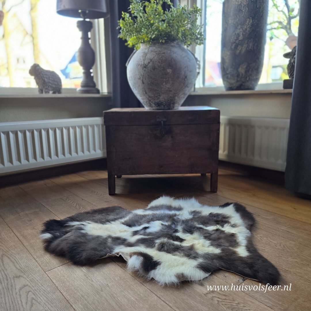 Iedere schapenvacht heeft zijn eigen karakter, kleur en tekening. De combinatie van lichte en donkere tinten zorgt voor een speels en natuurlijk effect dat perfect past in ieder interieur.