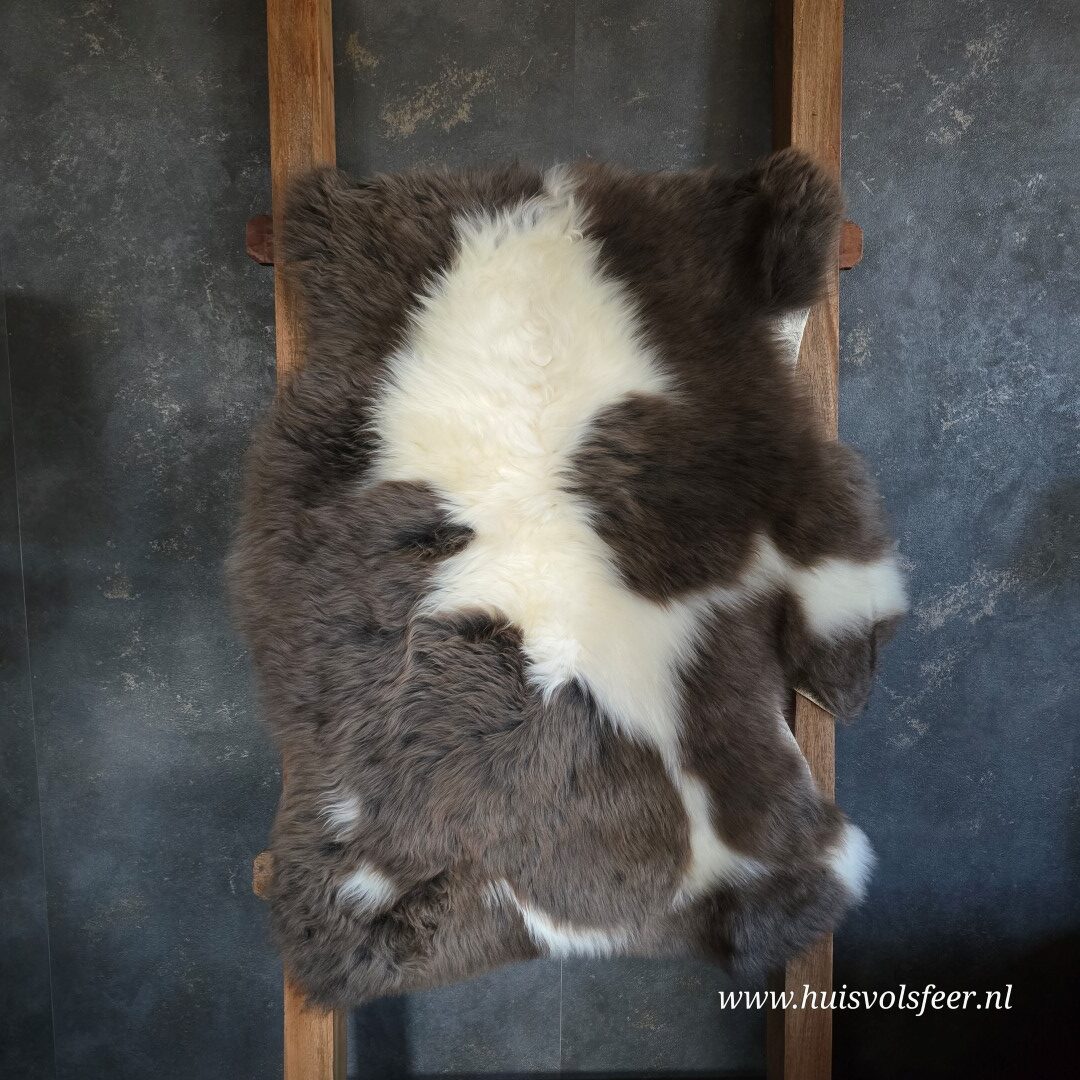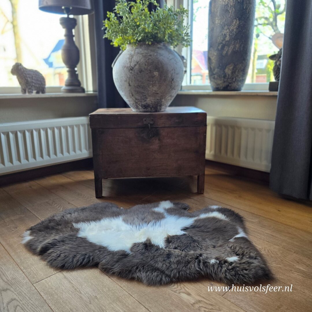 Iedere schapenvacht heeft zijn eigen karakter, kleur en tekening. De combinatie van lichte en donkere tinten zorgt voor een speels en natuurlijk effect dat perfect past in ieder interieur.