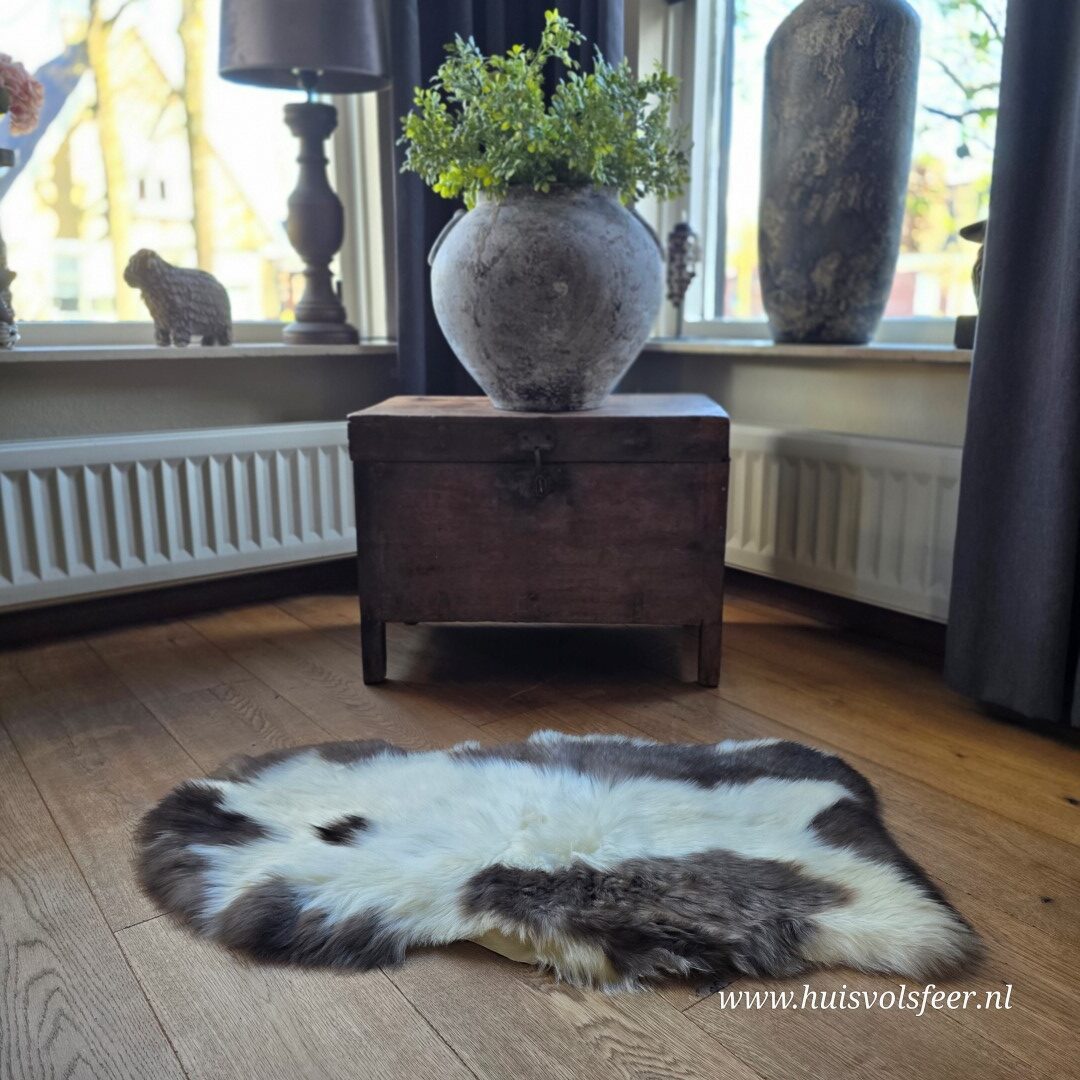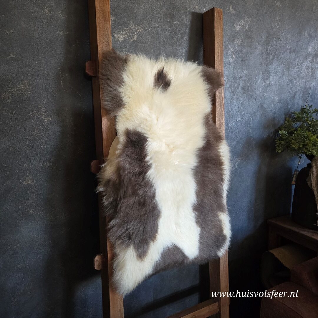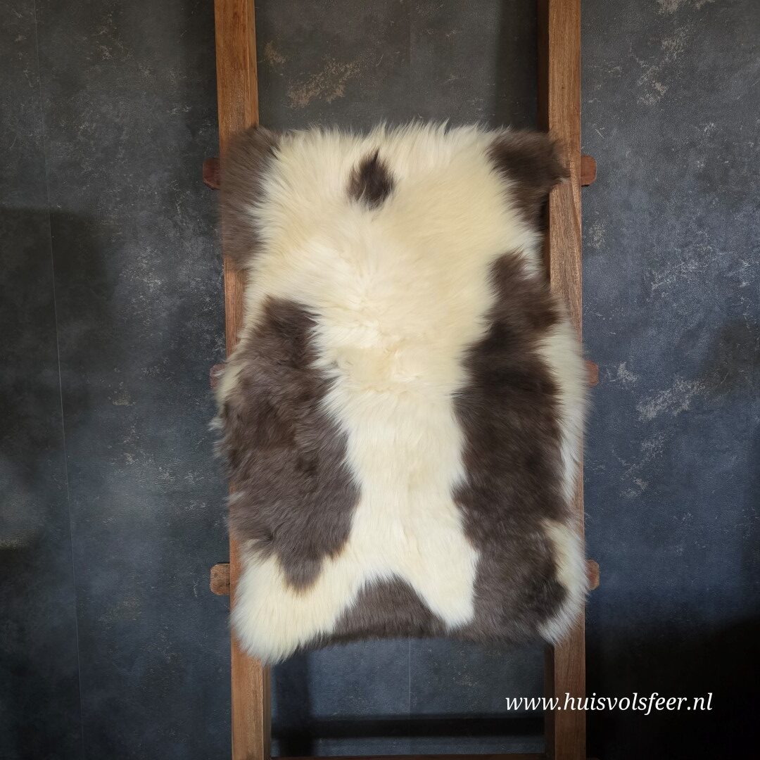 Iedere schapenvacht heeft zijn eigen karakter, kleur en tekening. De combinatie van lichte en donkere tinten zorgt voor een speels en natuurlijk effect dat perfect past in ieder interieur.