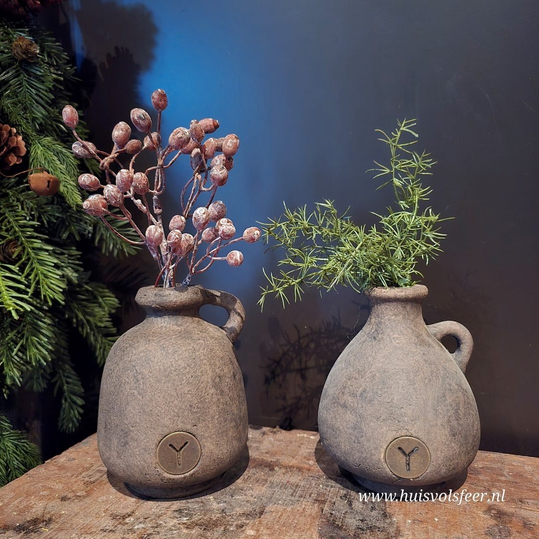 Voeg warmte en elegantie toe aan je interieur met deze Set of 2 Jugs Majestic Brown. De diepe, bruine kleurtint en robuuste afwerking geven deze kruikjes een stoere en natuurlijke uitstraling – perfect voor een landelijk of sober interieur.