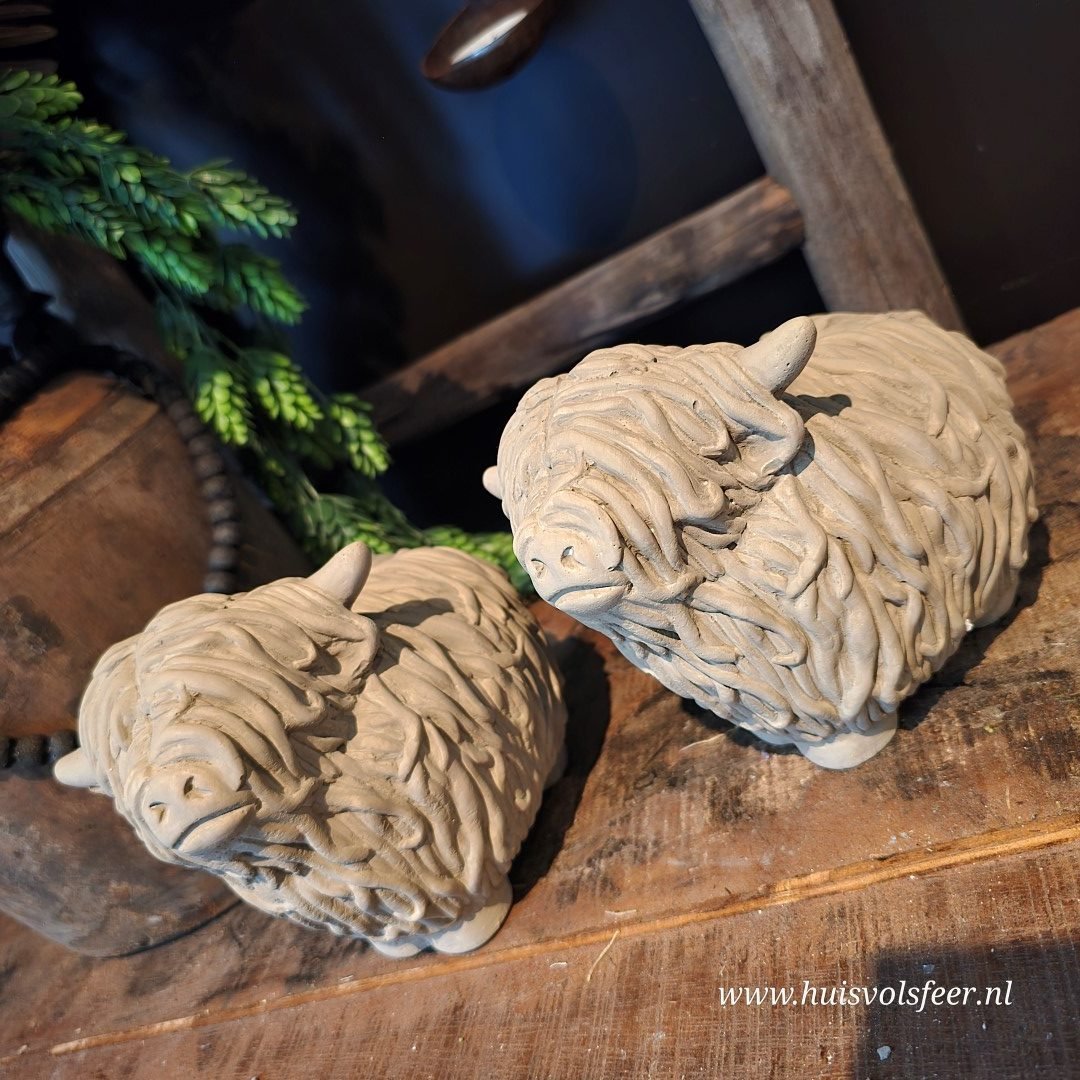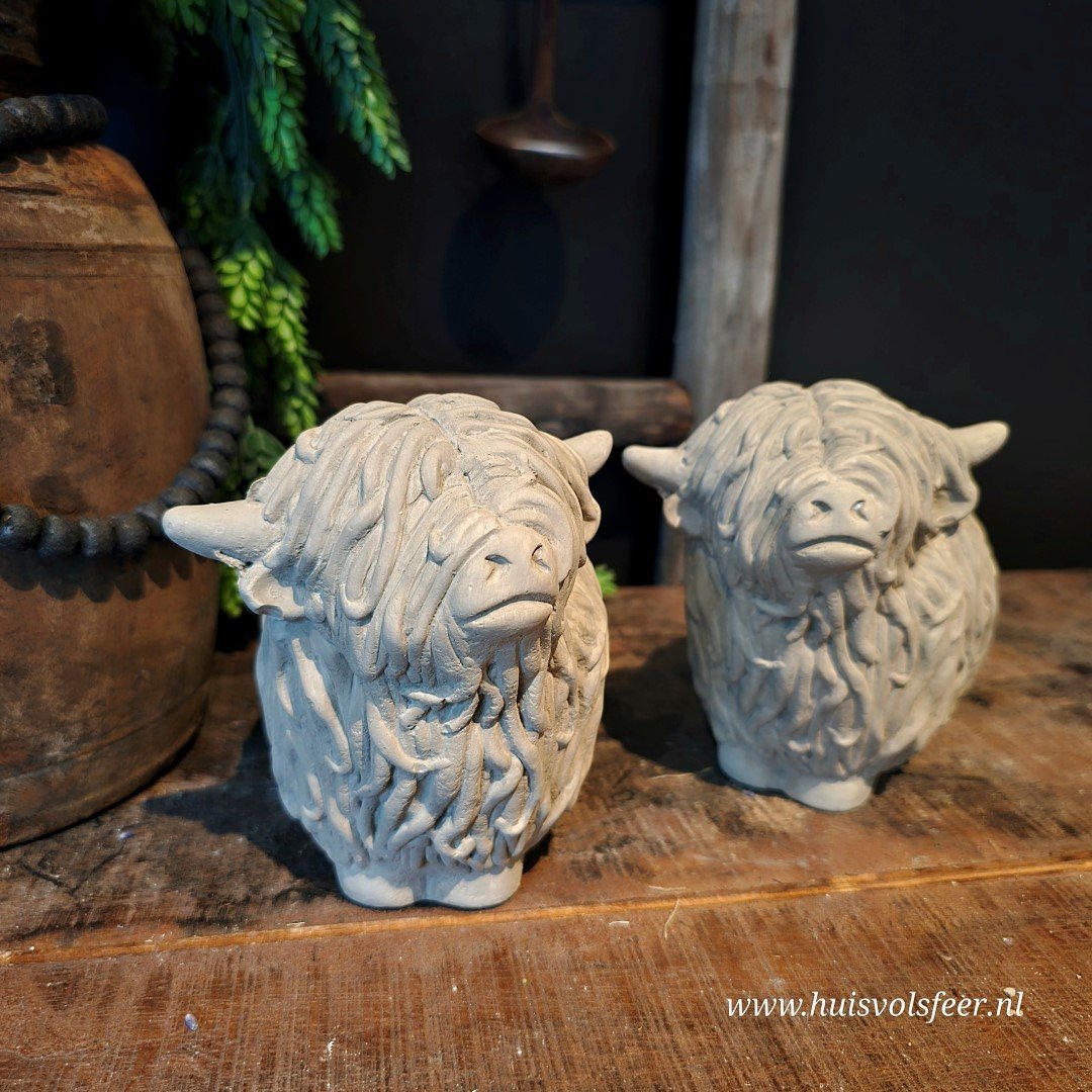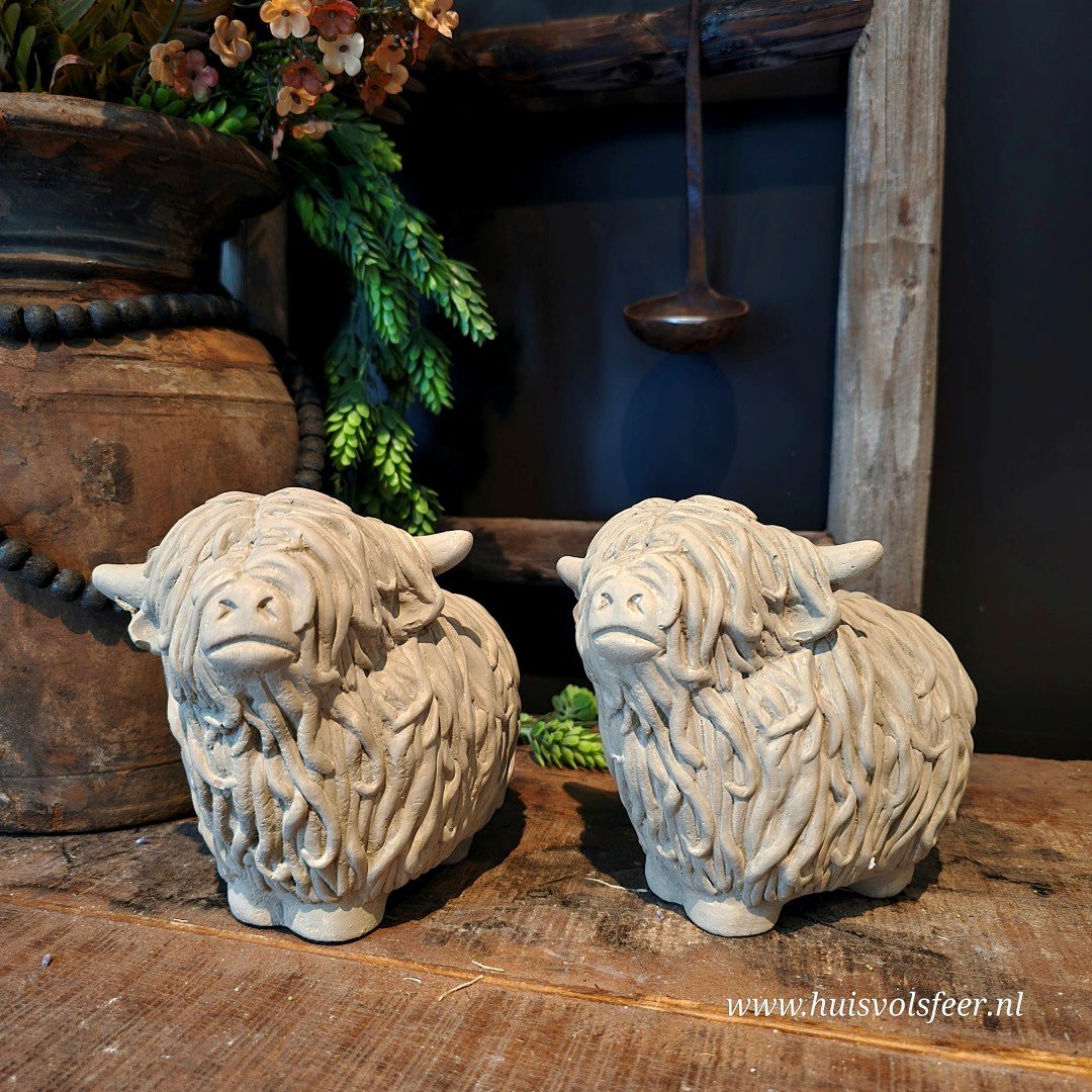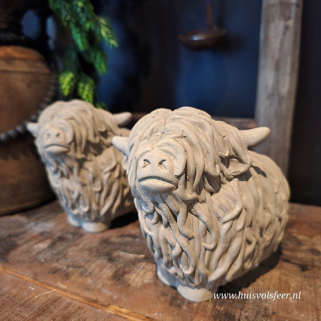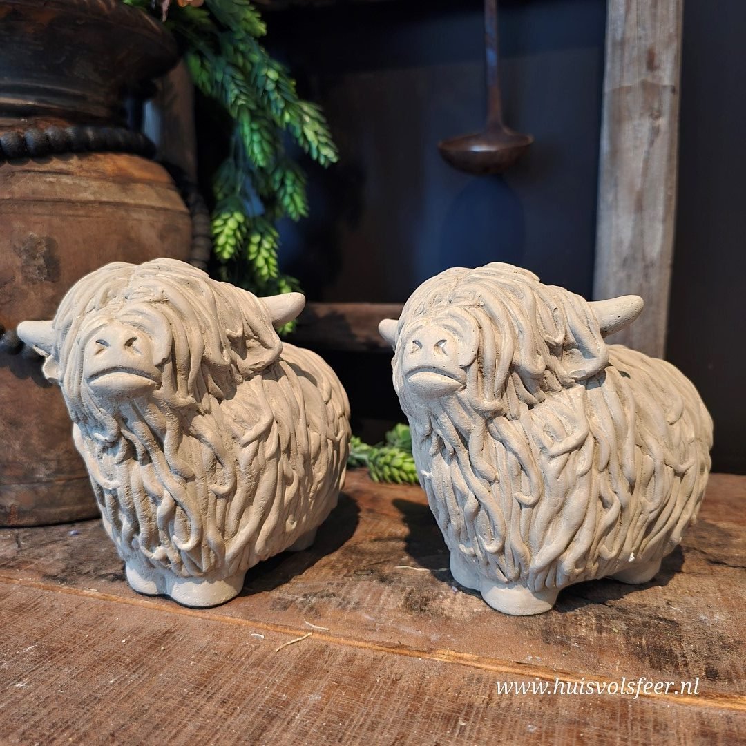 Ben je op zoek naar unieke decoratiebeelden van dieren? Deze decoratieve Schotse Hooglanders zijn ideaal als sfeermaker in huis, maar ook een origineel cadeau voor een echte liefhebber van landelijke en robuuste woonaccessoires.