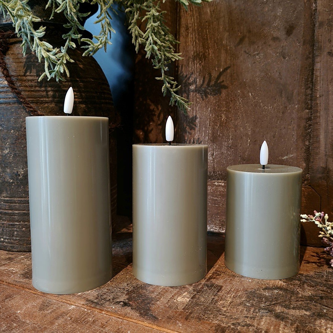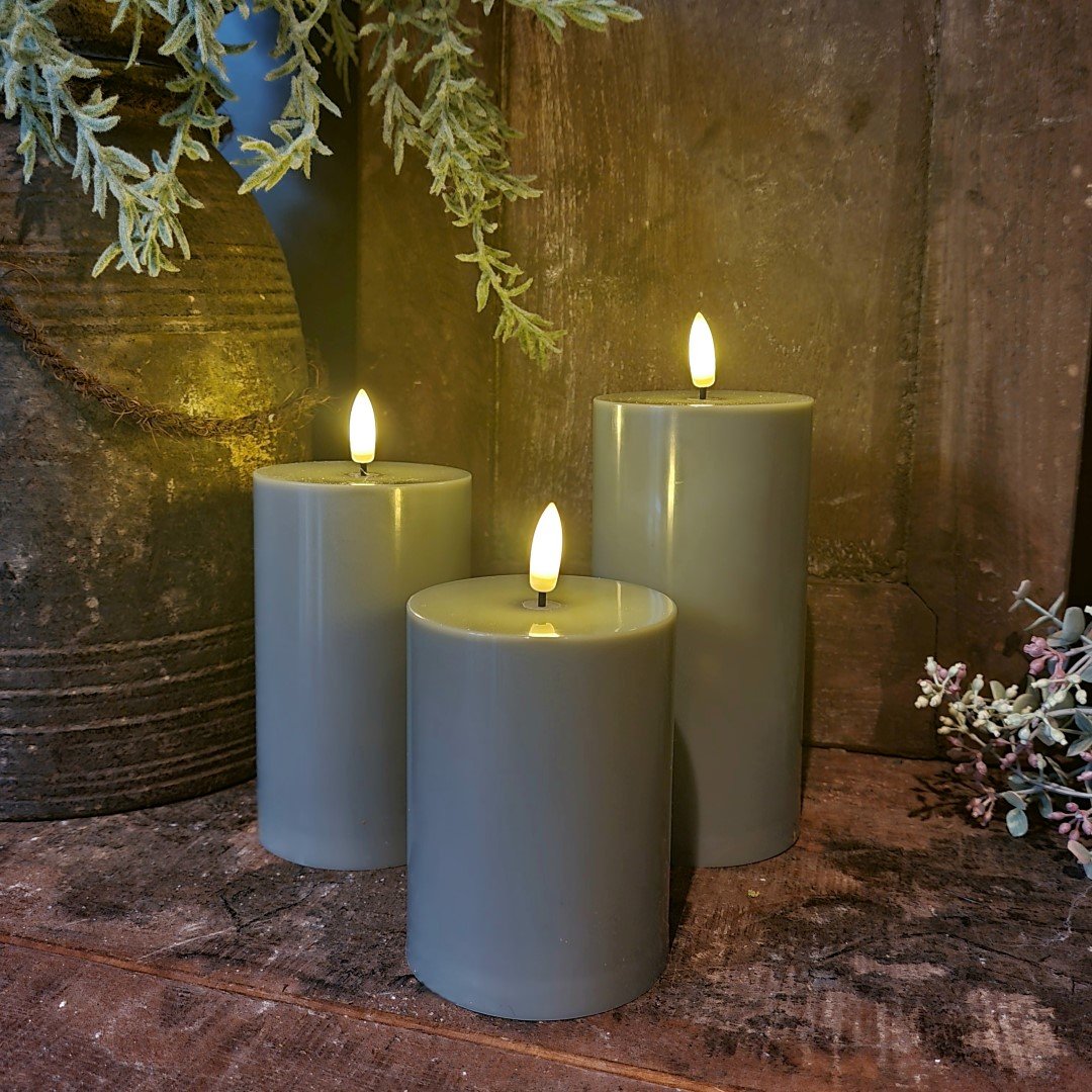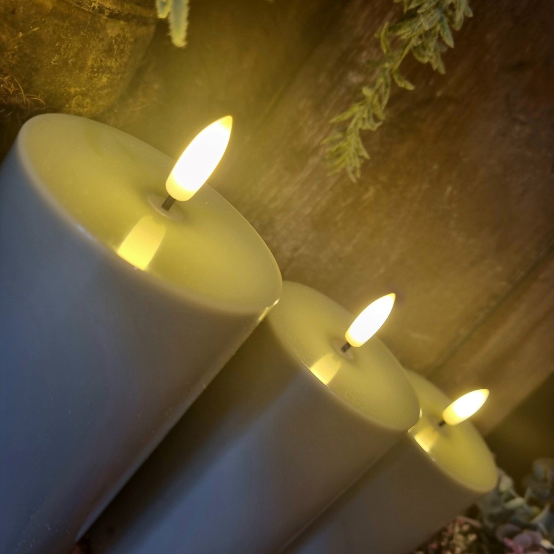 Set van 3 stompkaarsen in verschillende maten.