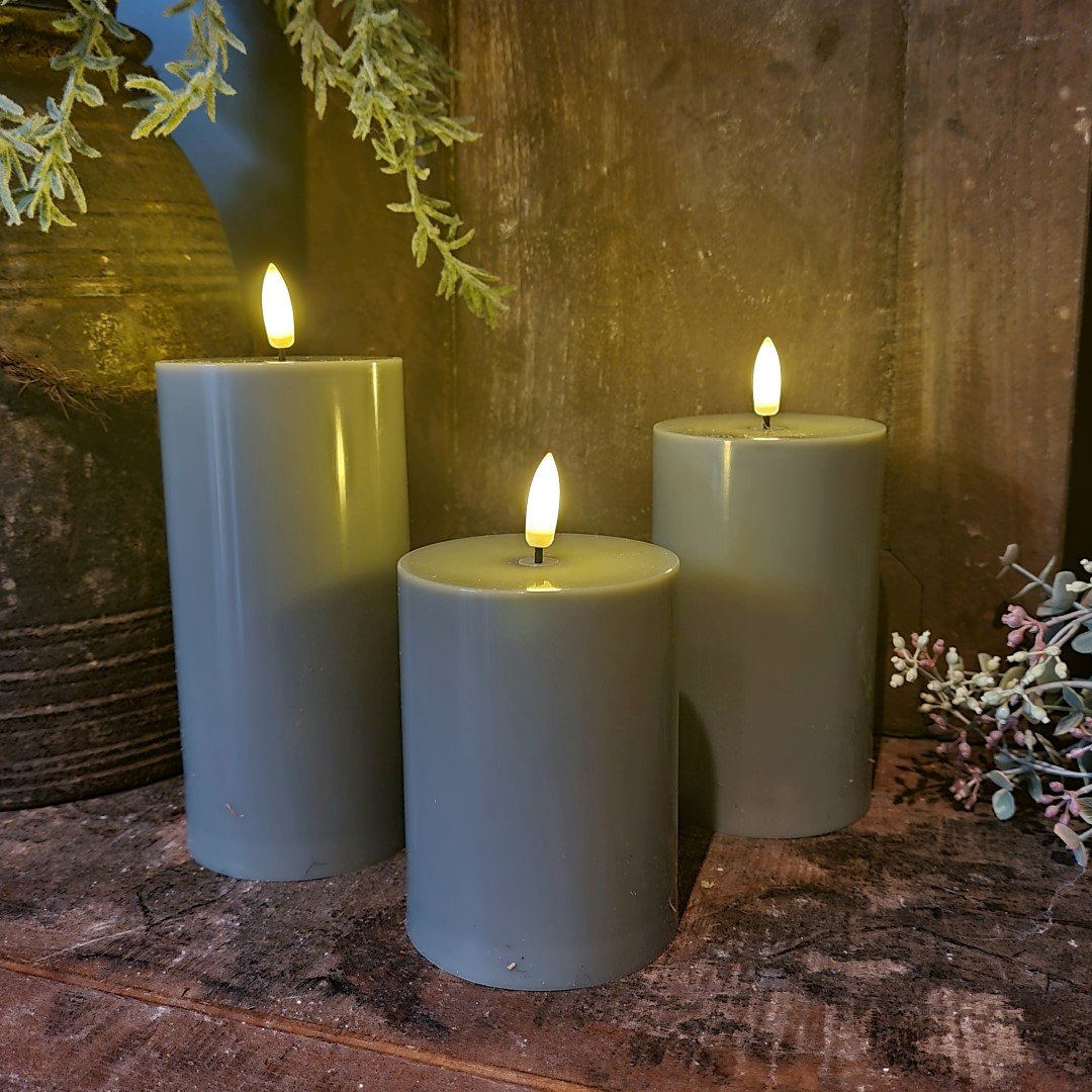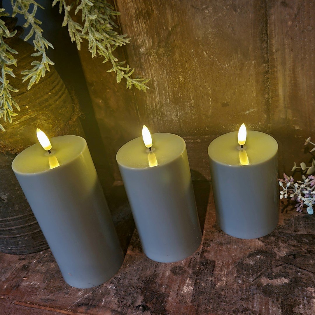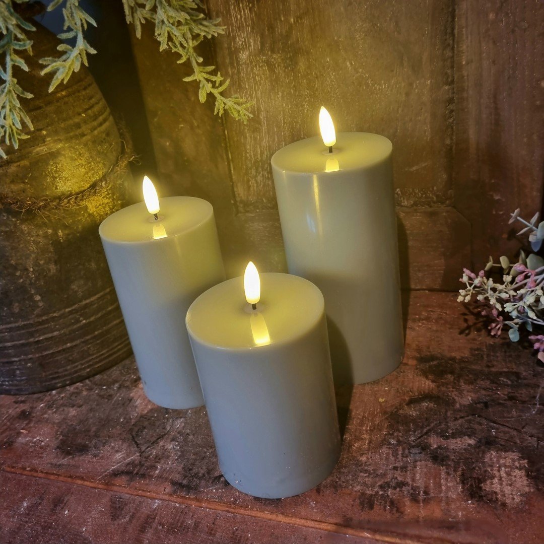 Set van 3 stompkaarsen in verschillende maten.