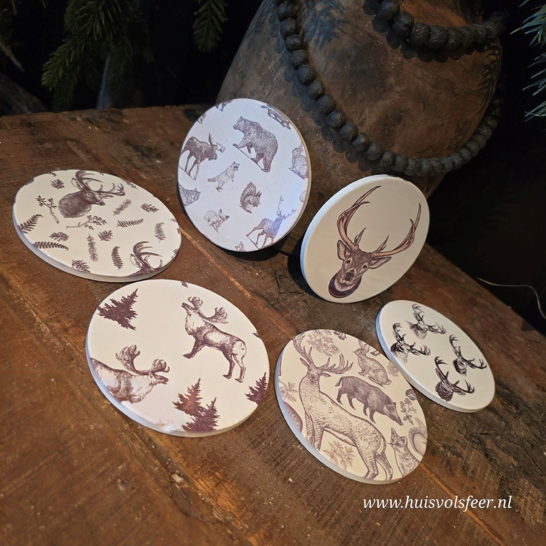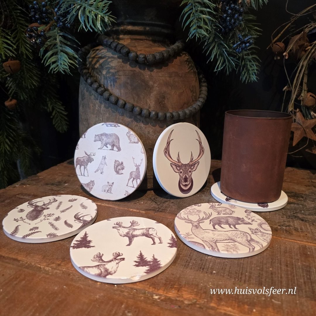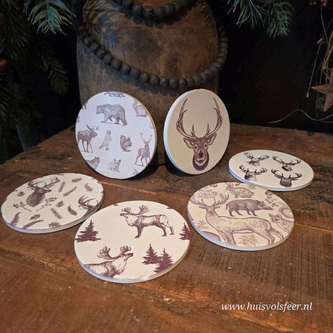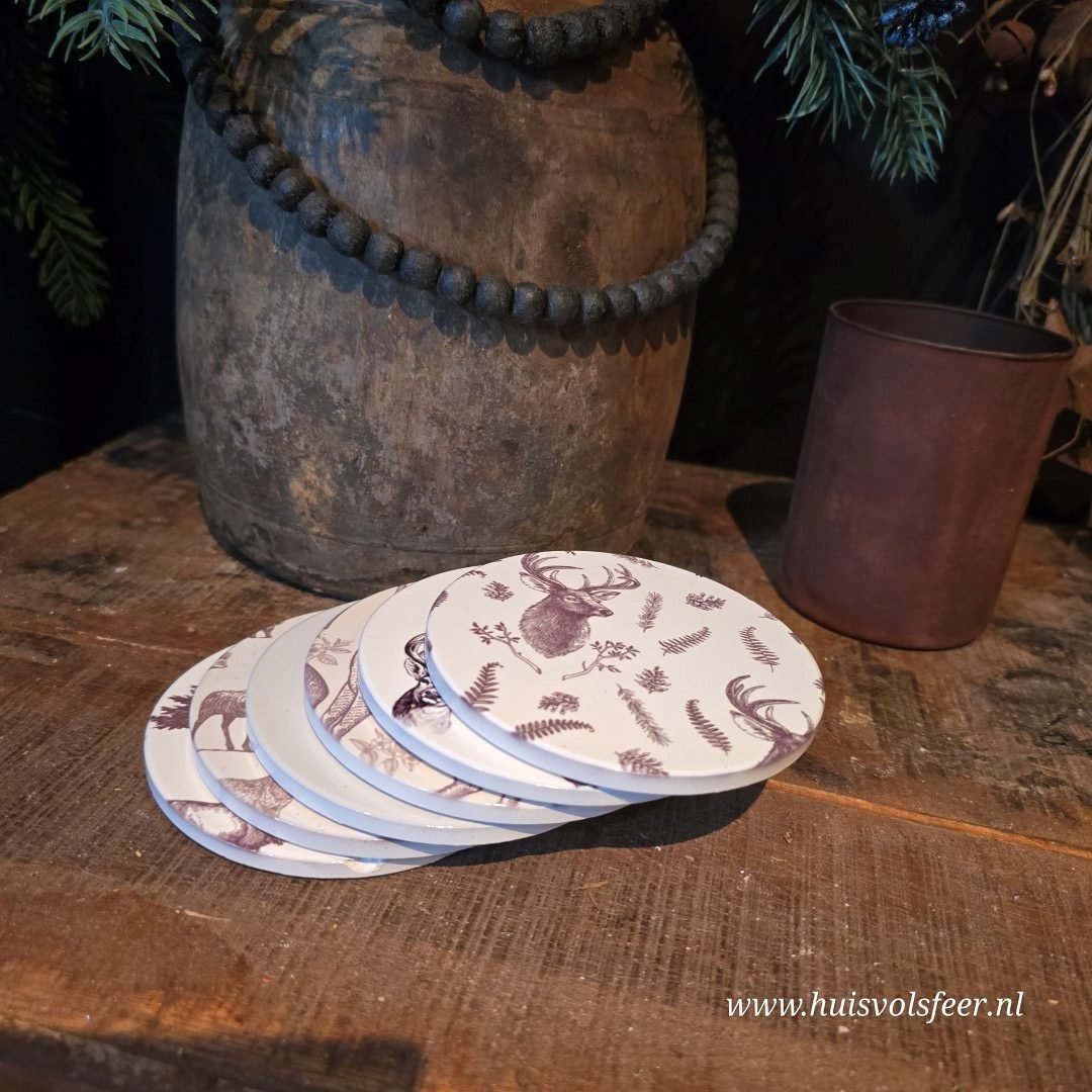 Set van 6 Onderzetters van Keramiek – Rendier