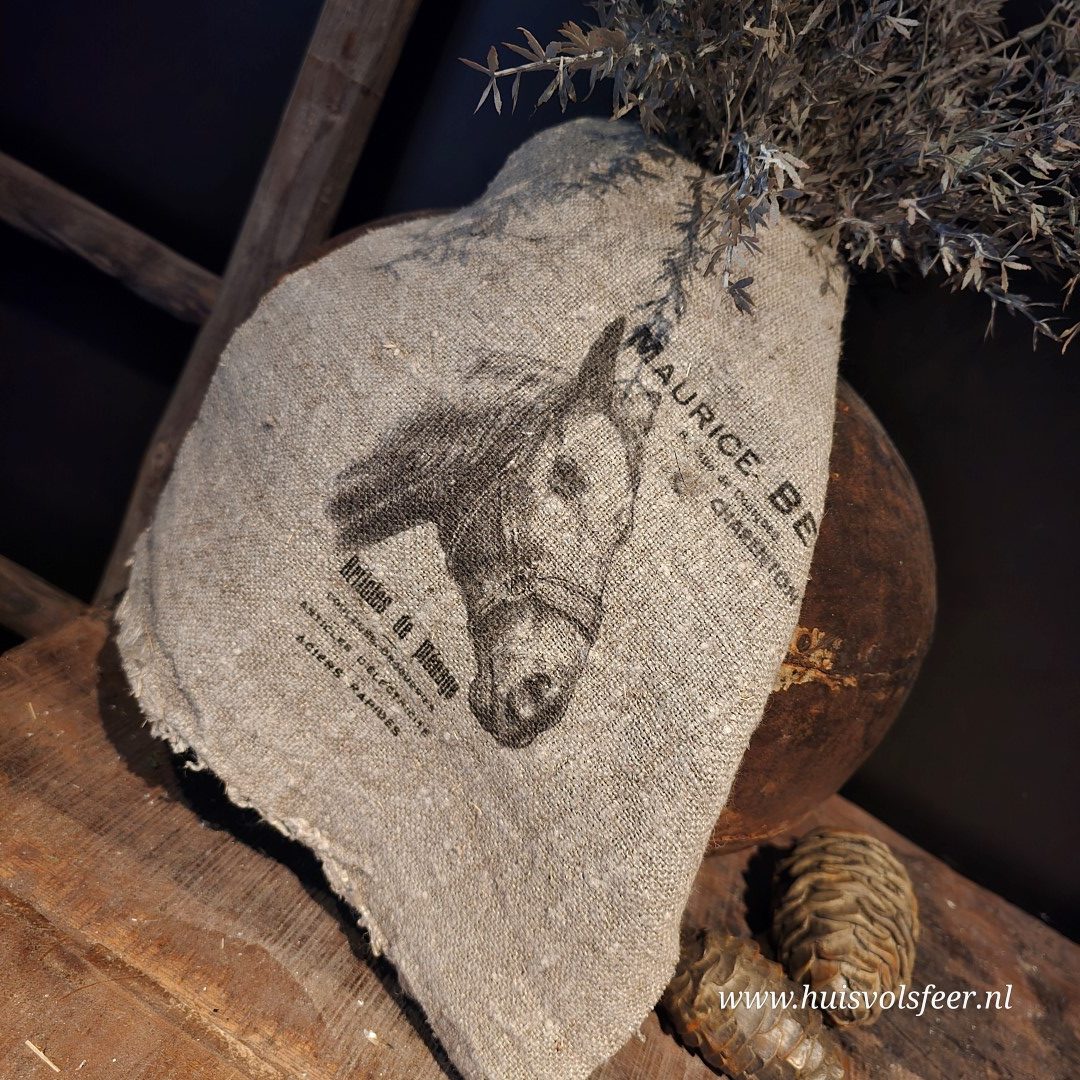Prachtige shabby doek met een afbeelding van een paard.
