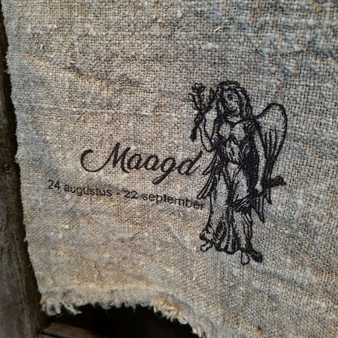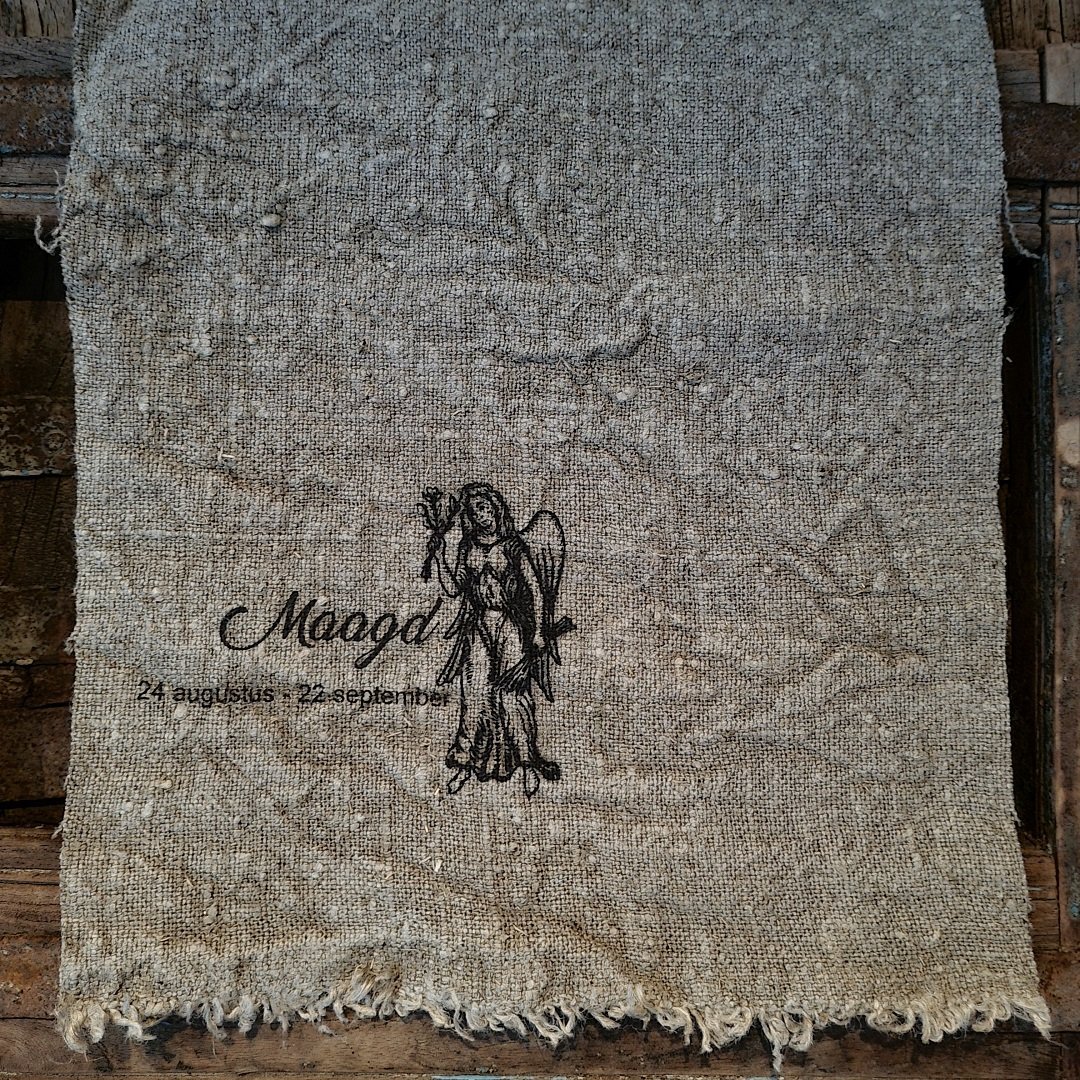 Prachtige shabby doek met de afbeelding van het sterrenbeeld Maagd.