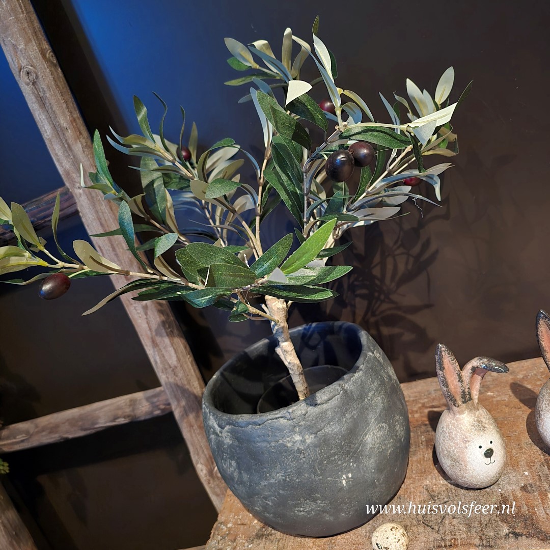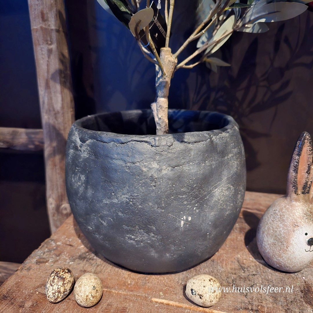 Deze robuuste stenen pot in antraciet heeft een tijdloos, bolvormig ontwerp en brengt direct rust en karakter in je interieur. De natuurlijke kleur en het ambachtelijke uiterlijk maken deze pot een stijlvolle basis voor kunstplanten, droogbloemen of decoratieve takken. Dankzij het compacte formaat is hij perfect voor een kast, tafel of vensterbank.