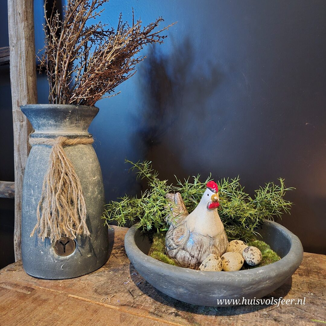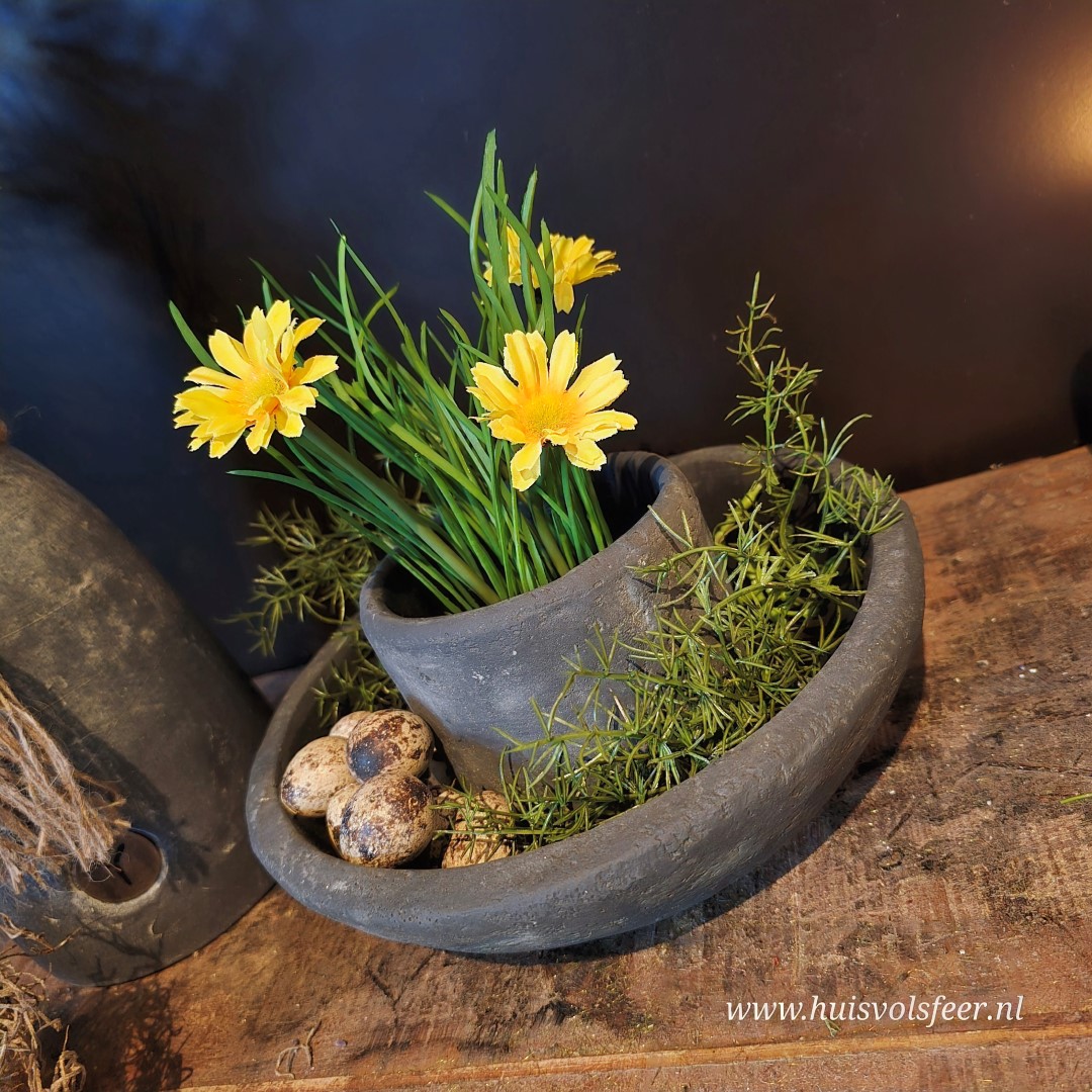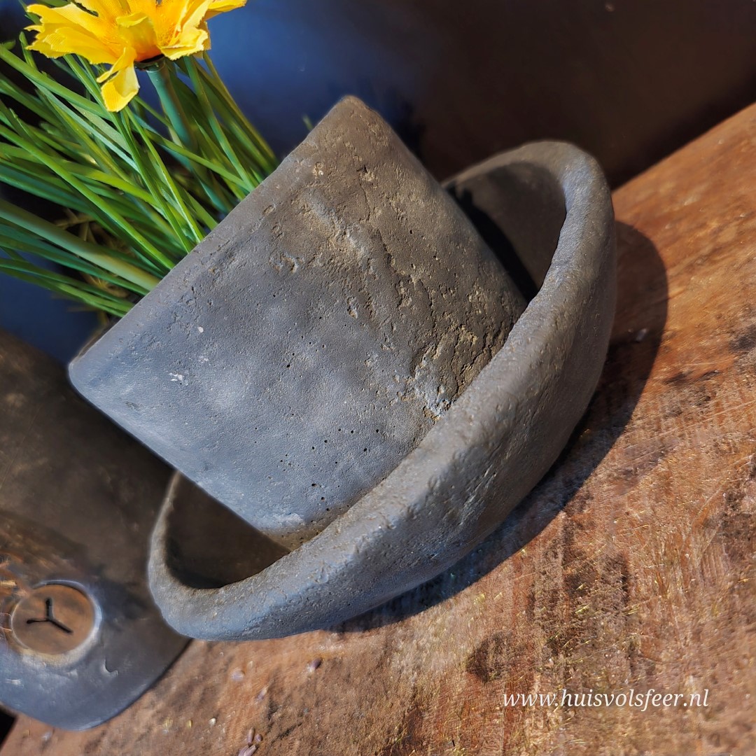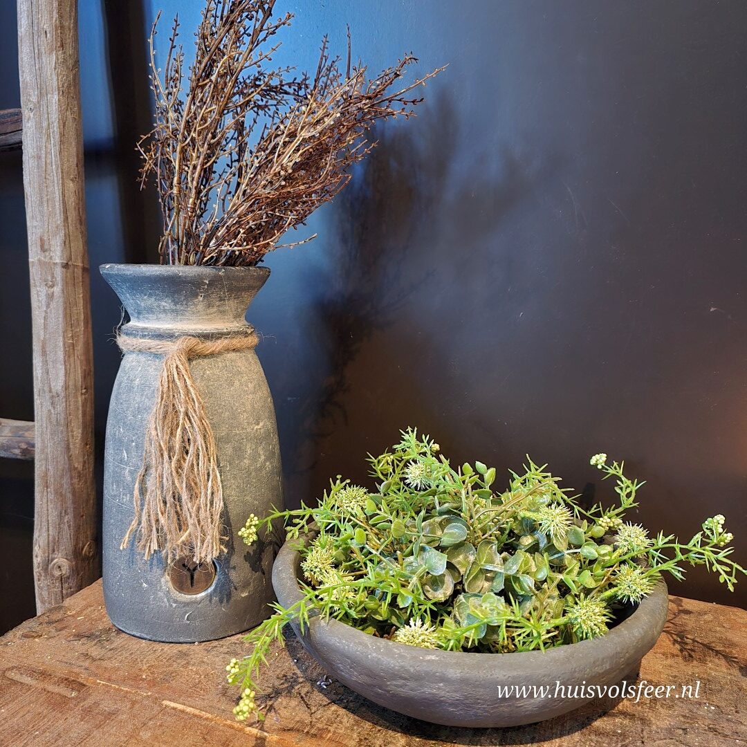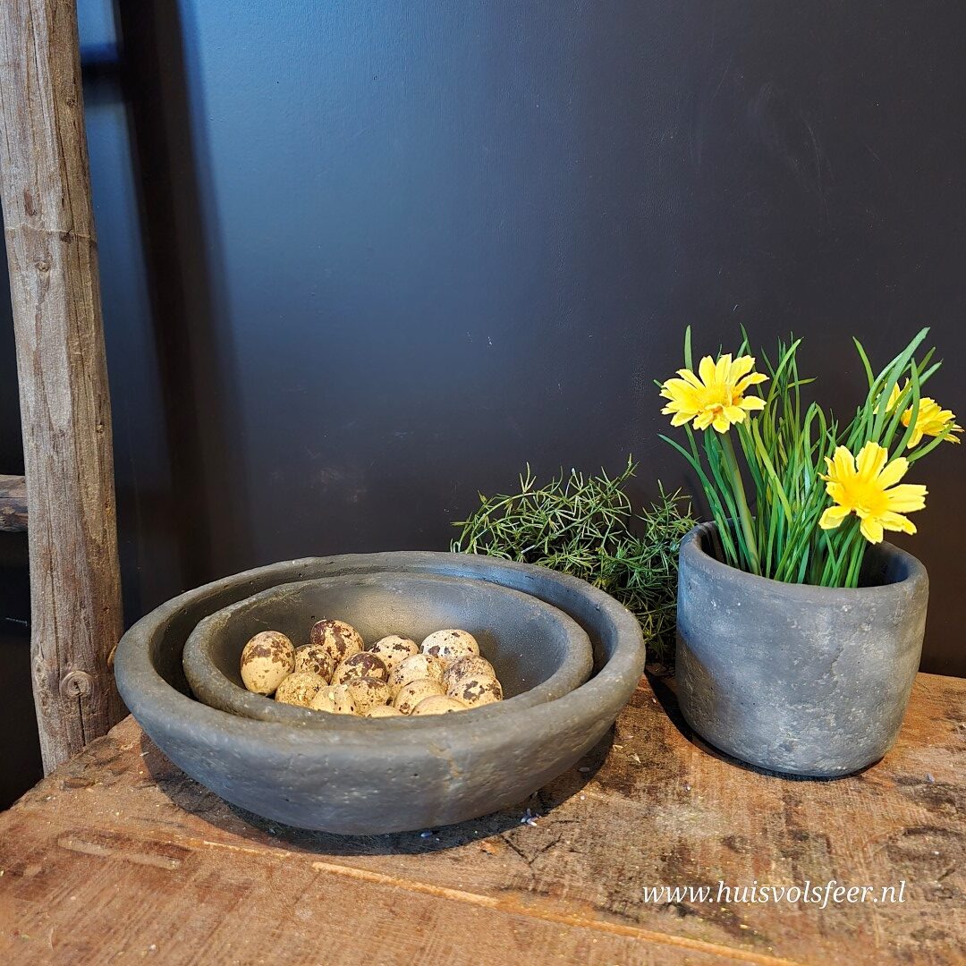 Deze stenen schaal in antraciet is een echte blikvanger door zijn robuuste vorm en grotere formaat. Ideaal voor het maken van een sfeervol decoratiestuk met bijvoorbeeld groen, seizoensdecoratie of een landelijke styling.