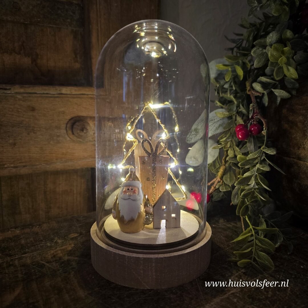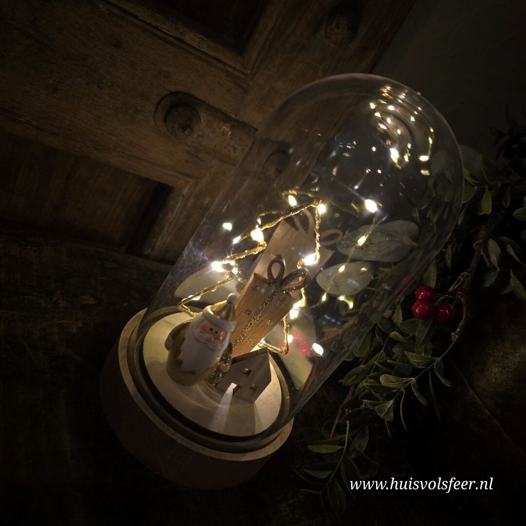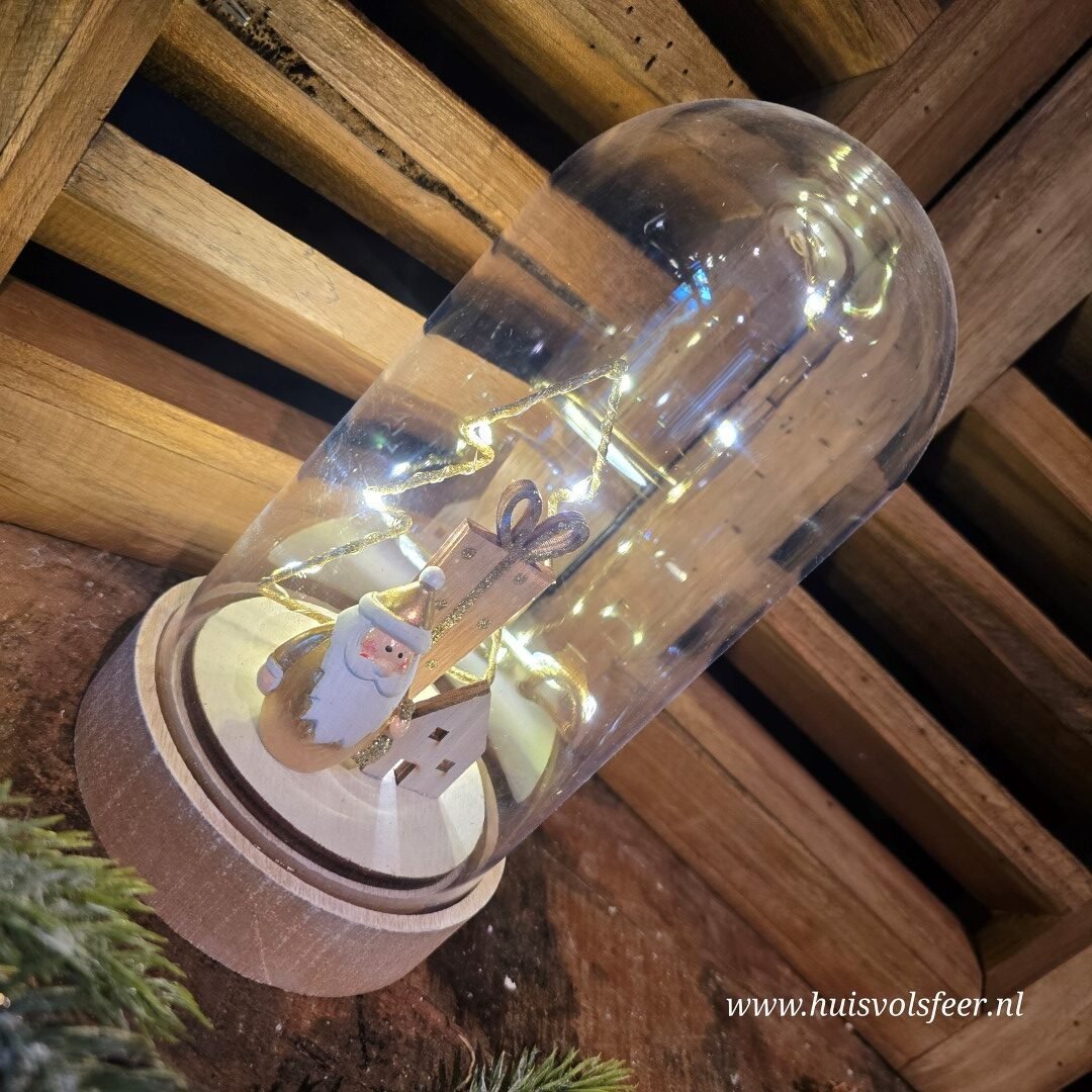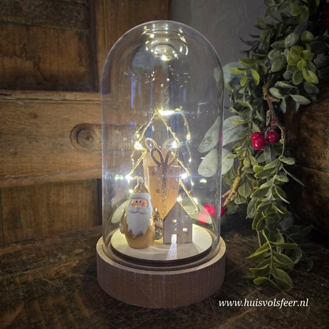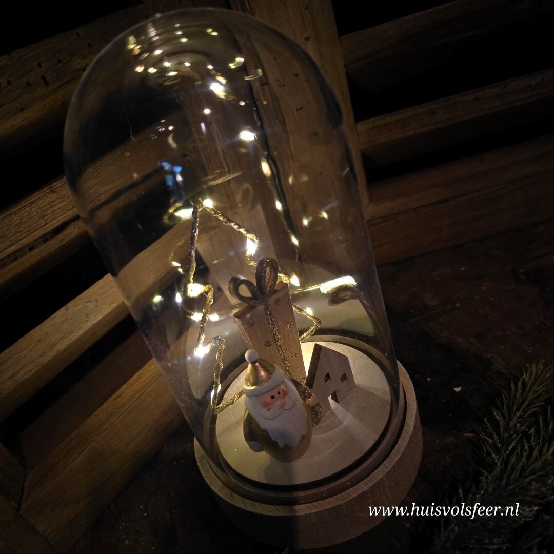 Mooi stolp met binnenin een Kerstman, kerstboom, huisje en cadeau.