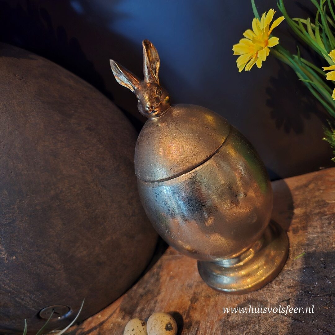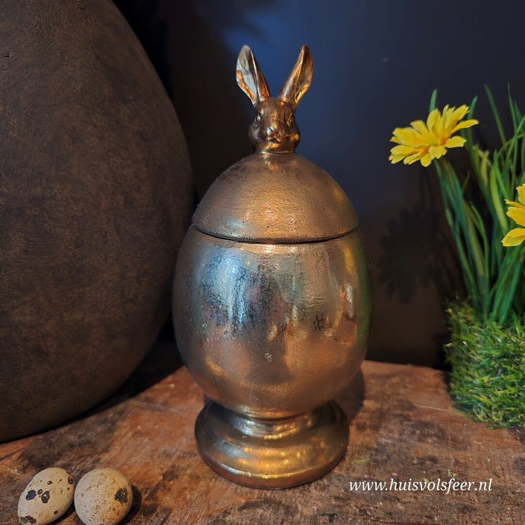 Prachtige aardewerk pot met deksel in haas vorm.