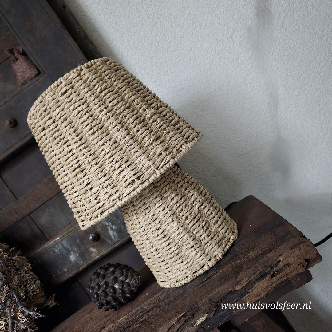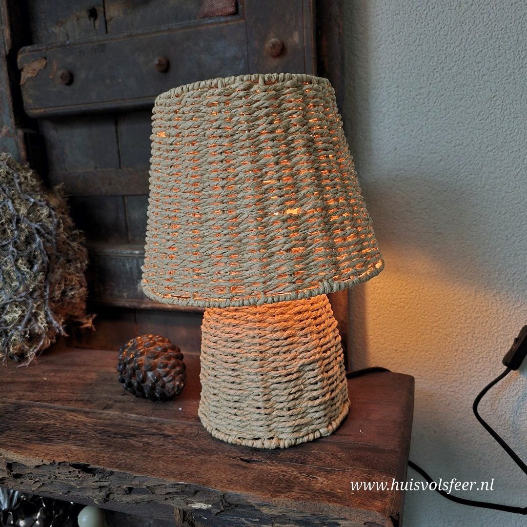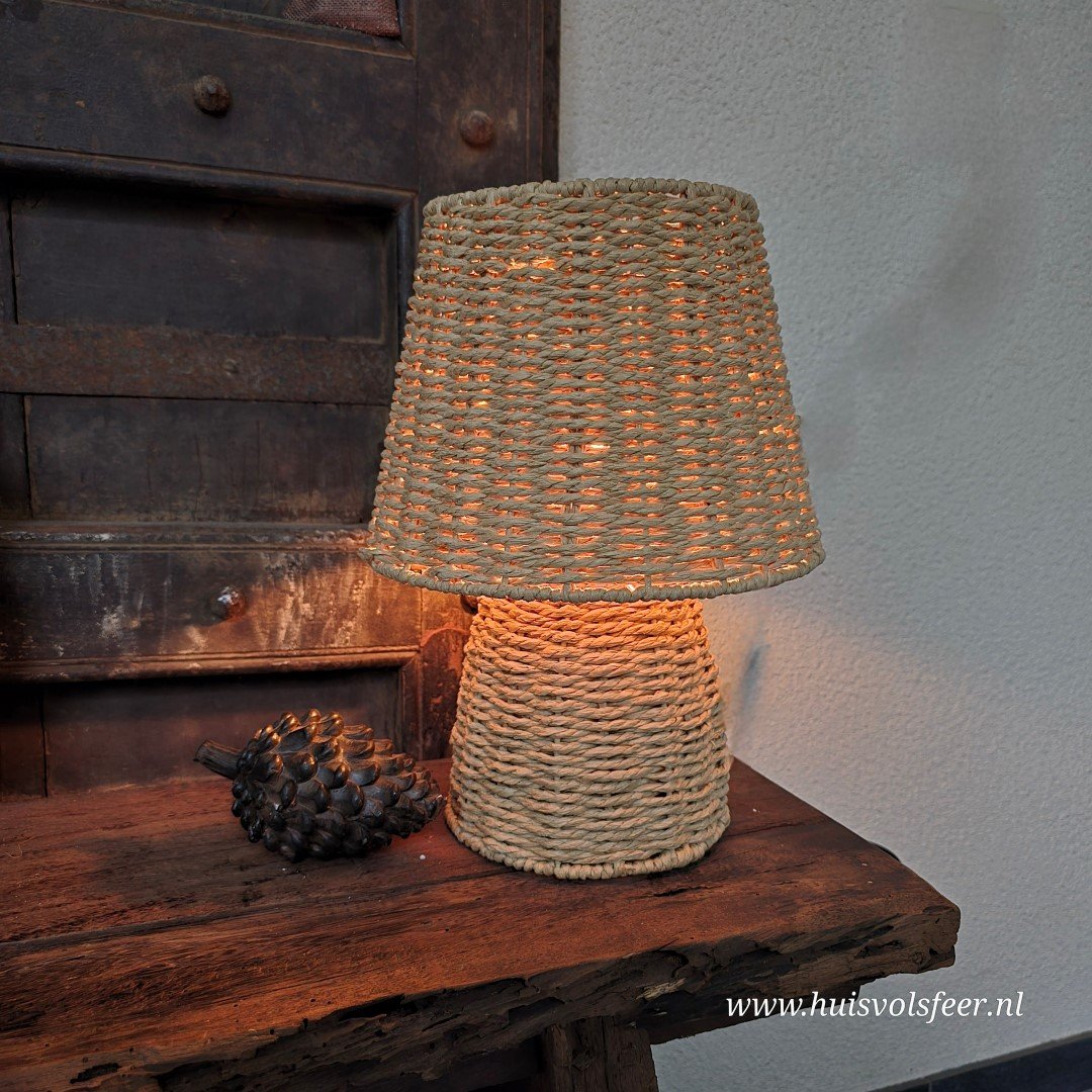 Rotan tafellamp in naturel kleur .