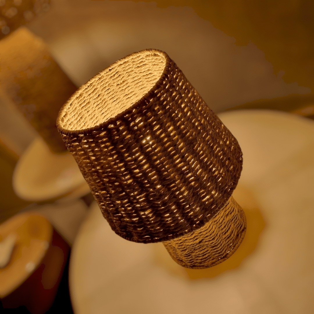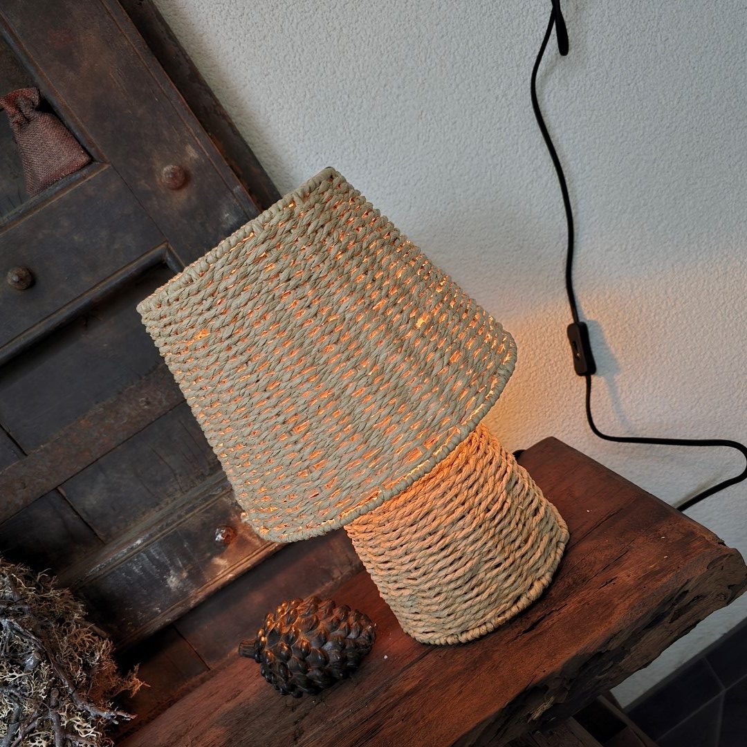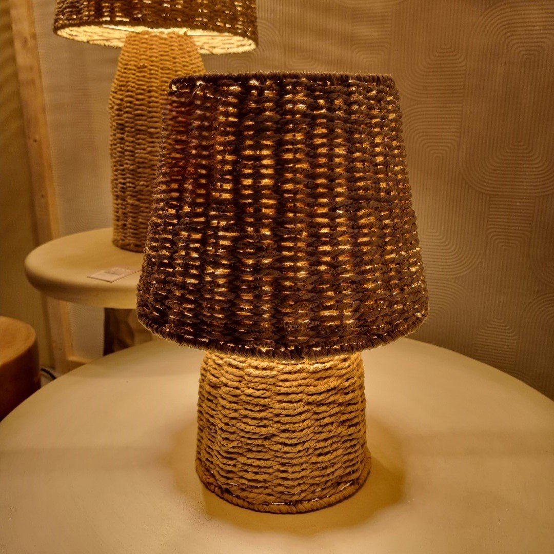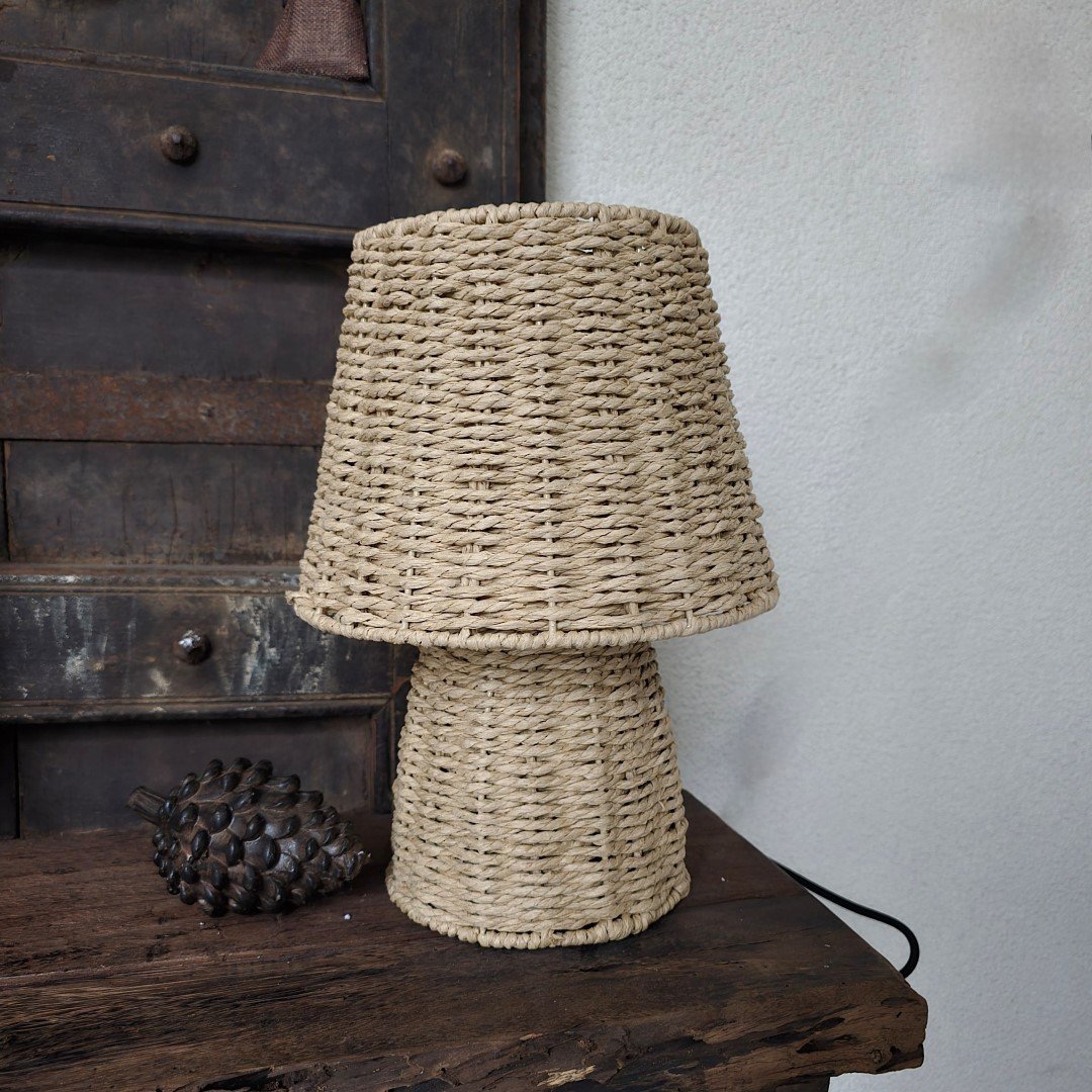 Rotan tafellamp in naturel kleur .
